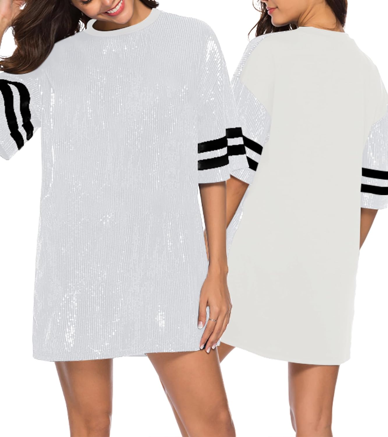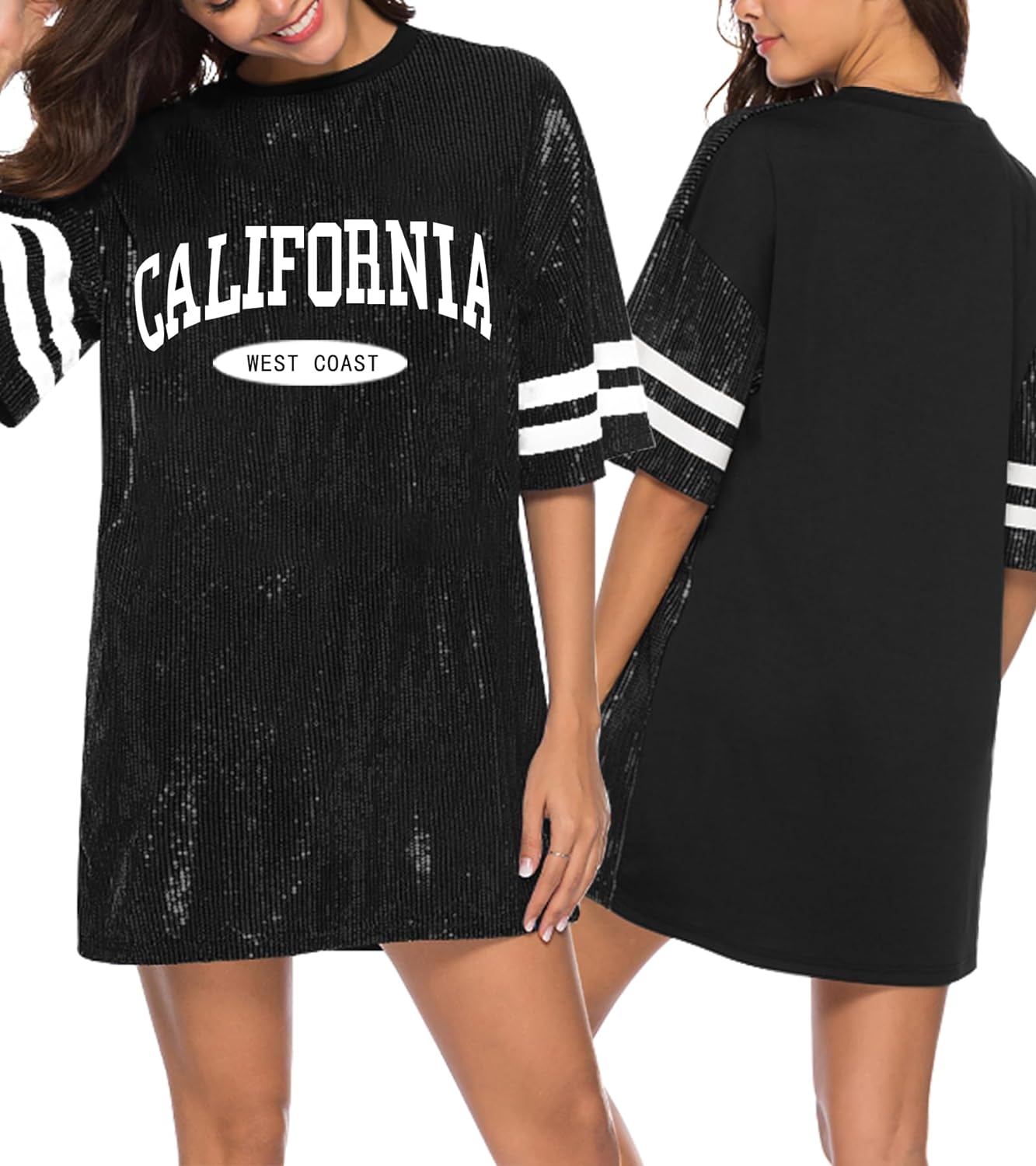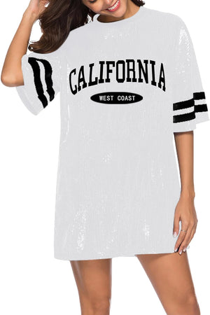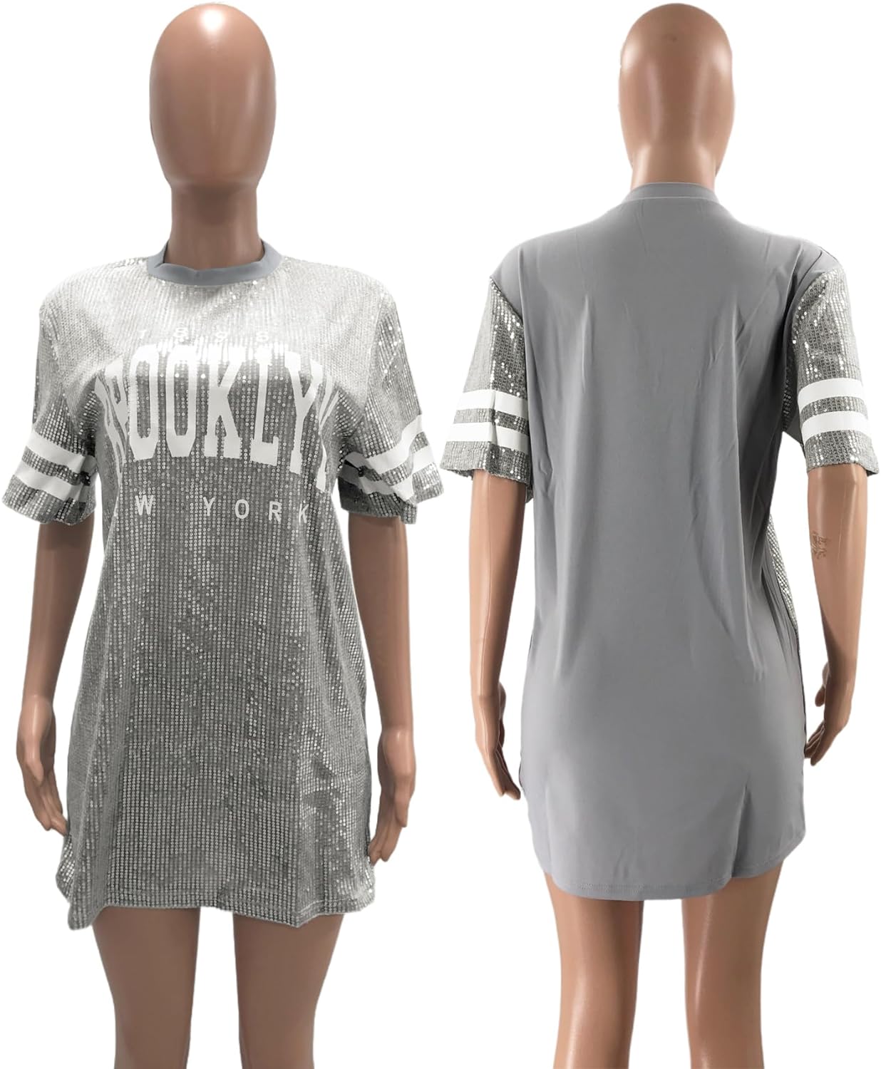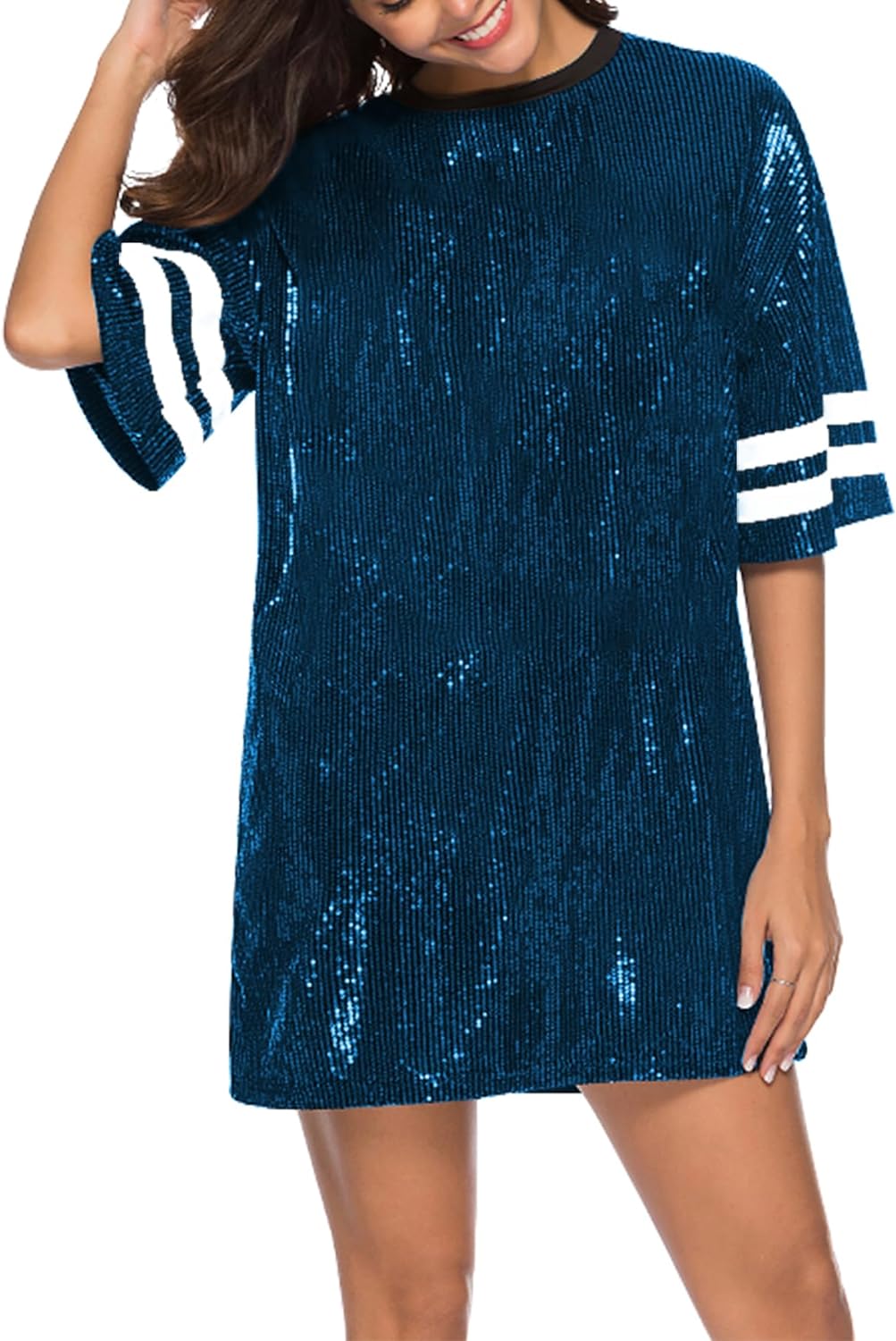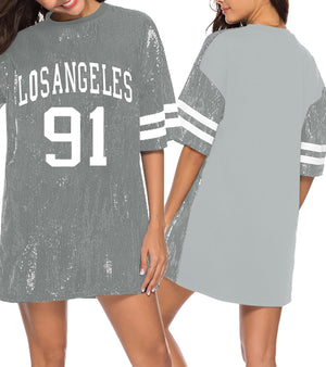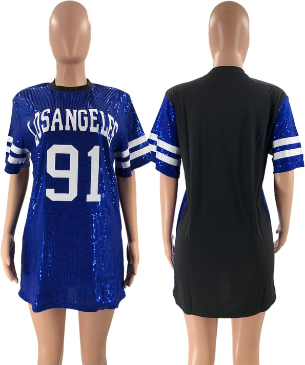 Sparkle sequin dress for women,fashionable tunic t shirt tops,loose style,clubwear short sleeve t shirt dress