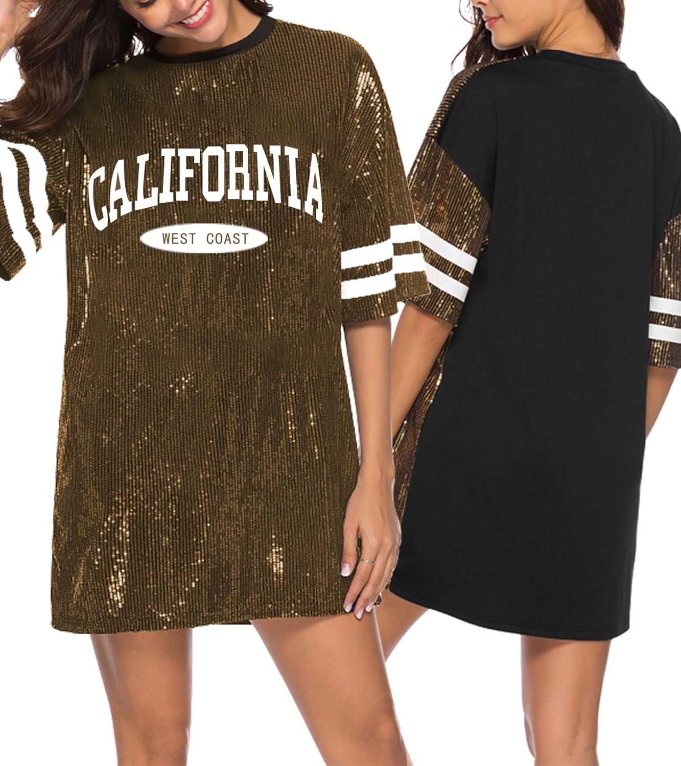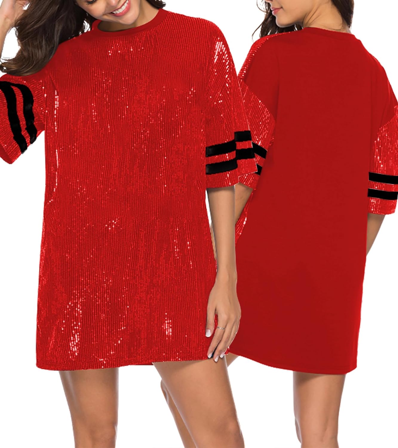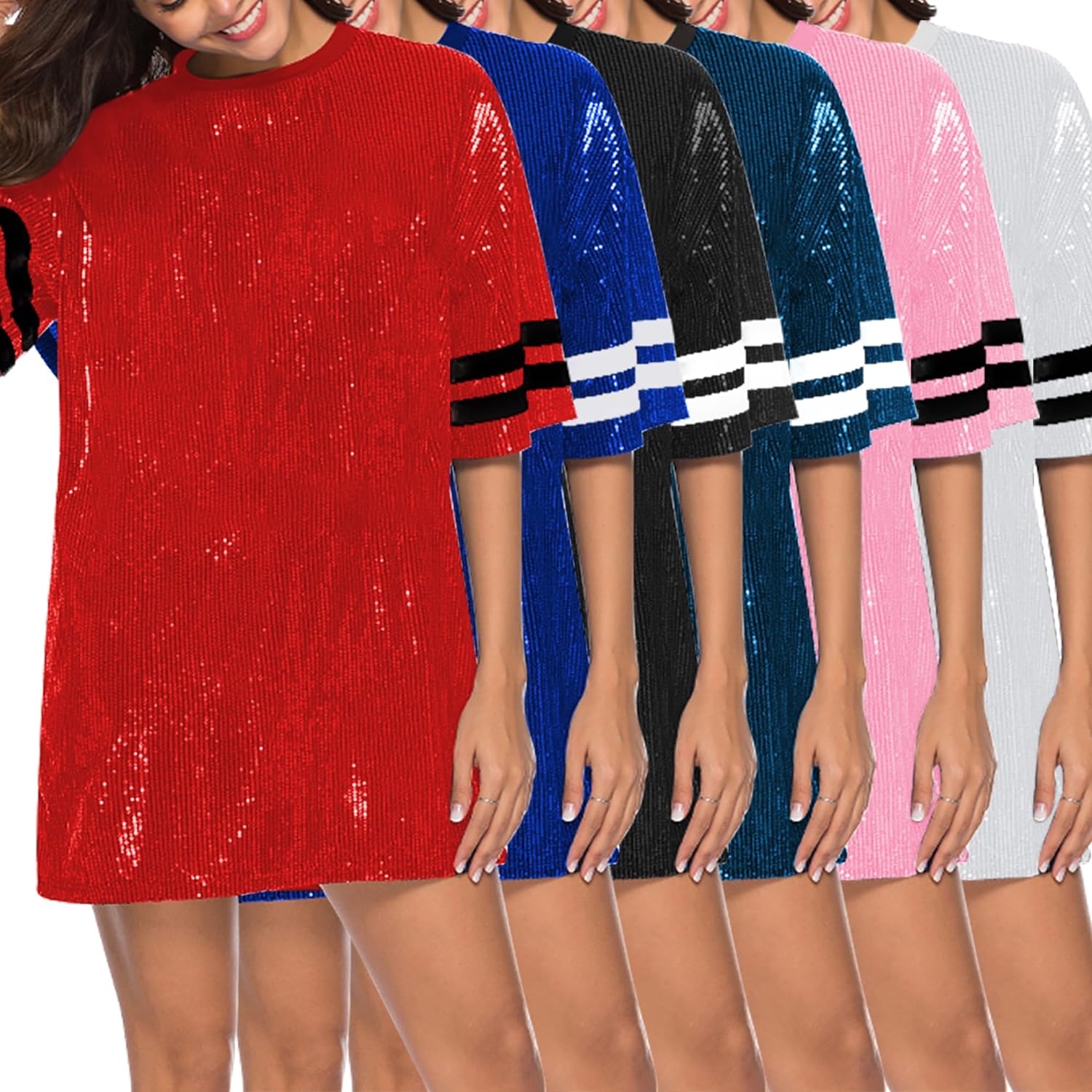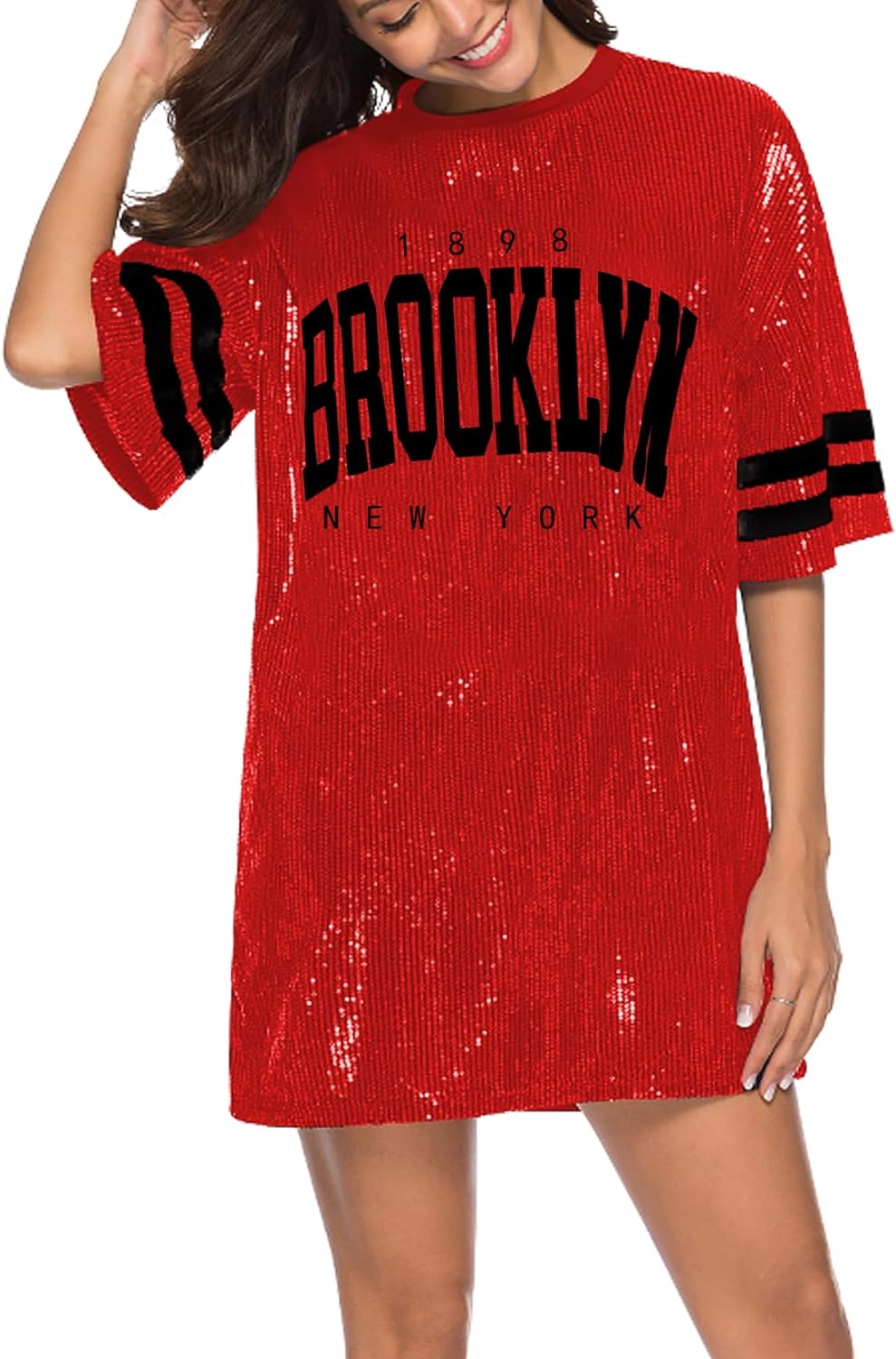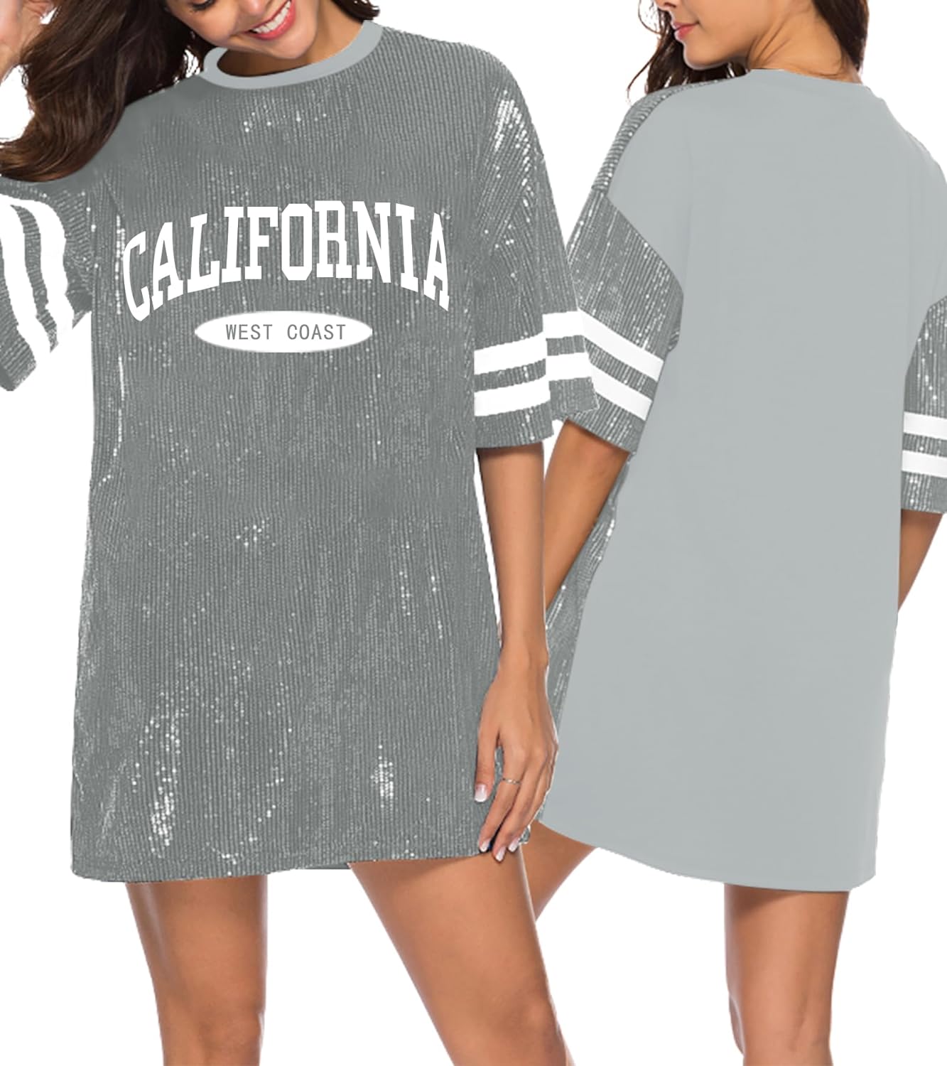 Sparkle sequin dress for women,fashionable tunic t shirt tops,loose style,clubwear short sleeve t shirt dress