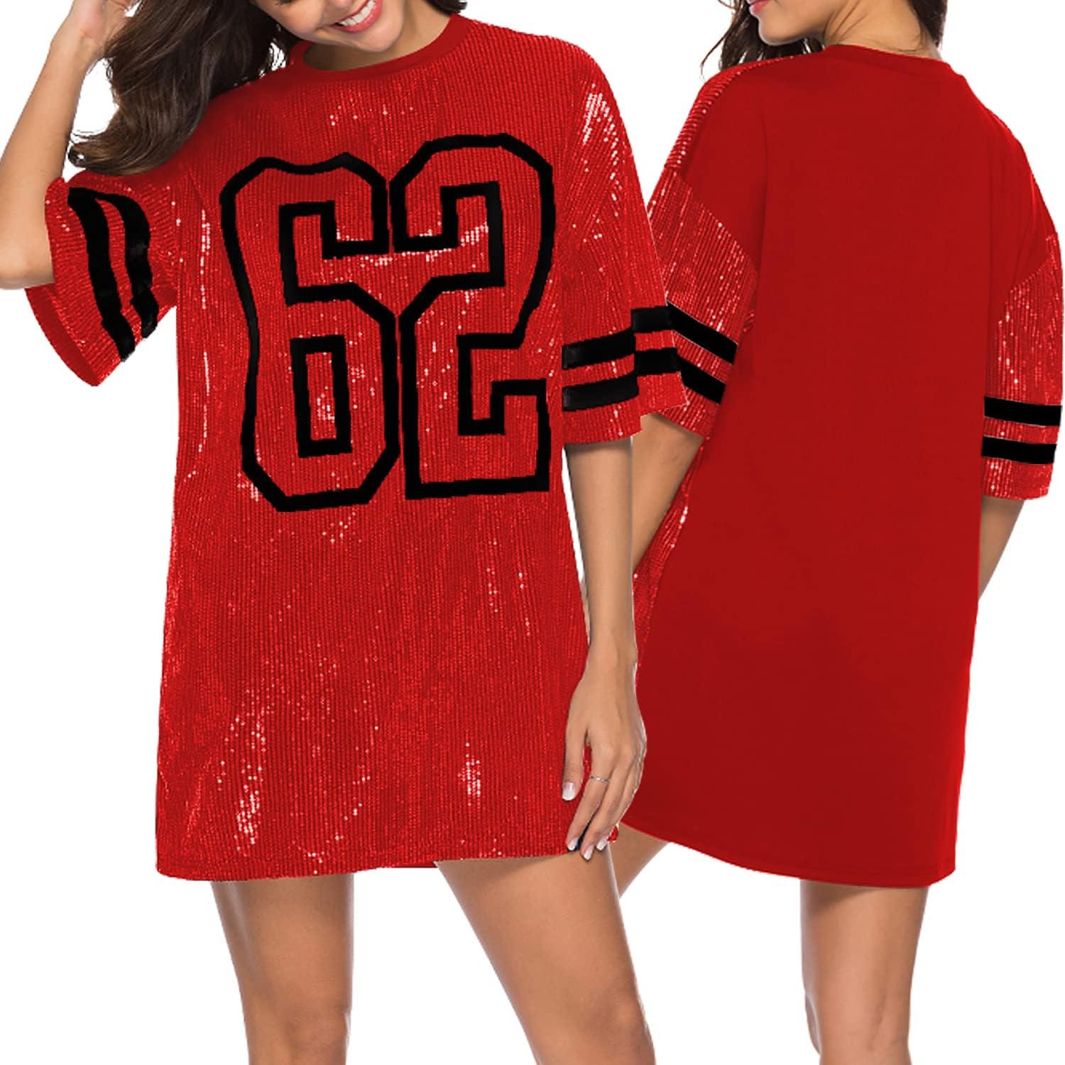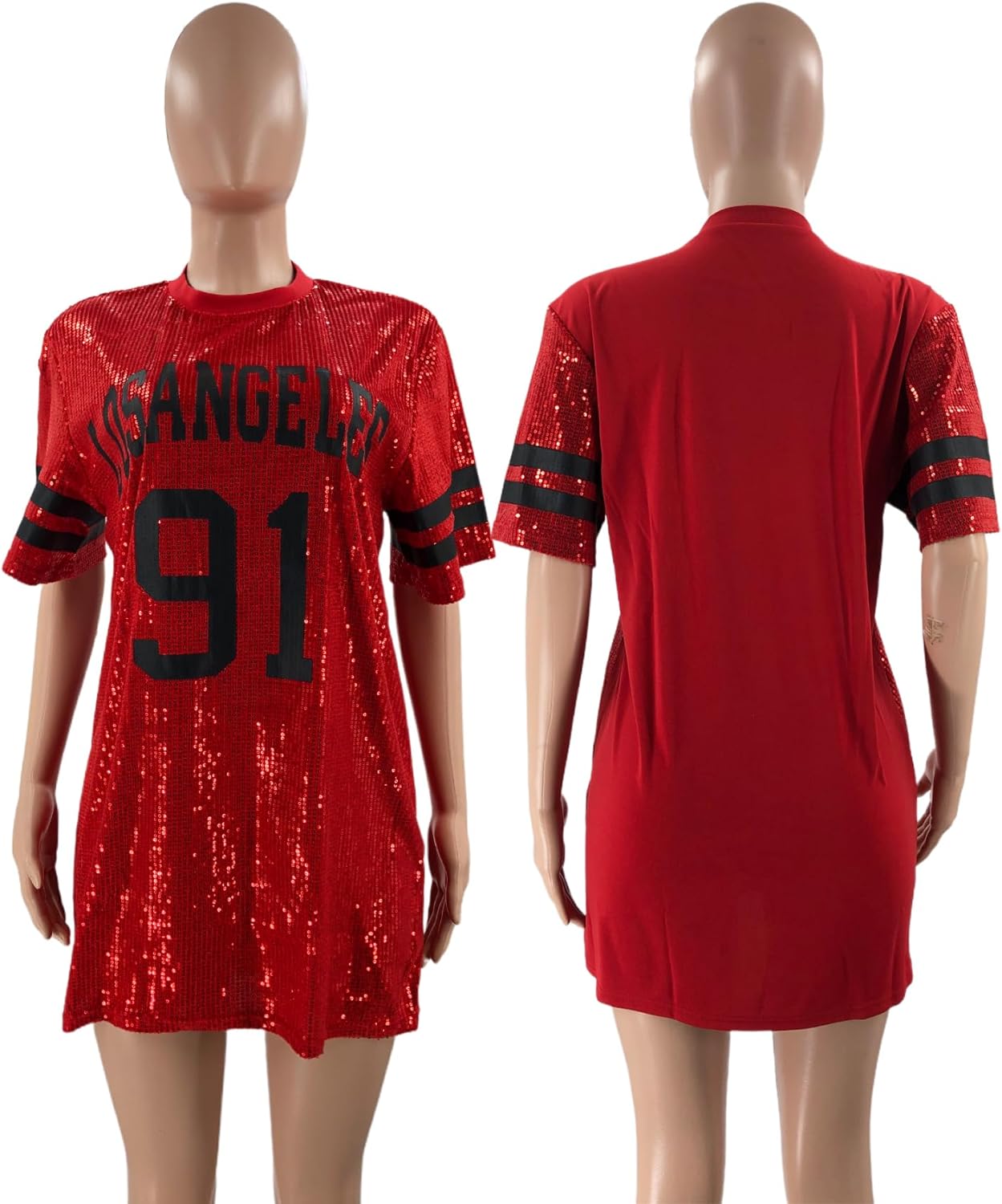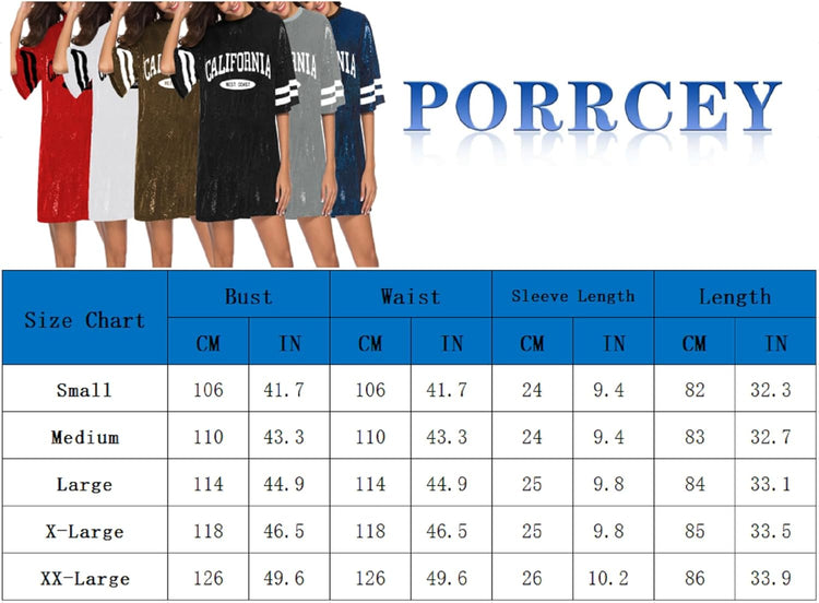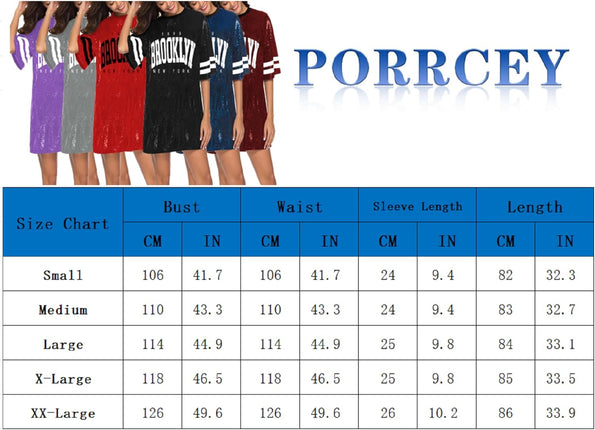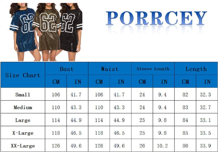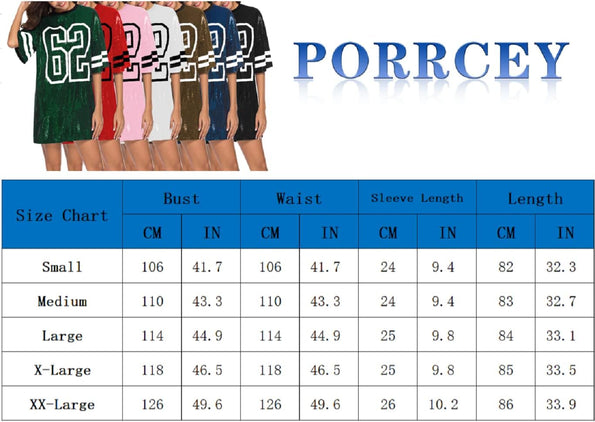 Women’s short sleeve sequin loose funny dress t shirts size chart