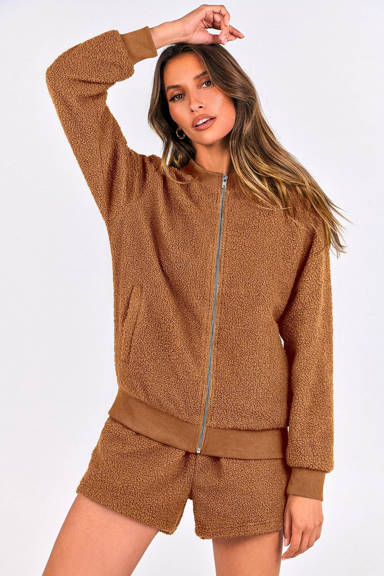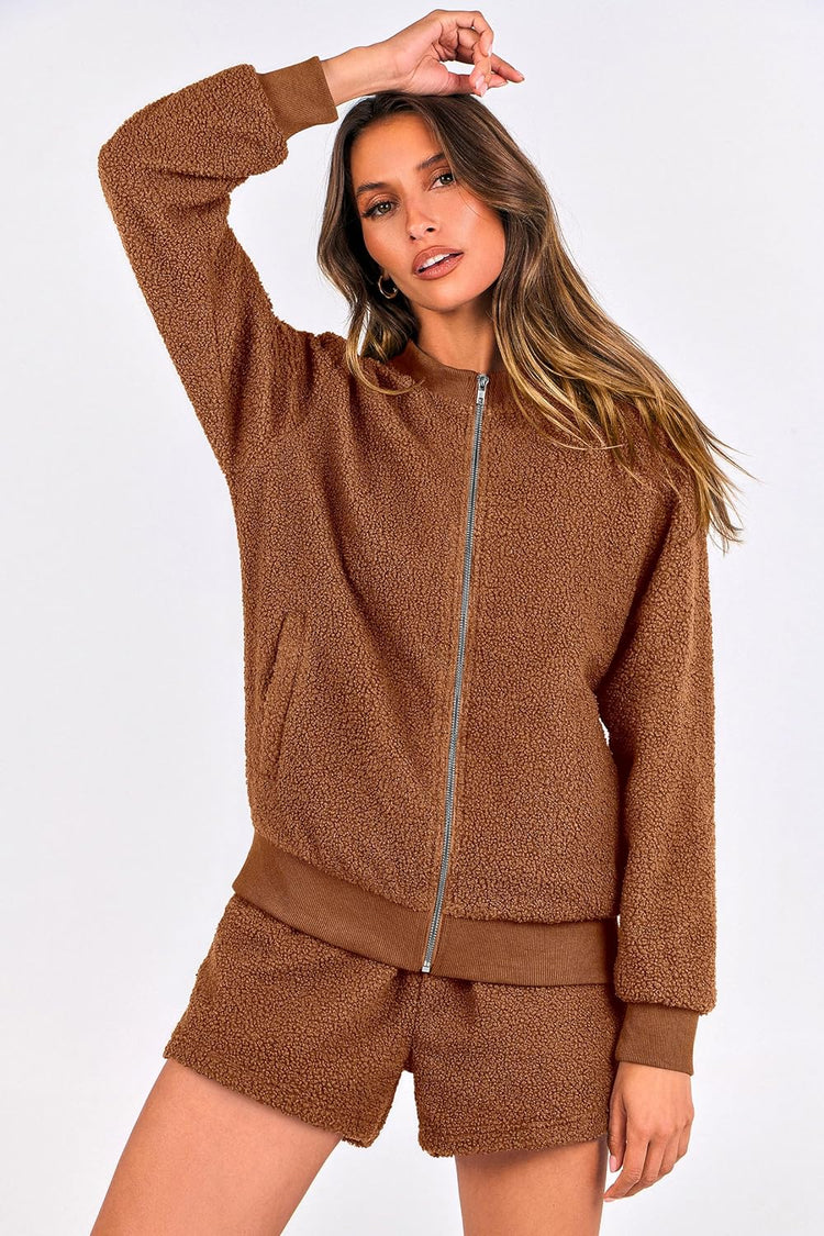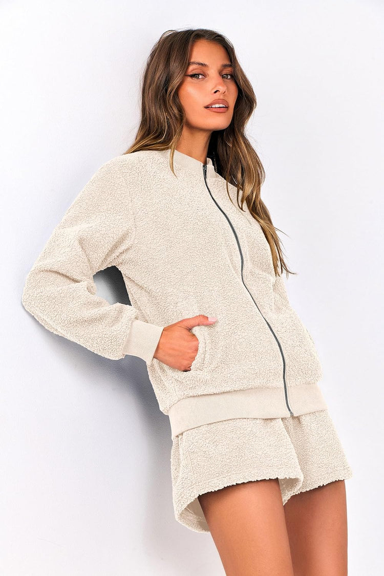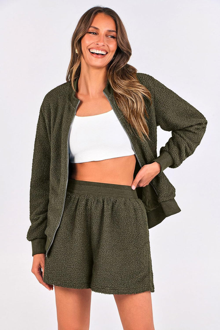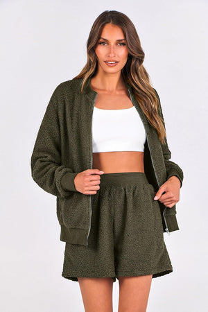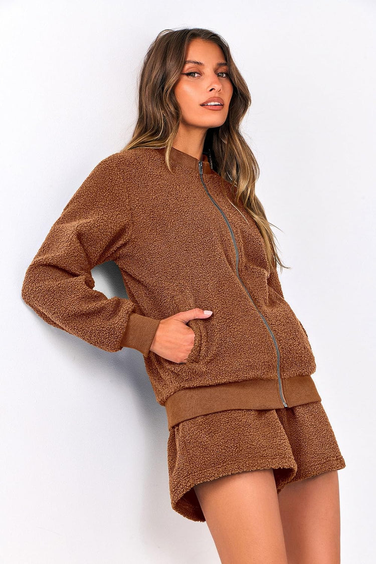 Look Fabulous And Appropriate For Any Occasion With This Teddy Fleece Matching Shorts Set