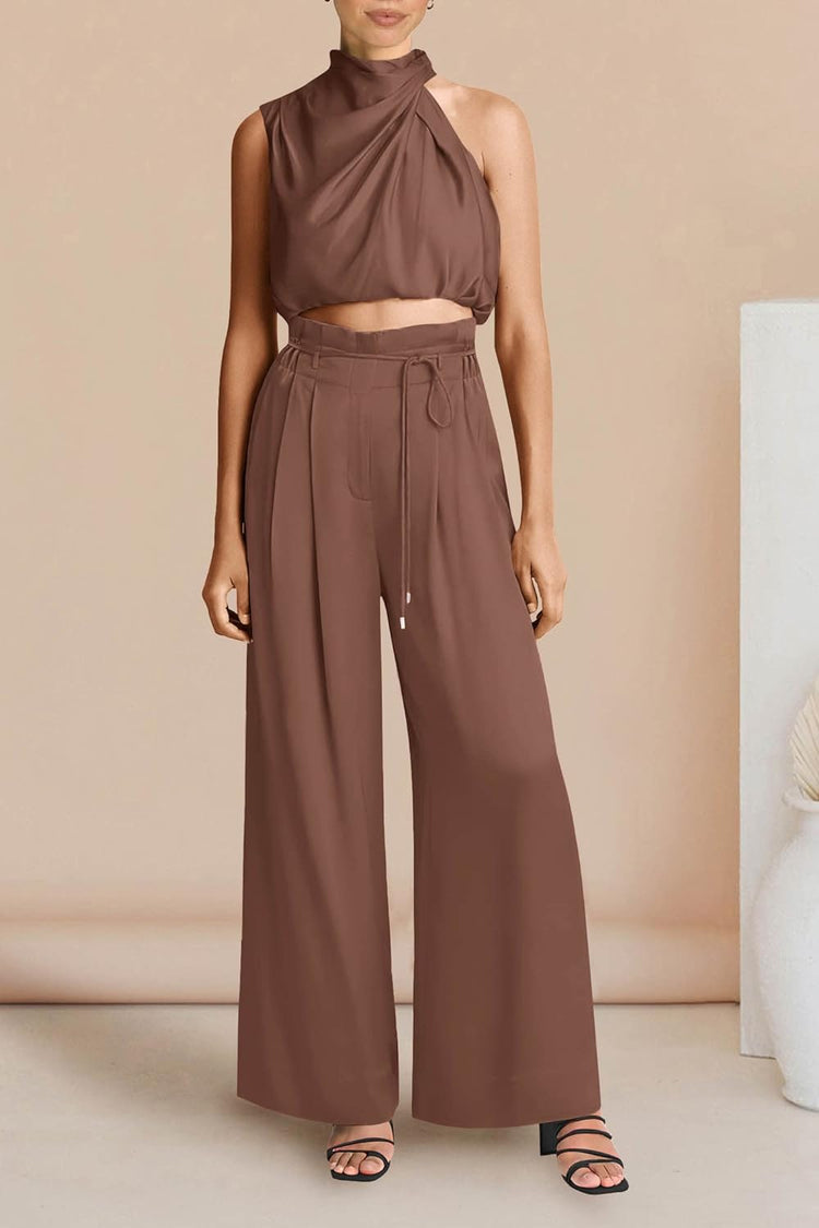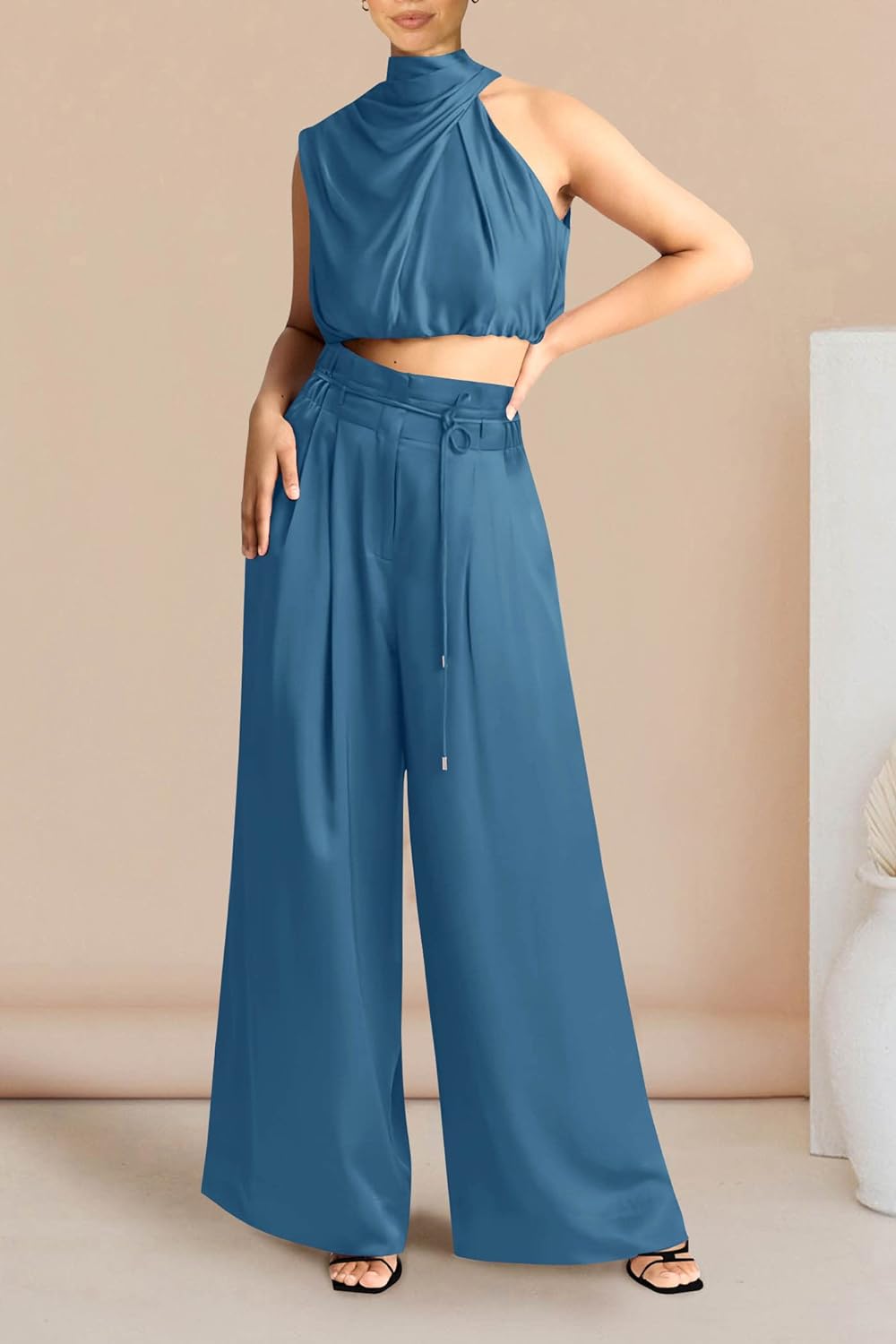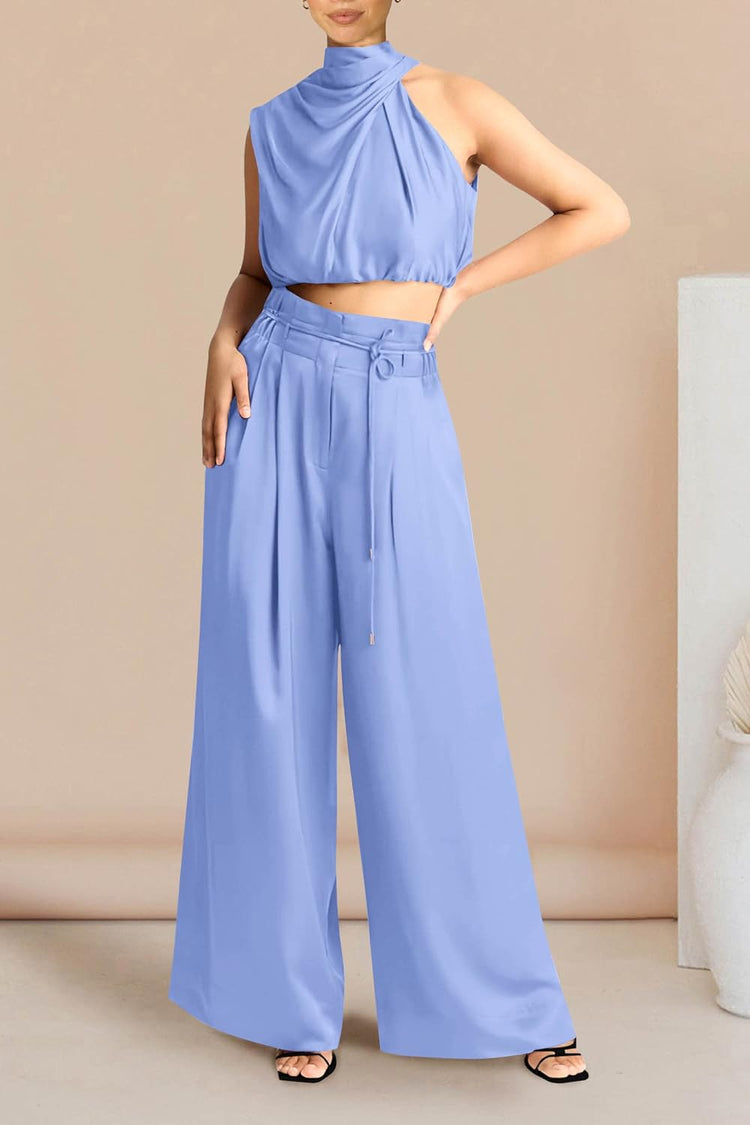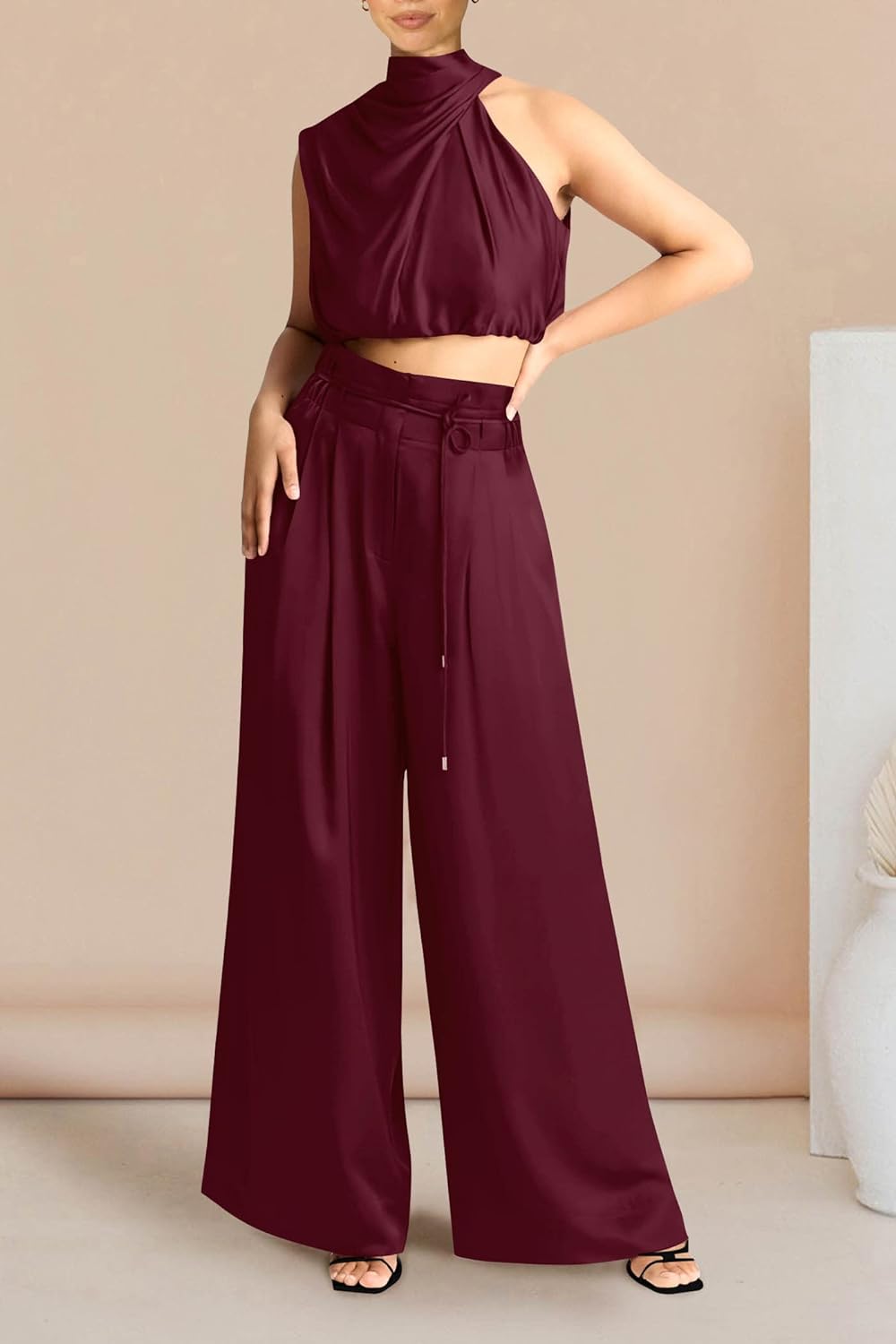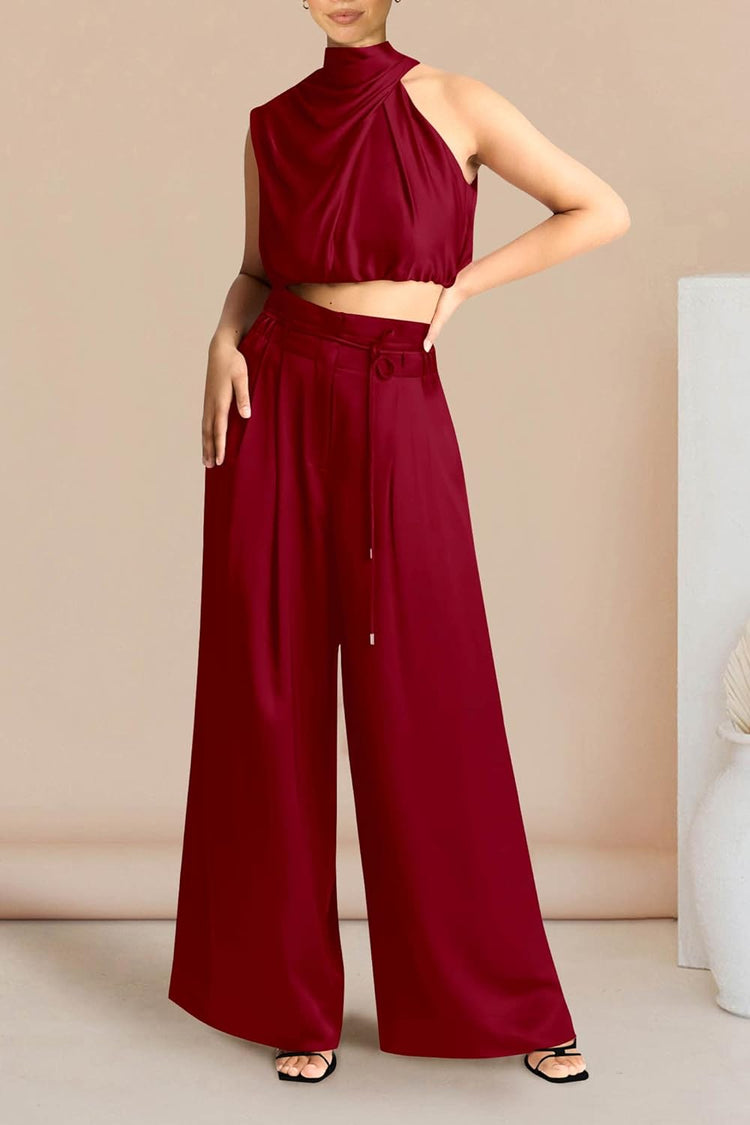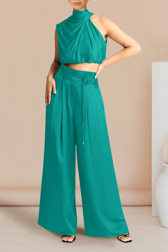 The Mock Neck Crop Top And Wide Leg Pants Set Adds A Sense Of Elegance And Chic