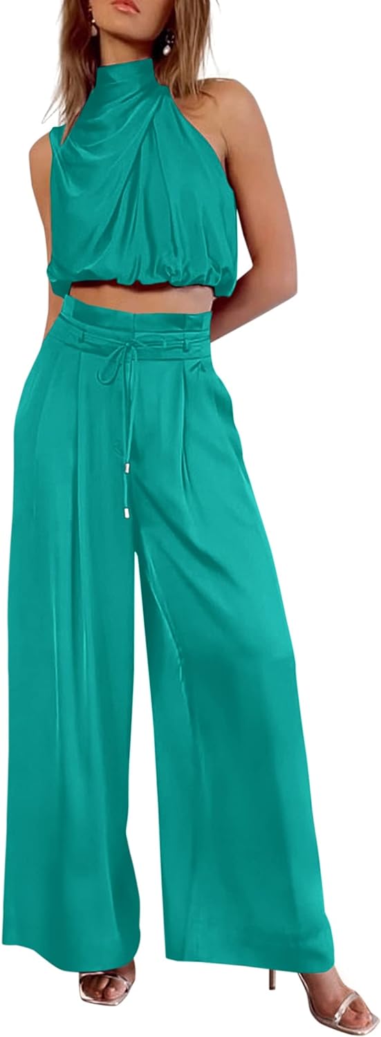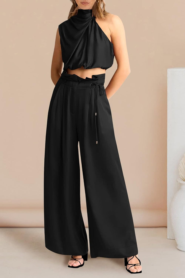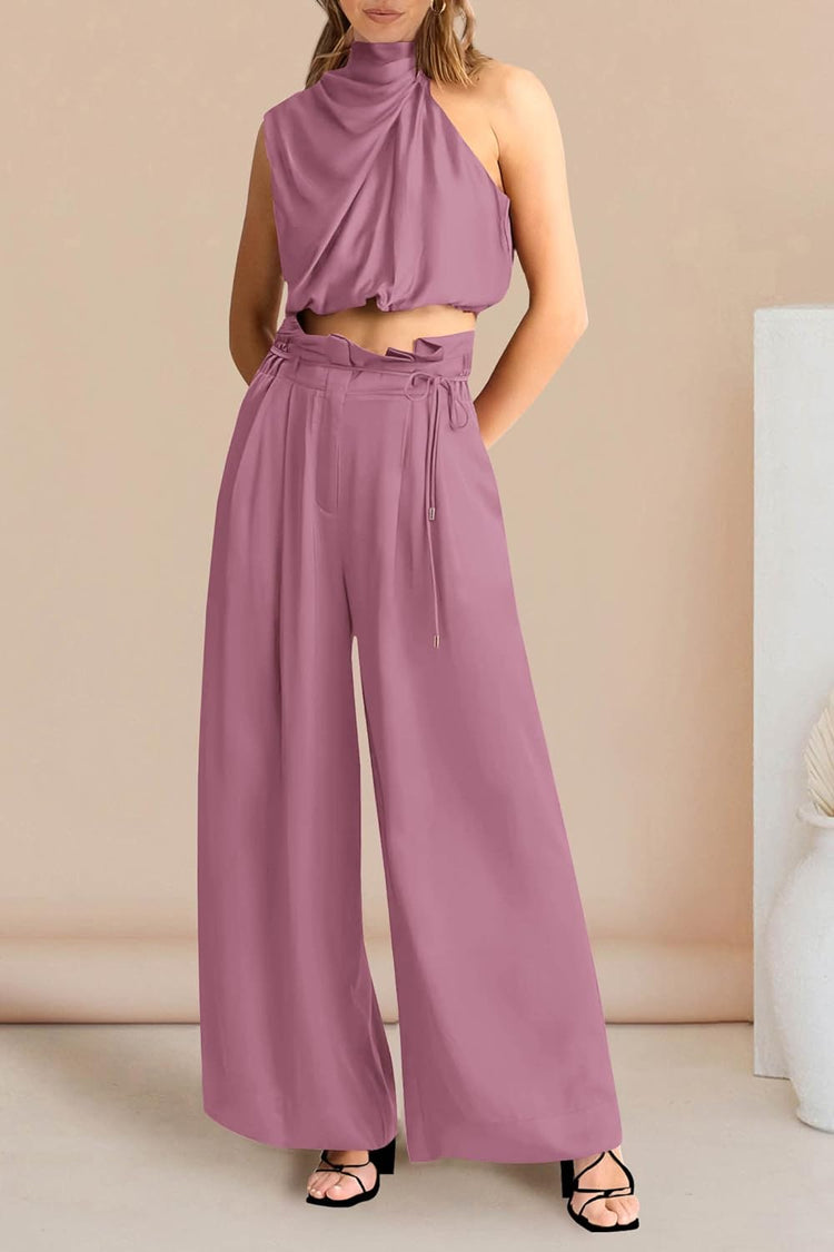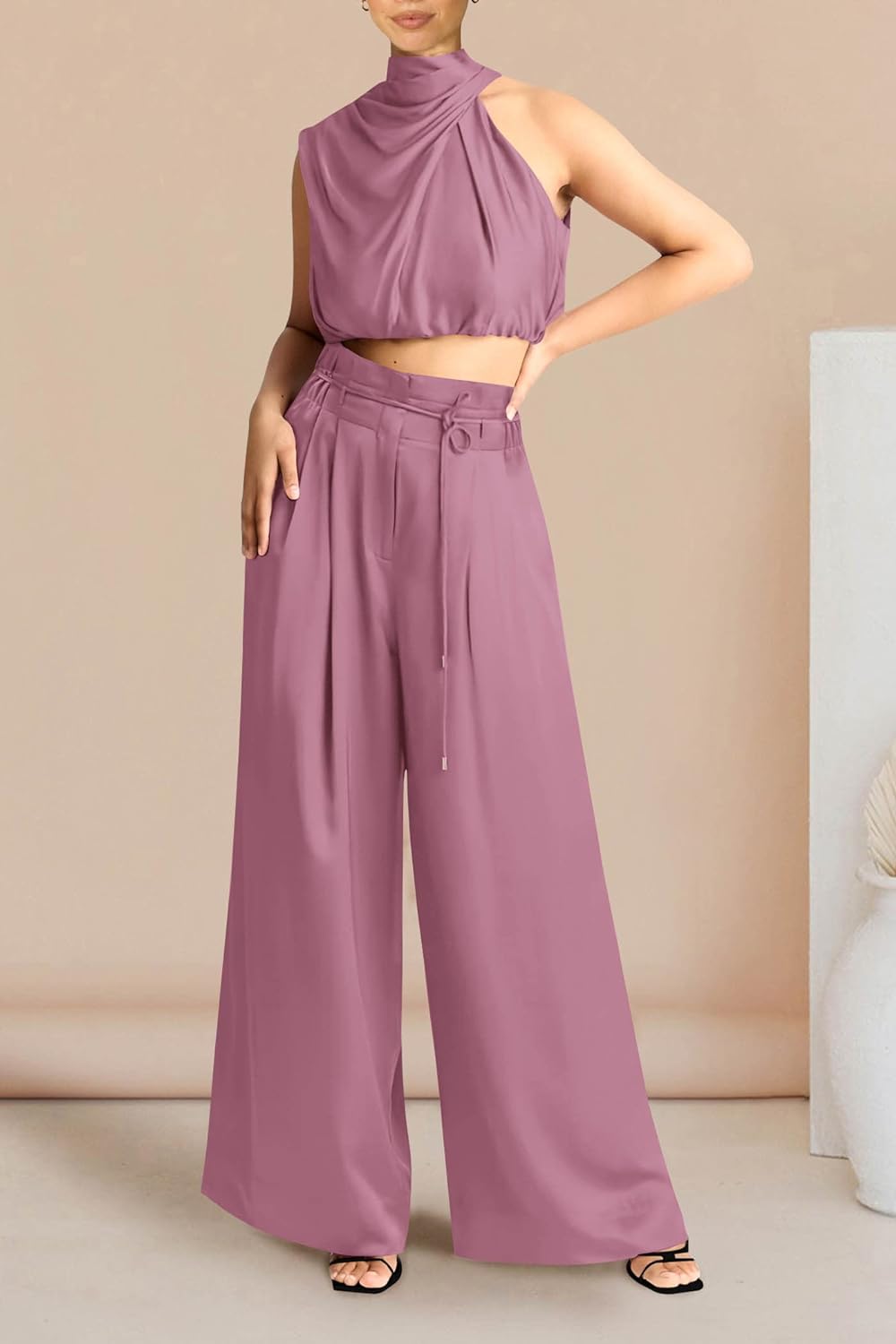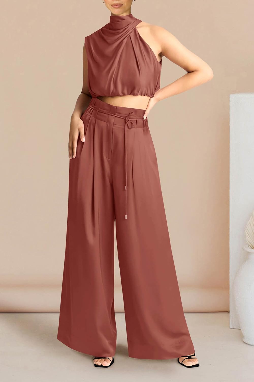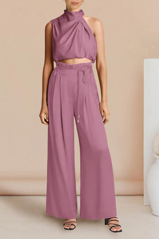 The Mock Neck Crop Top And Wide Leg Pants Set Adds A Sense Of Elegance And Chic