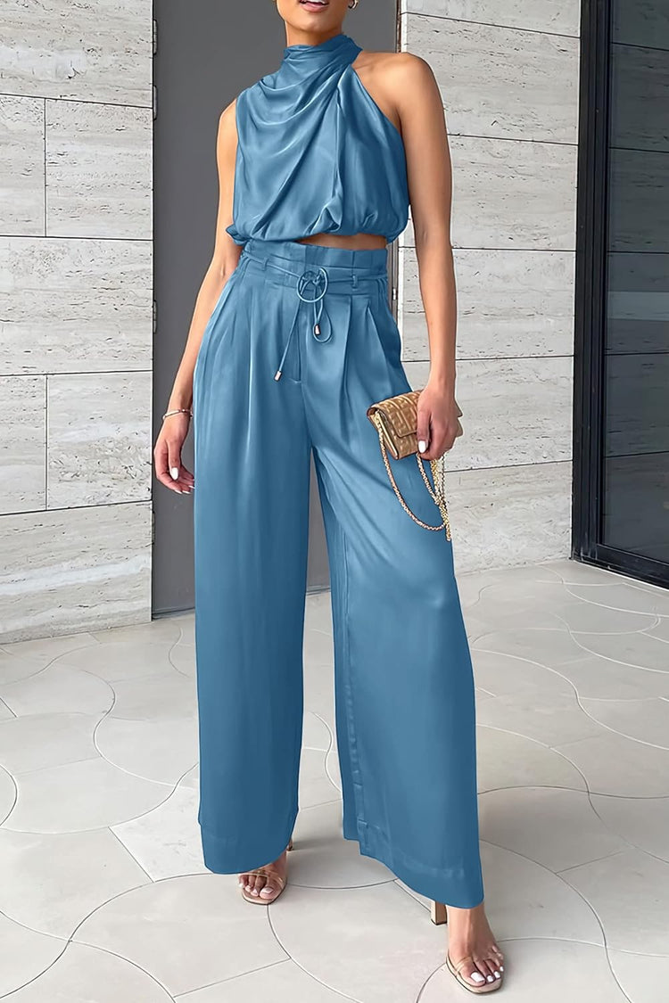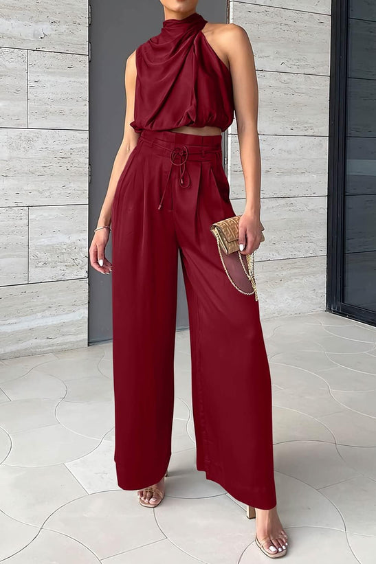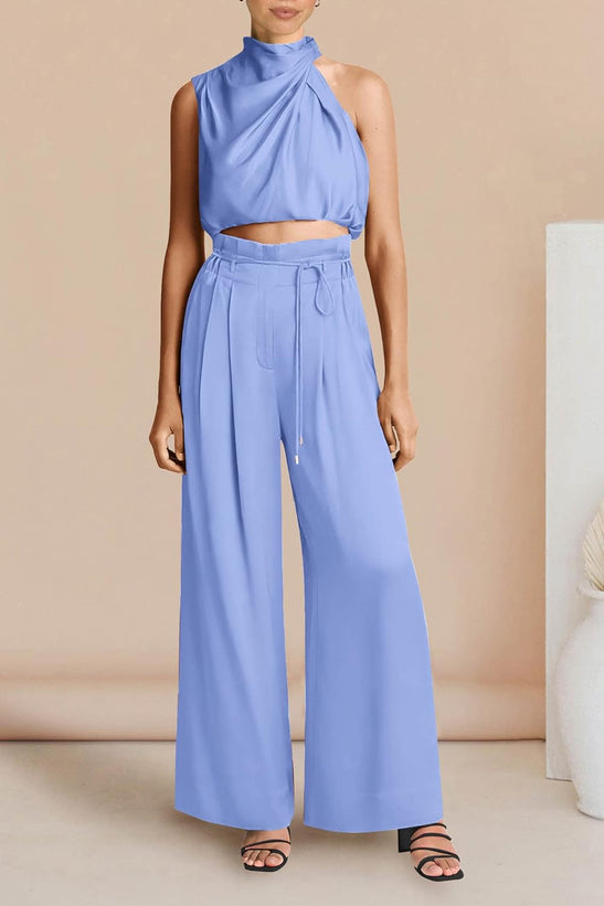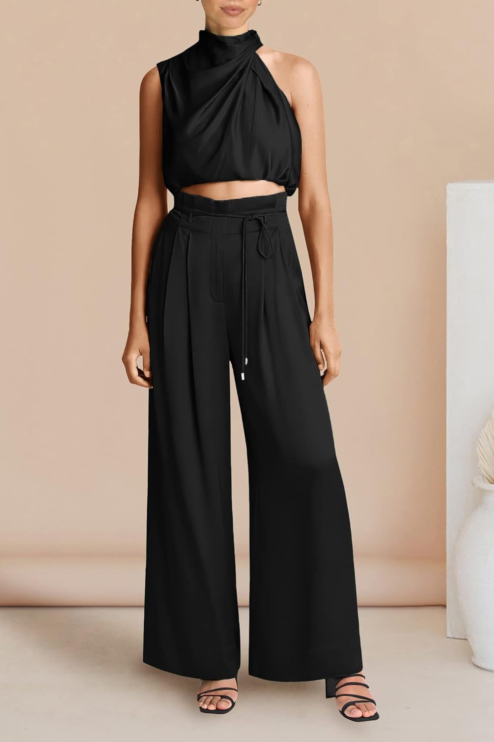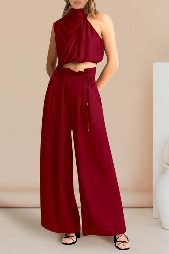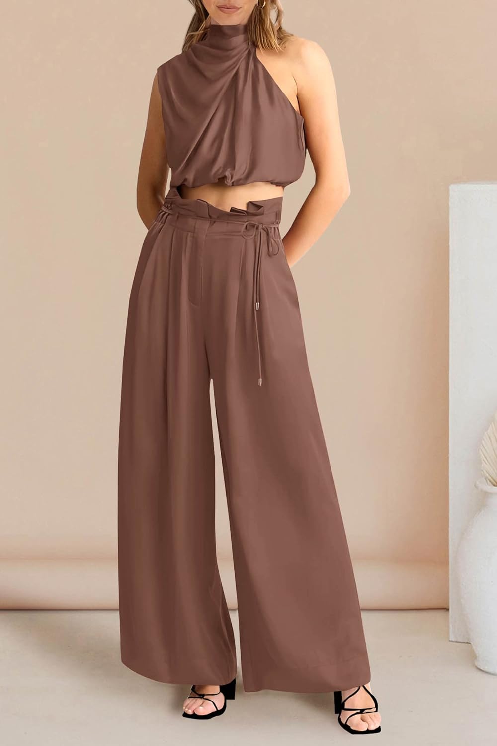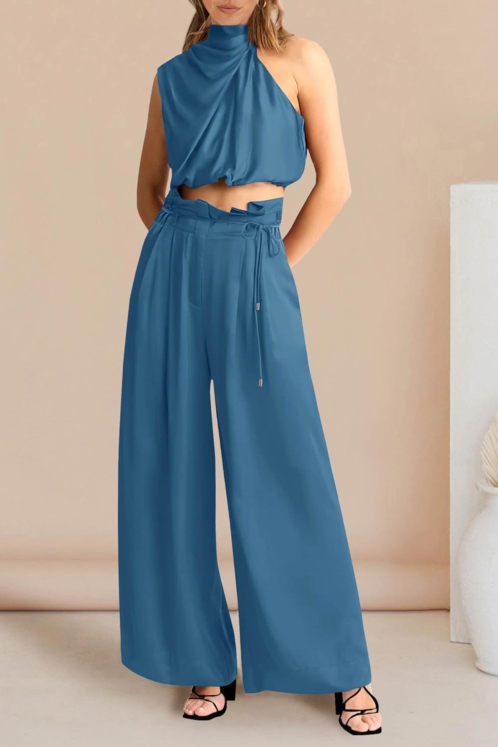 The Mock Neck Crop Top And Wide Leg Pants Set Adds A Sense Of Elegance And Chic