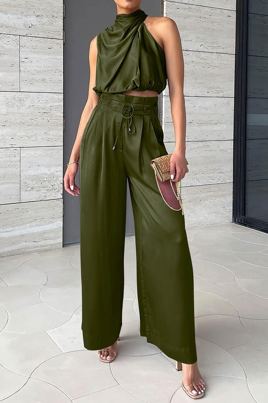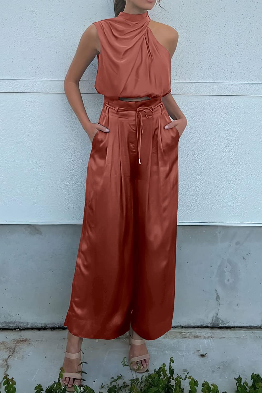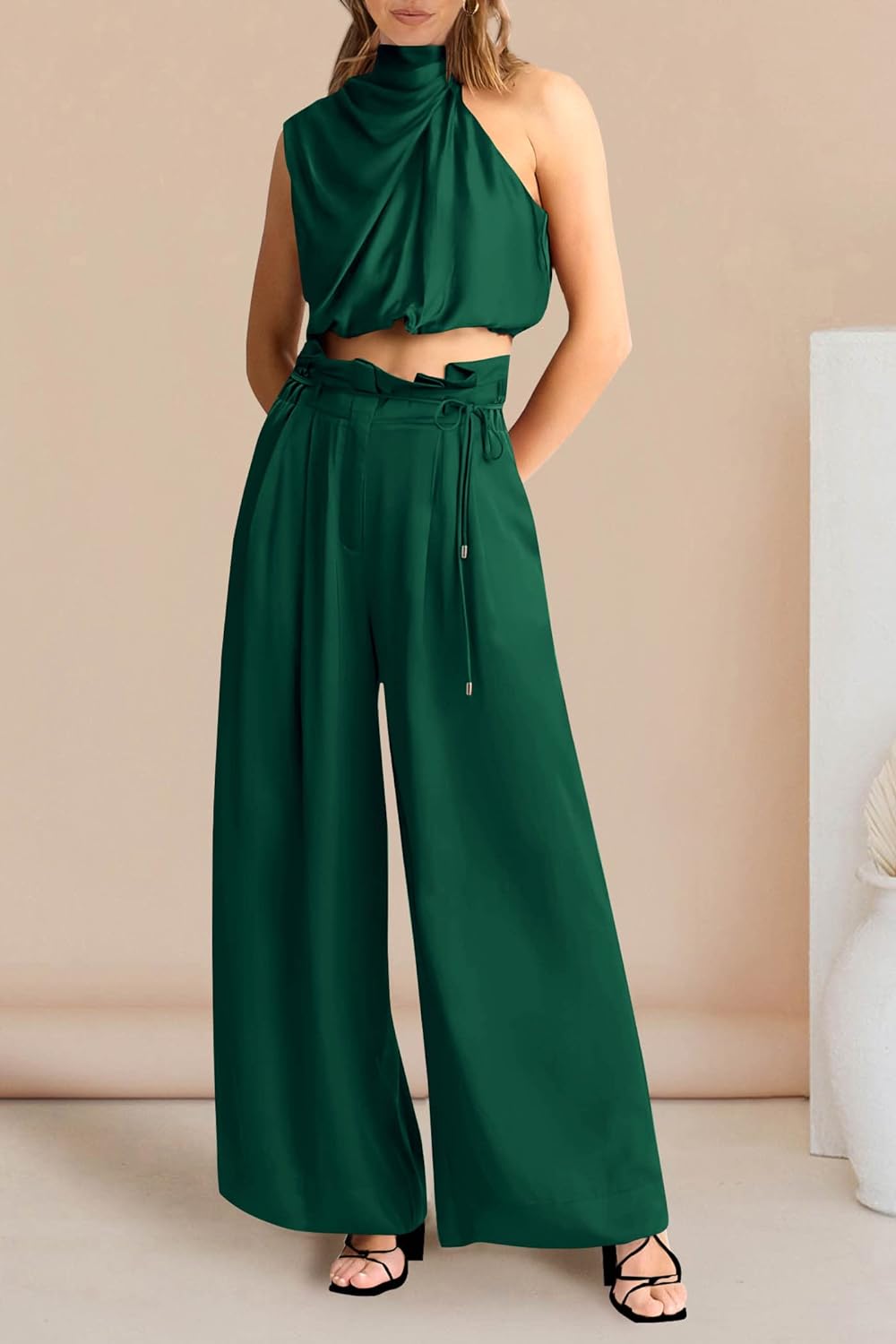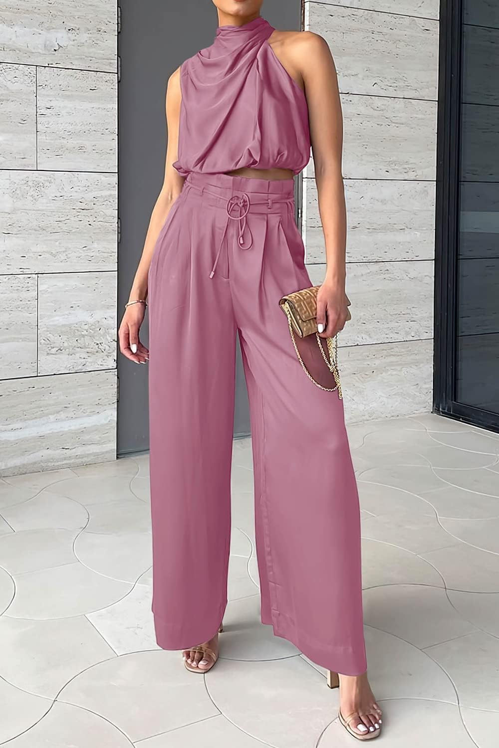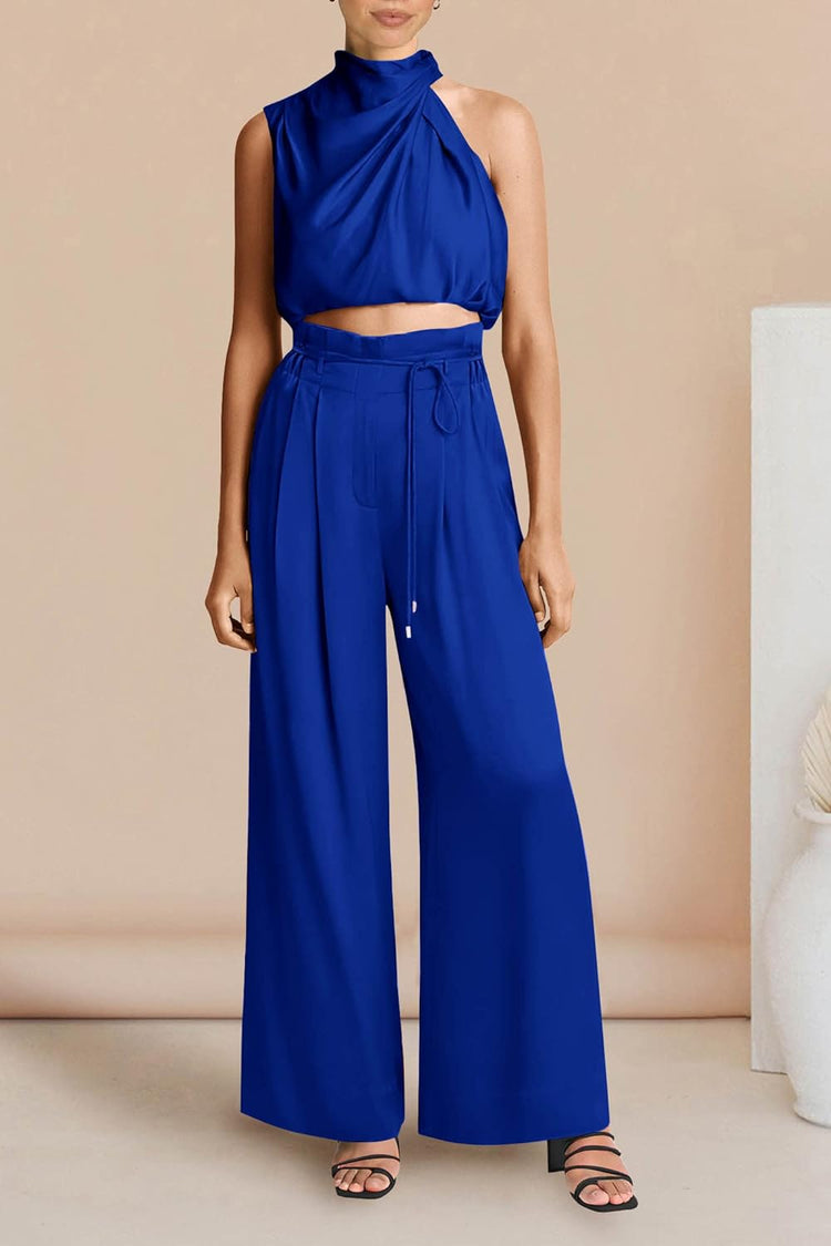 The Mock Neck Crop Top And Wide Leg Pants Set Adds A Sense Of Elegance And Chic
