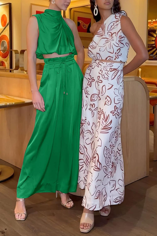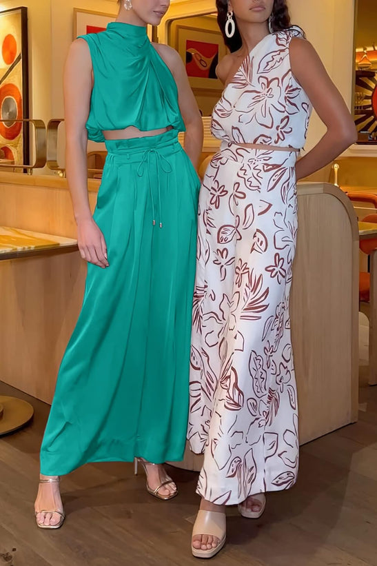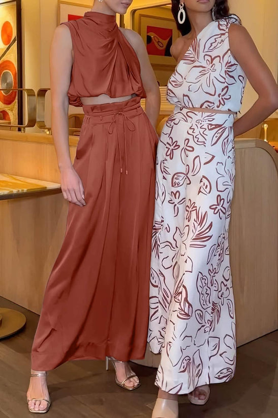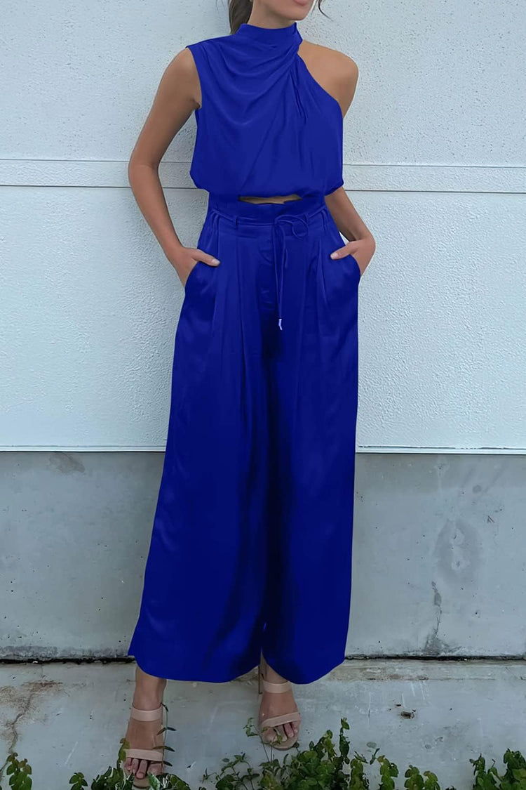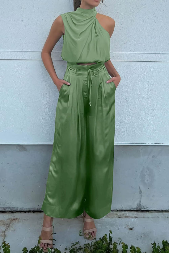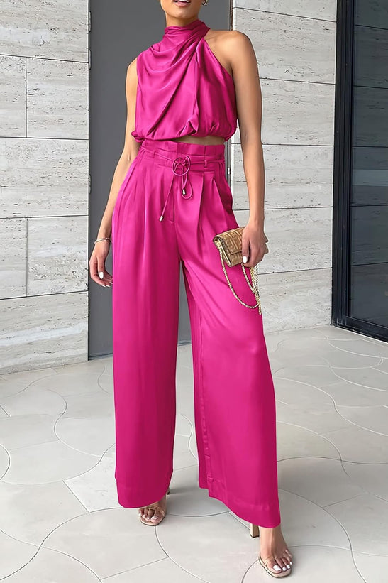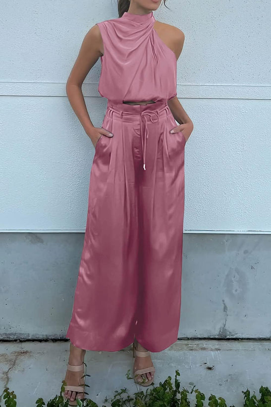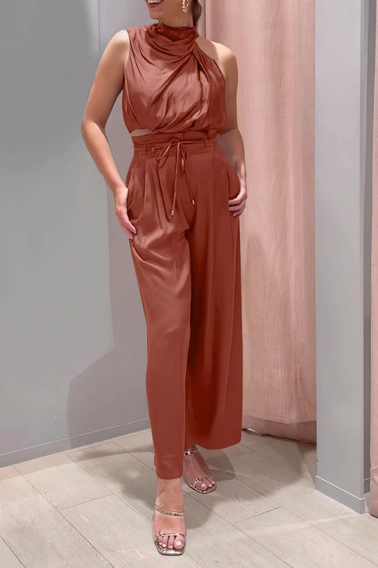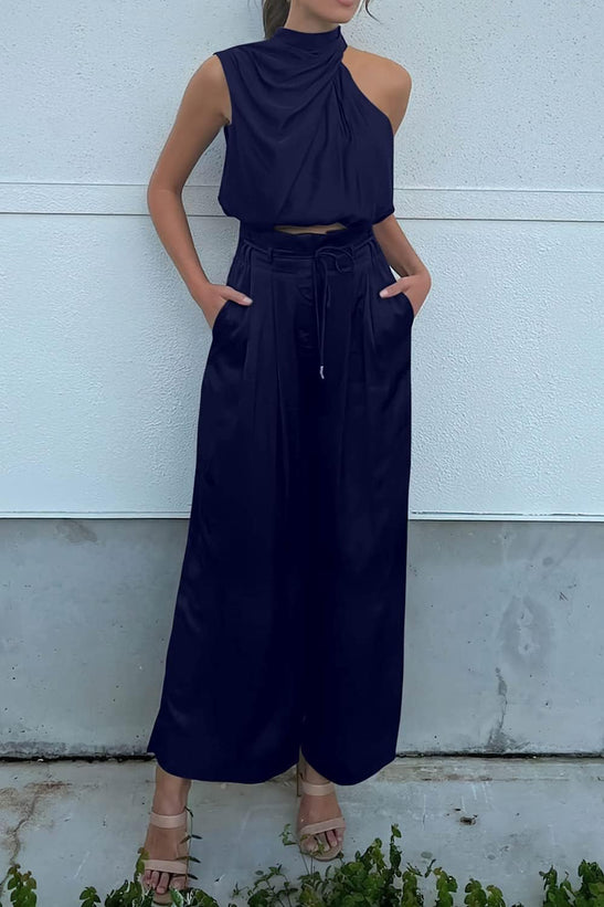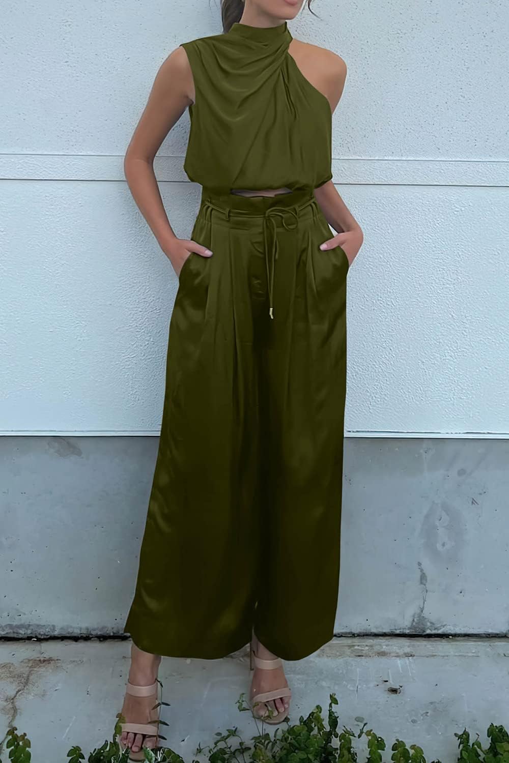 The Mock Neck Crop Top And Wide Leg Pants Set Adds A Sense Of Elegance And Chic