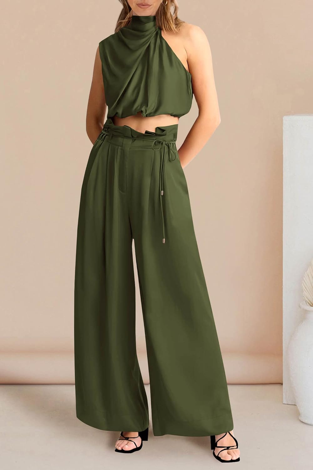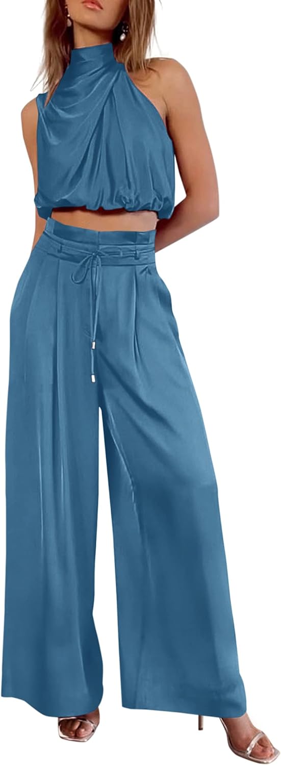 PRETTYGARDEN 2 Piece Outfits For Women Summer Palazzo Pants Matching Sets