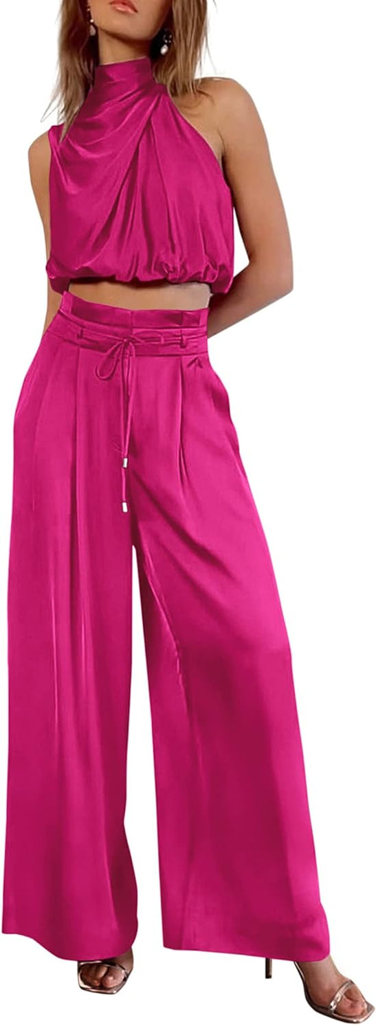Women 2 Piece Outfits Consists Of A Crop Tops And Palazzo Pants, Brighten Up Your Wardrobe