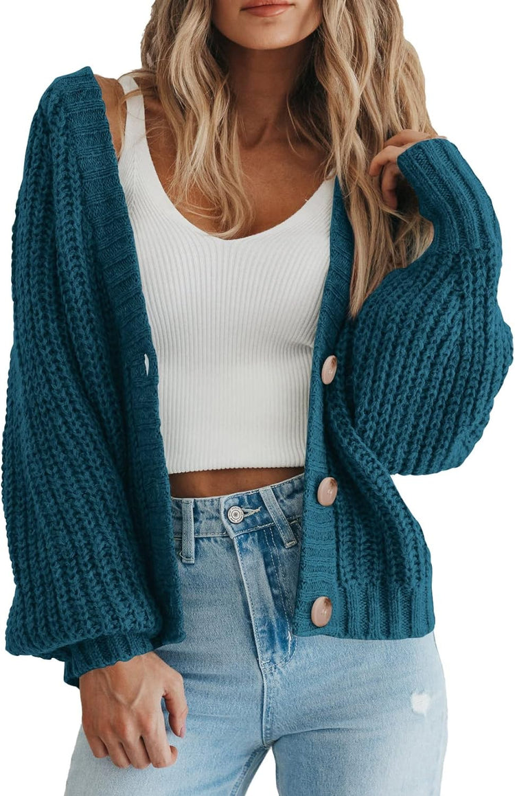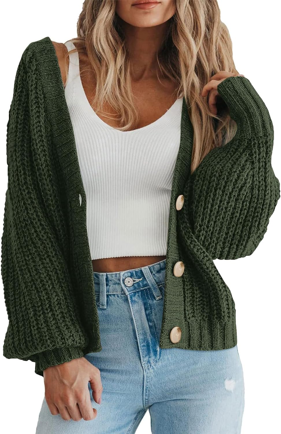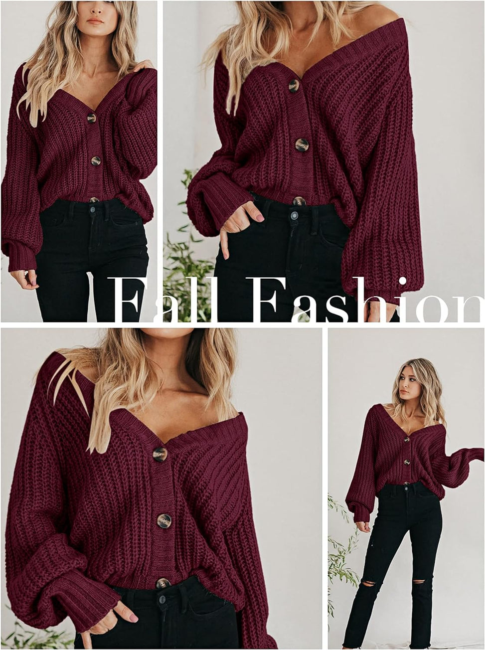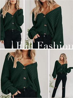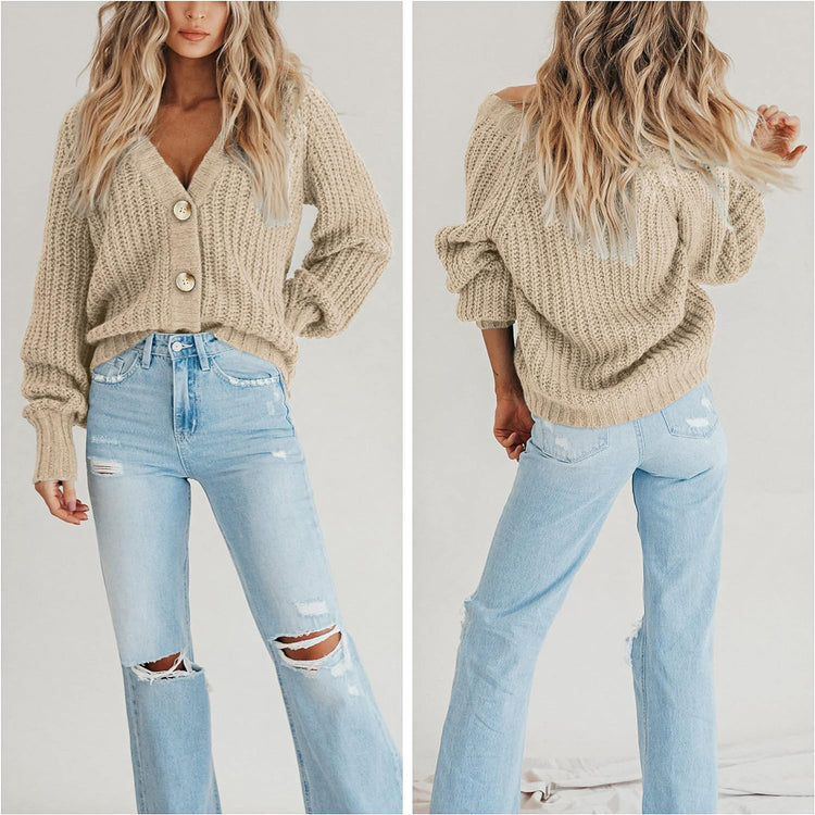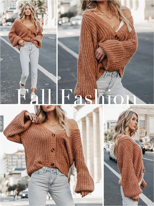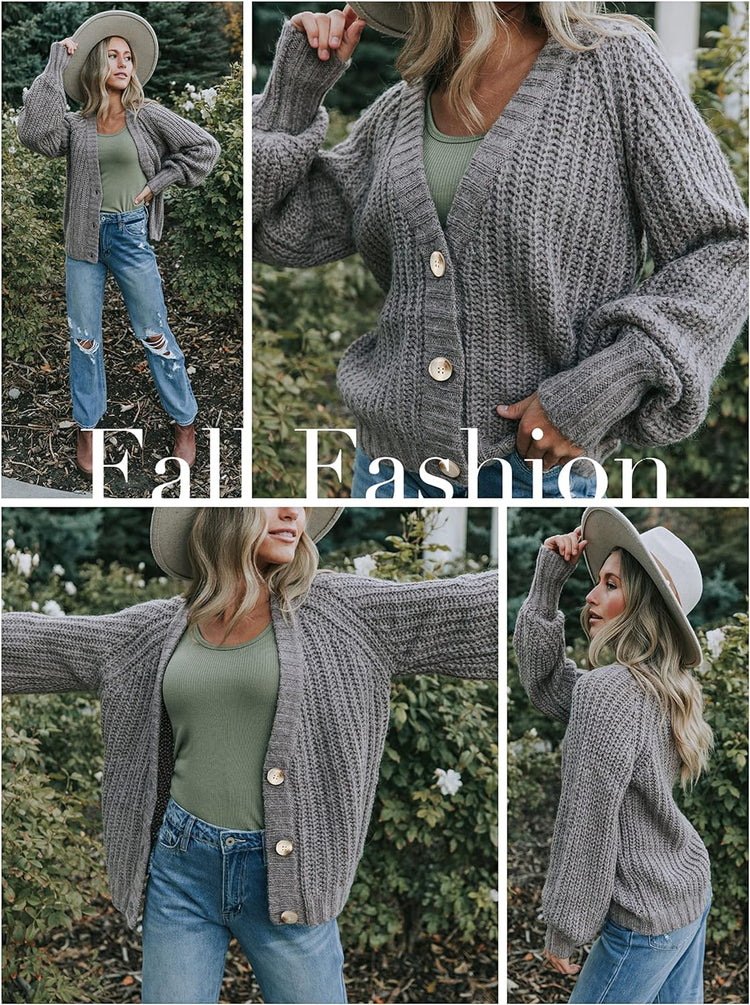 Solid Color Womens Cardigan V Neck Chunky Knit Fall Cardigans for Women 2022 Loose Womens Sweater