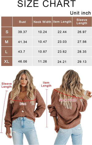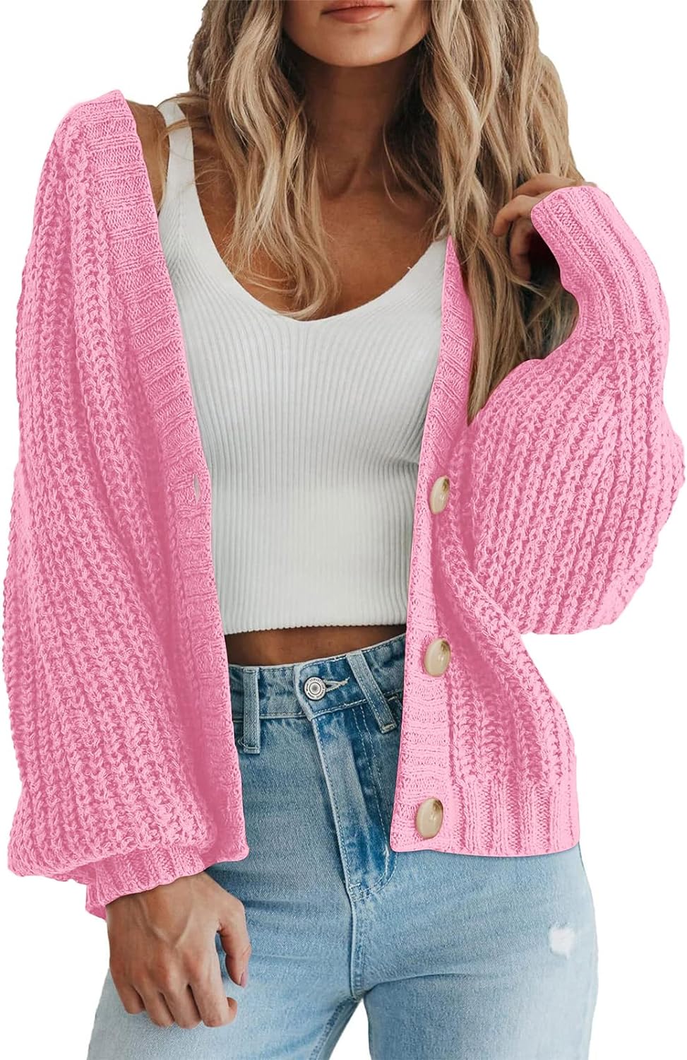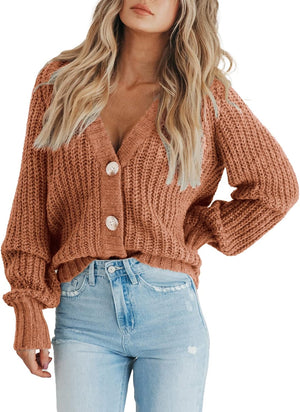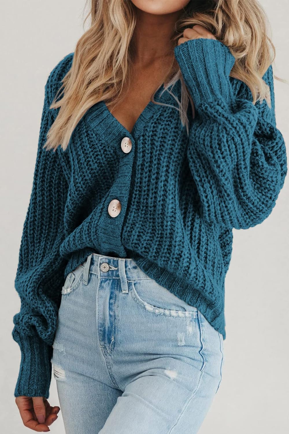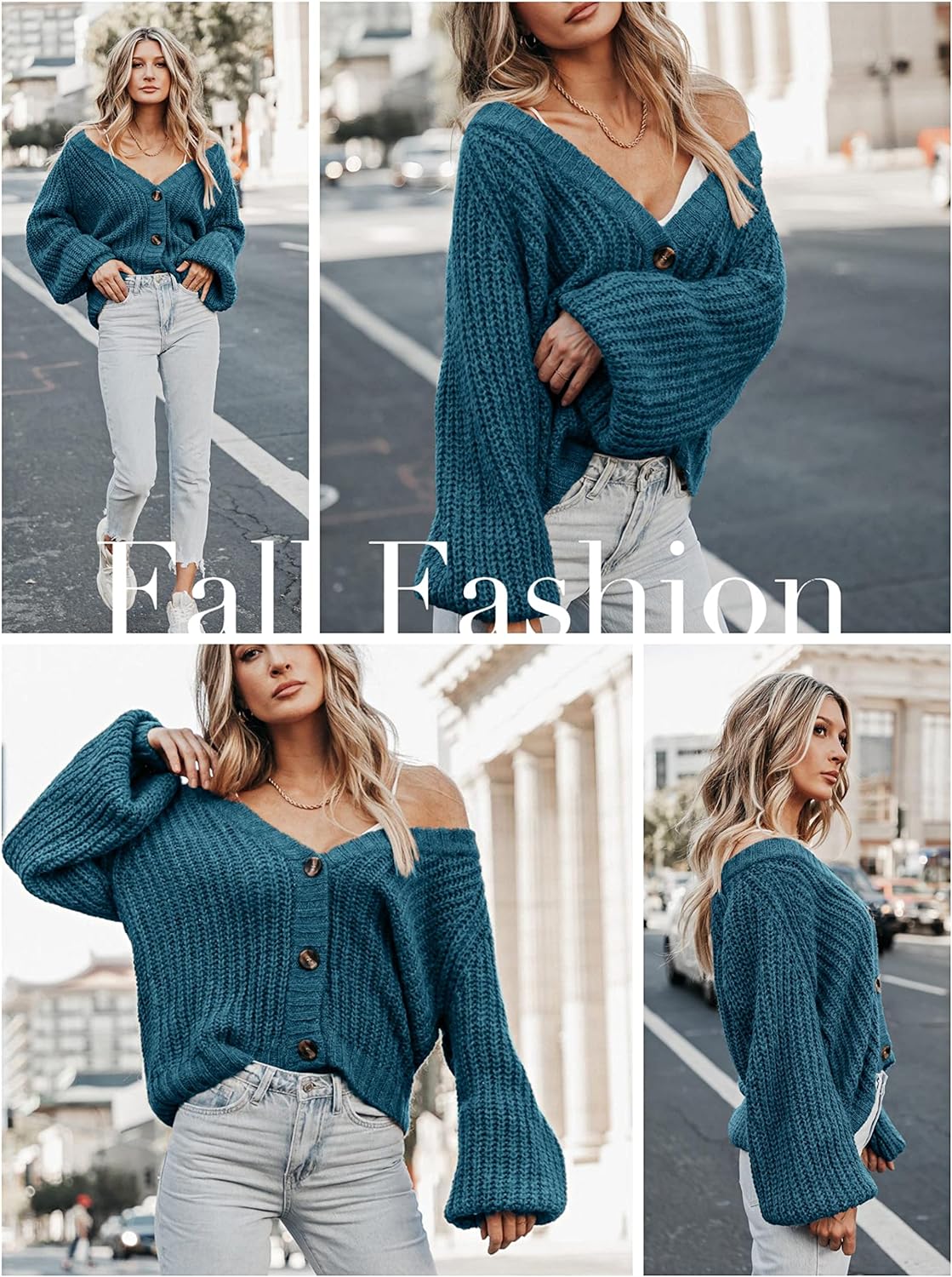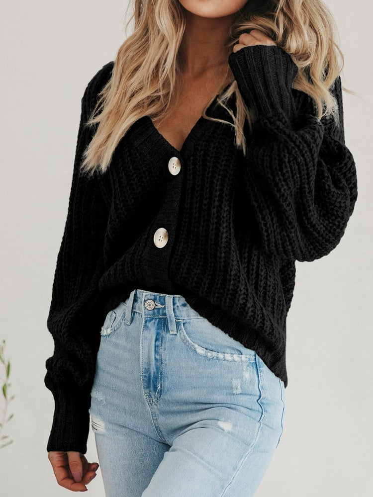 Solid Color Womens Cardigan V Neck Chunky Knit Fall Cardigans for Women 2022 Loose Womens Sweater