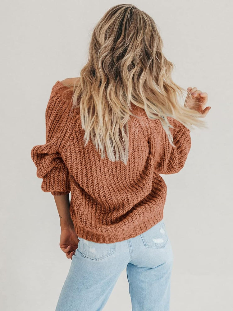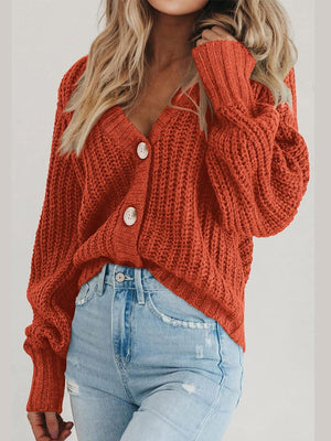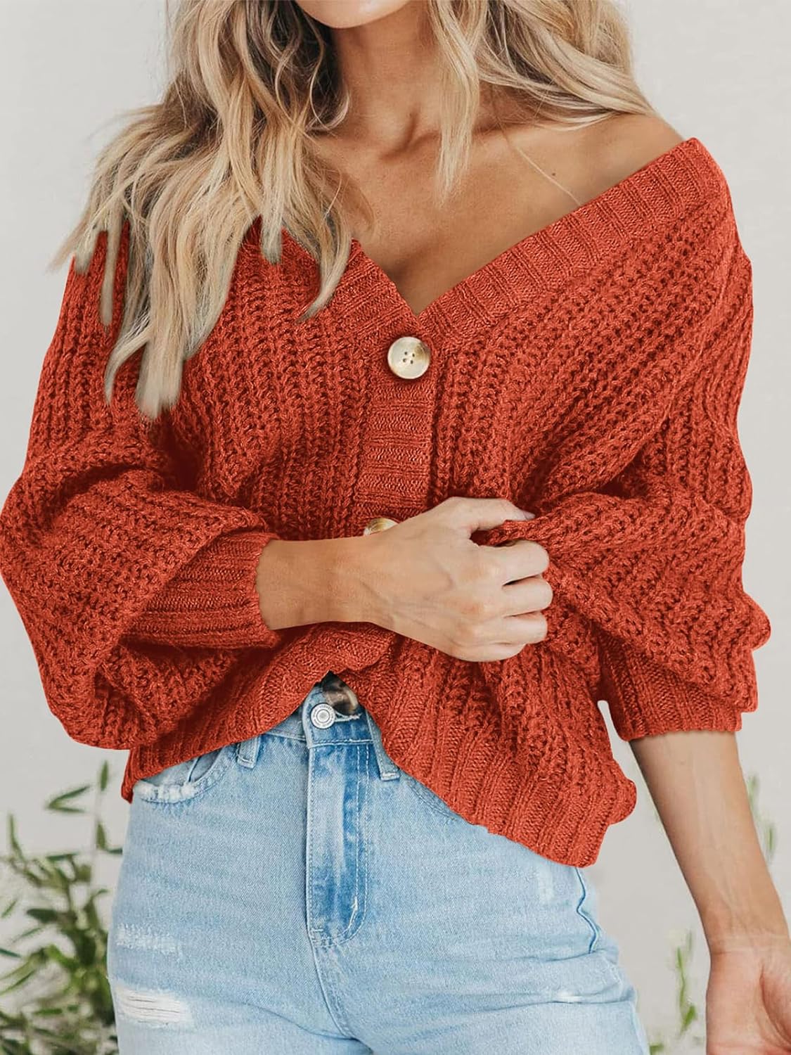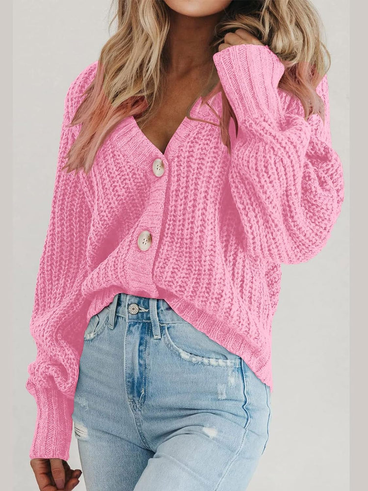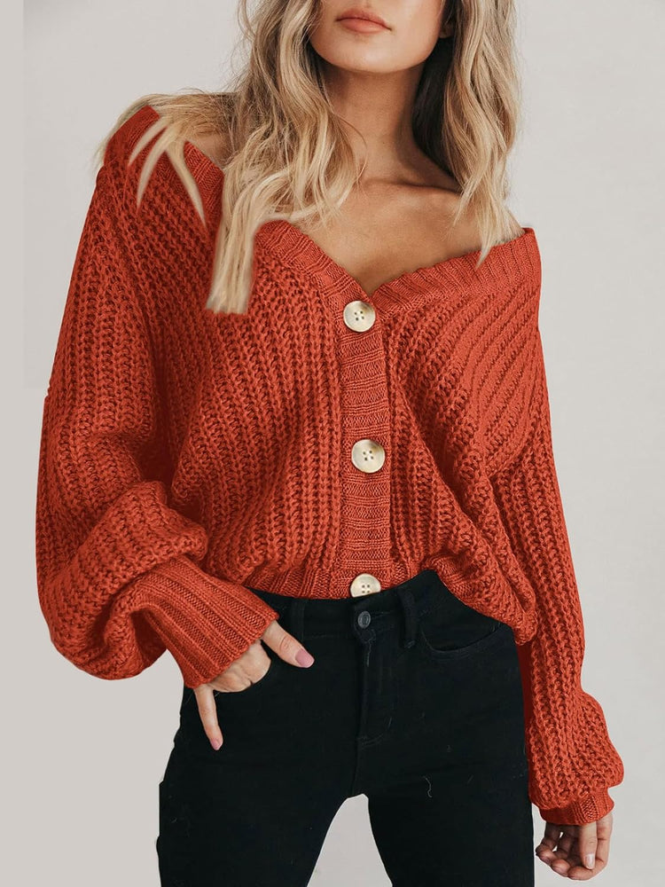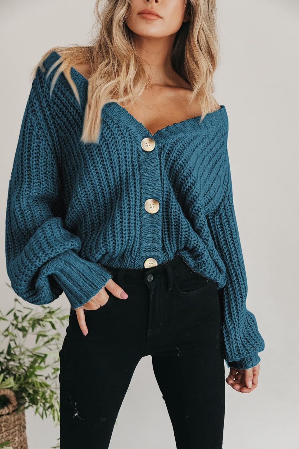 Solid Color Womens Cardigan V Neck Chunky Knit Fall Cardigans for Women 2022 Loose Womens Sweater