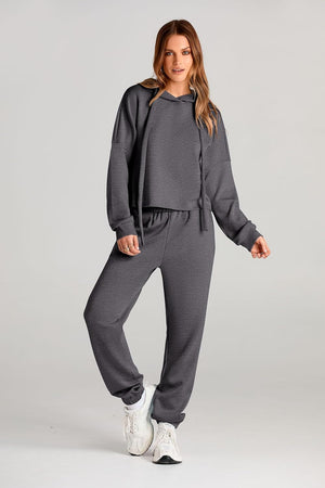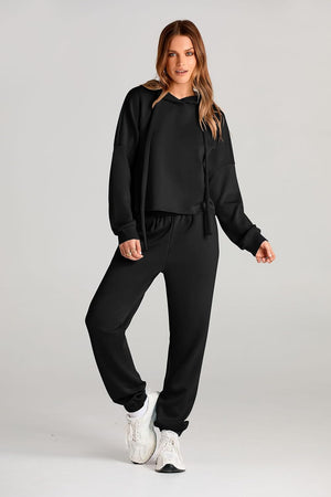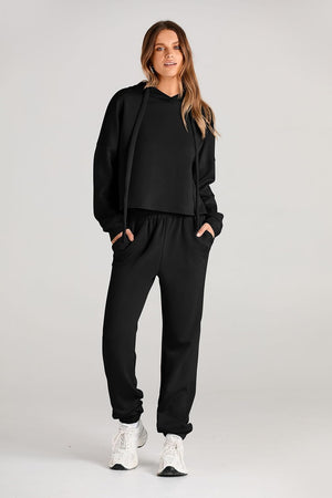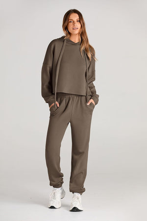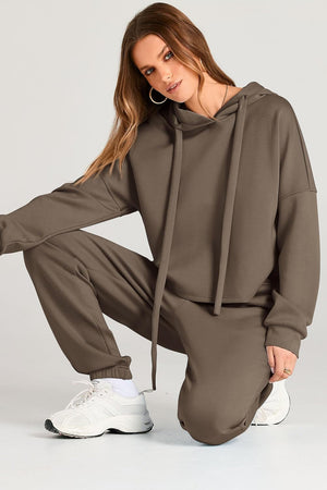 Fashion Style: 2 Piece, Hoodies Sweatshirt, Sweatpants, Drop Shoulder, Pockets, Solid Color