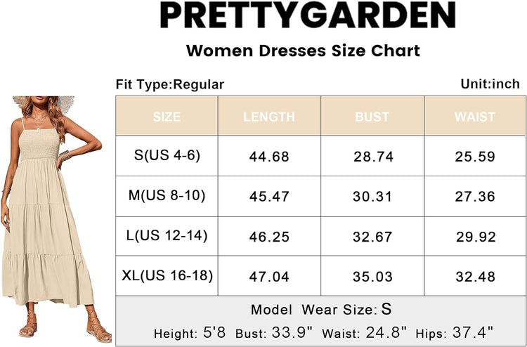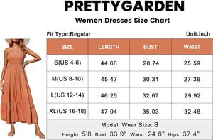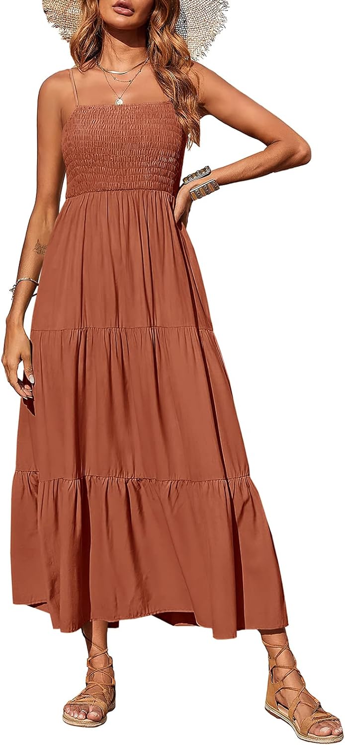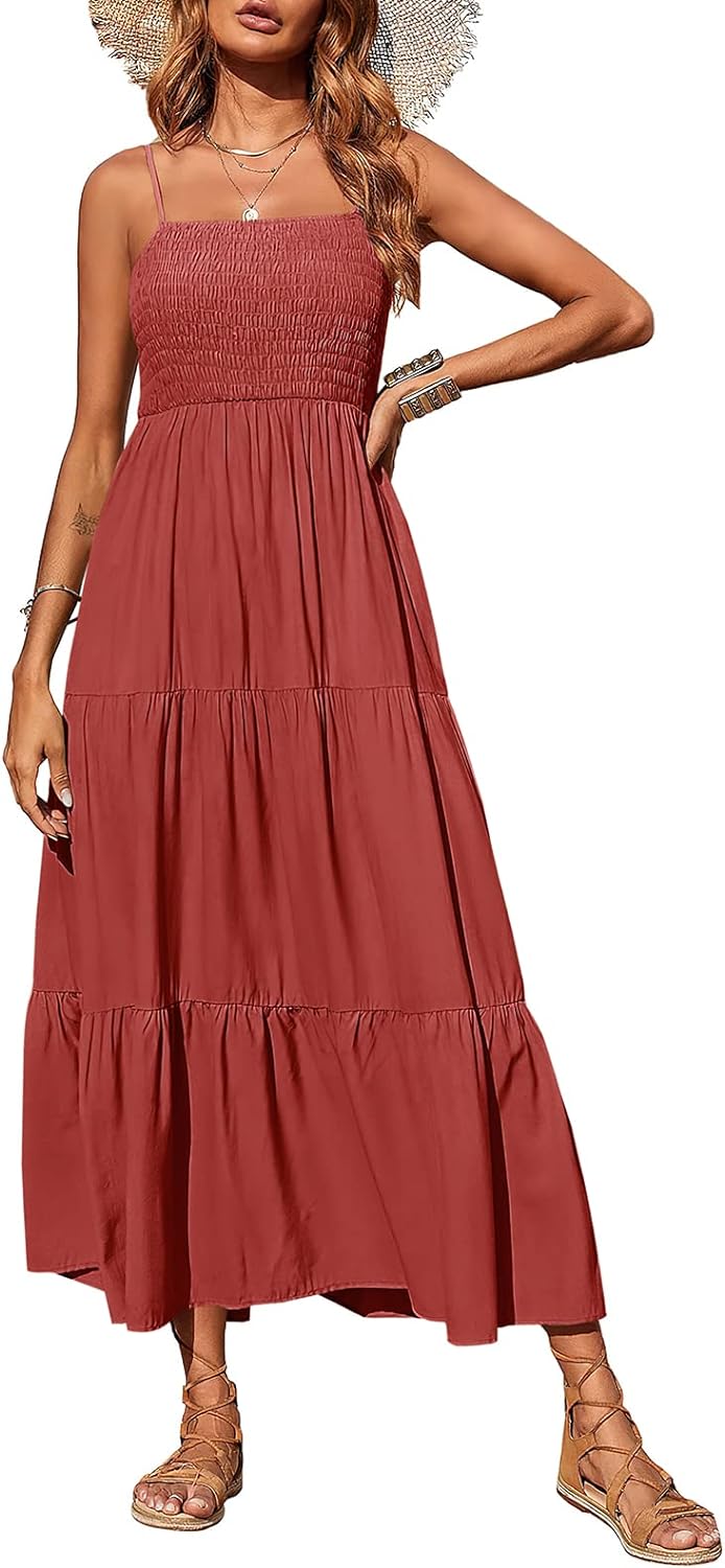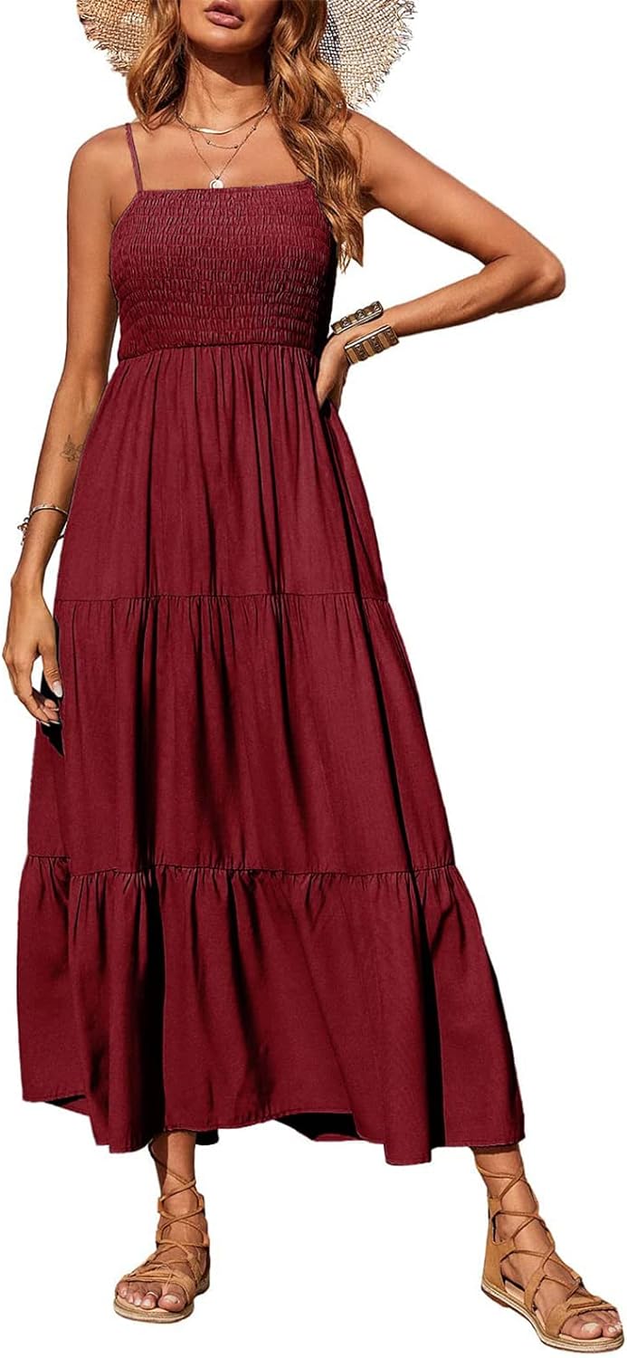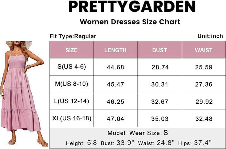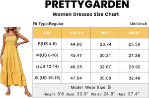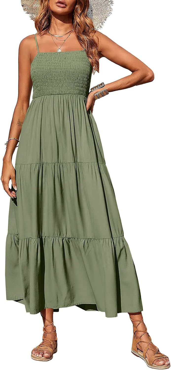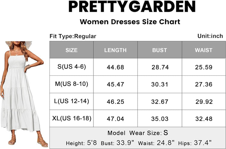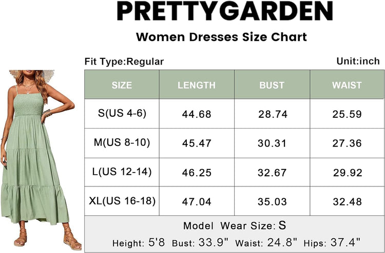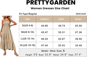 PRETTYGARDEN Women's Summer Maxi Dress Casual Boho Sleeveless Spaghetti Strap Smocked Tiered Long Beach Sun Dresses
