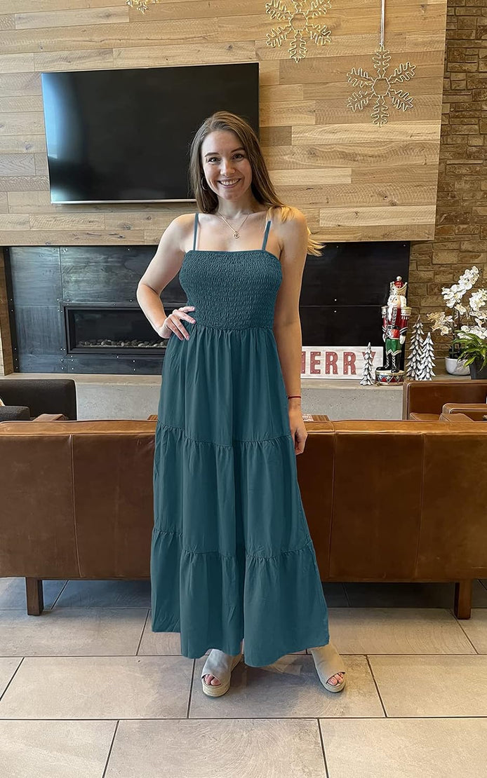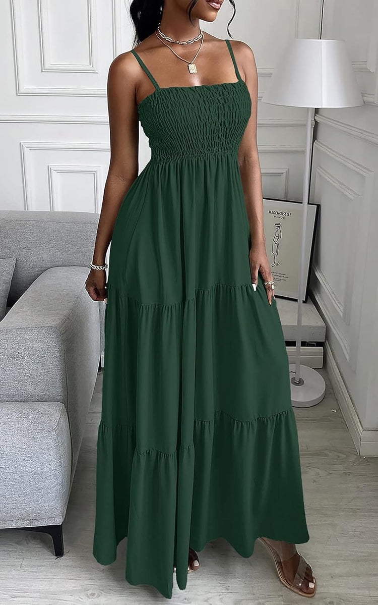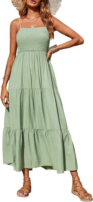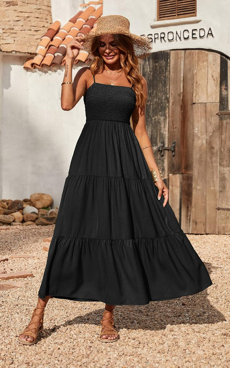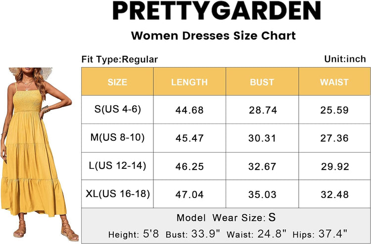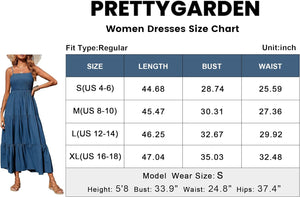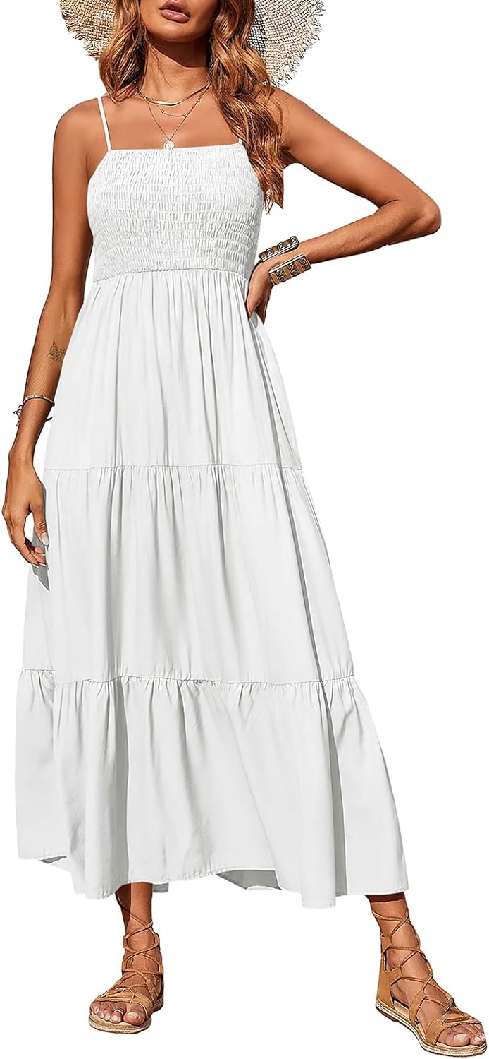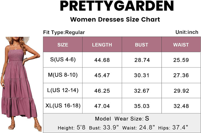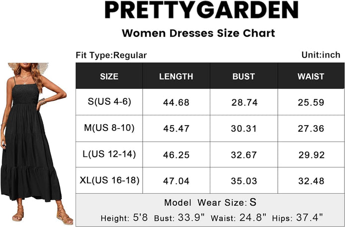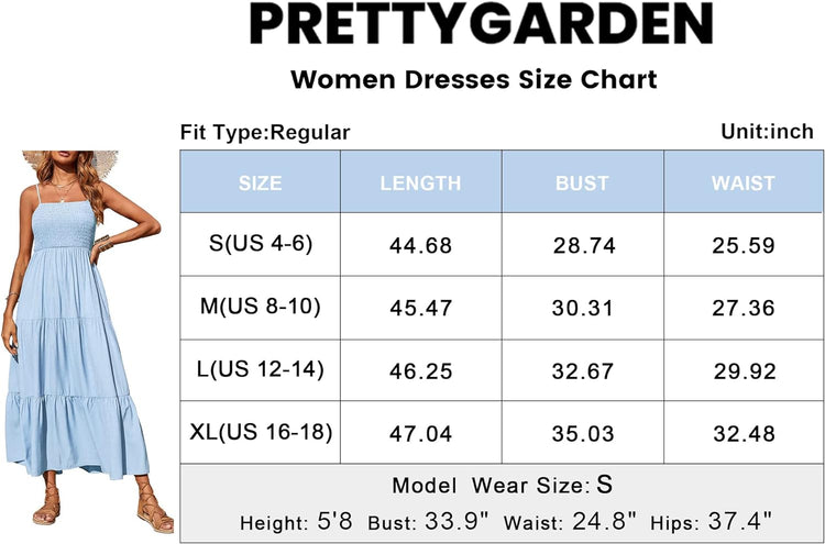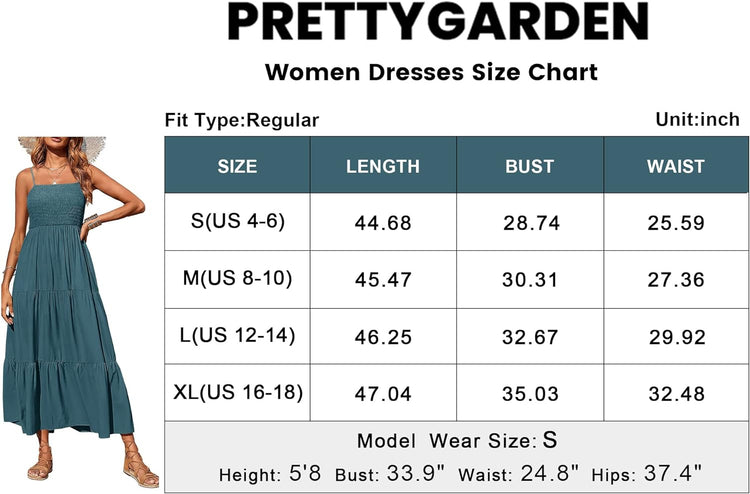 PRETTYGARDEN Women's Summer Maxi Dress Casual Boho Sleeveless Spaghetti Strap Smocked Tiered Long Beach Sun Dresses