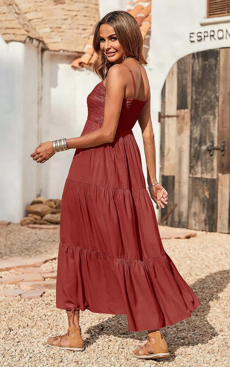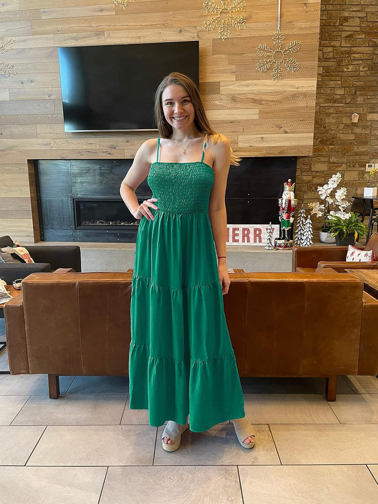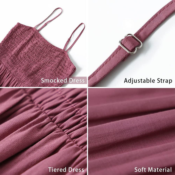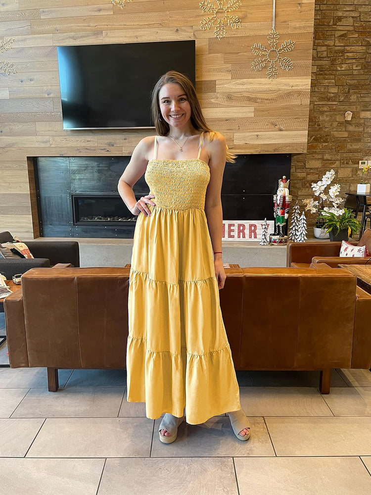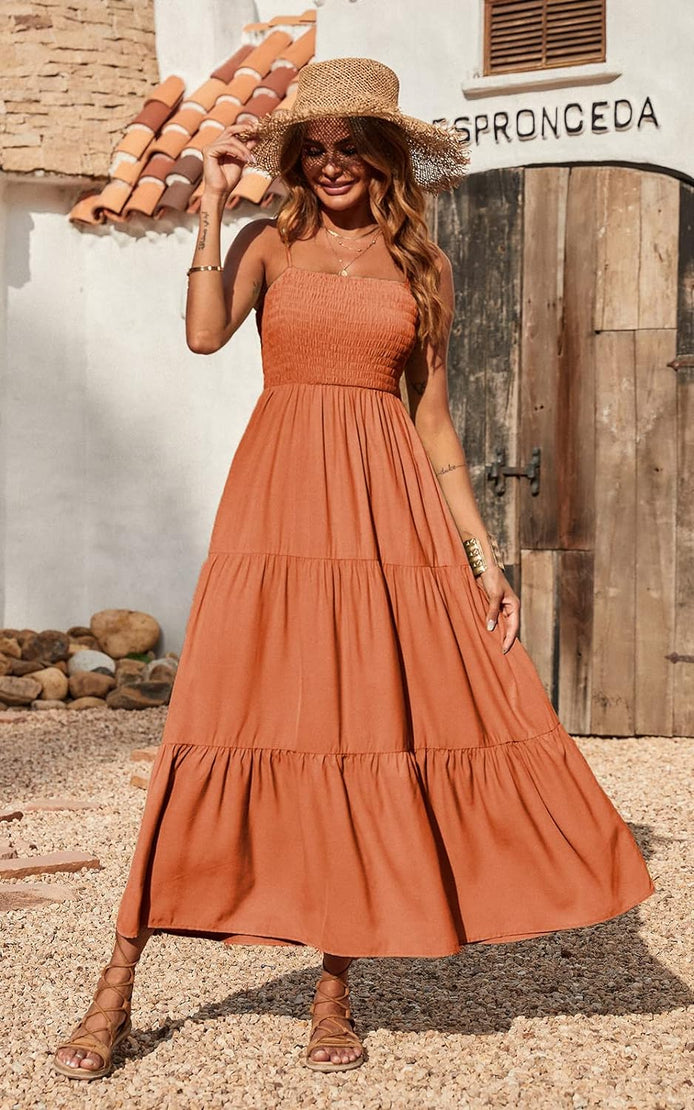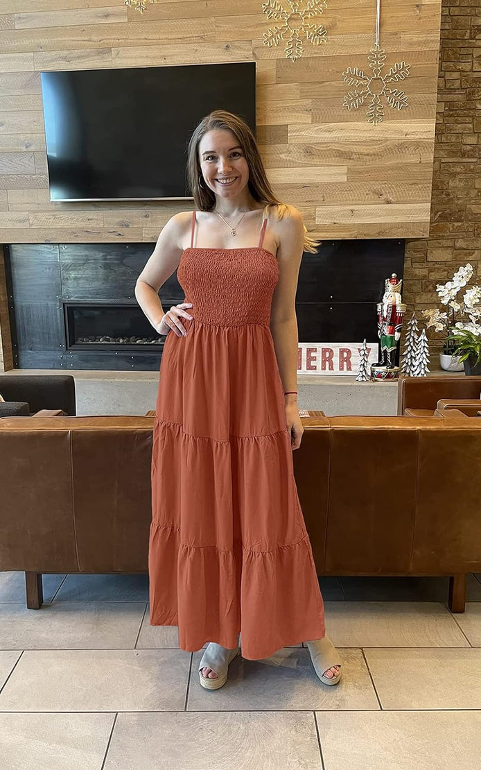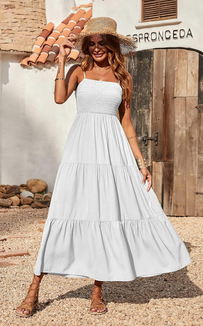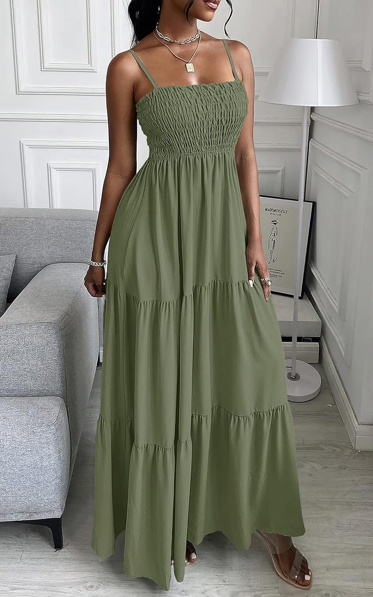 PRETTYGARDEN Women's Summer Maxi Dress Casual Boho Sleeveless Spaghetti Strap Smocked Tiered Long Beach Sun Dresses