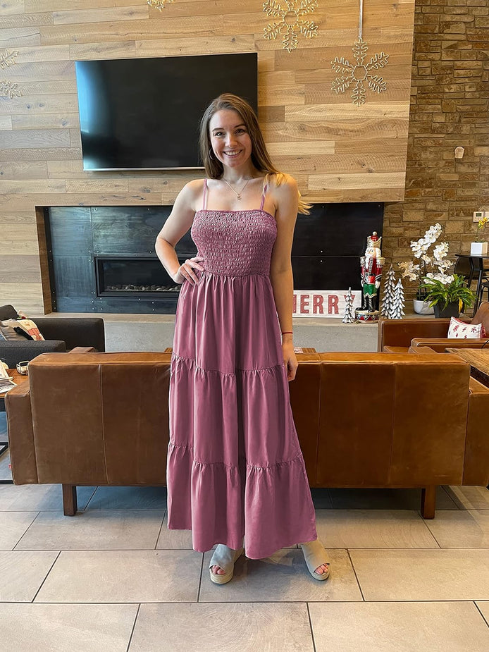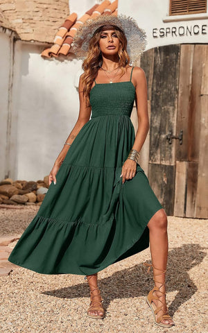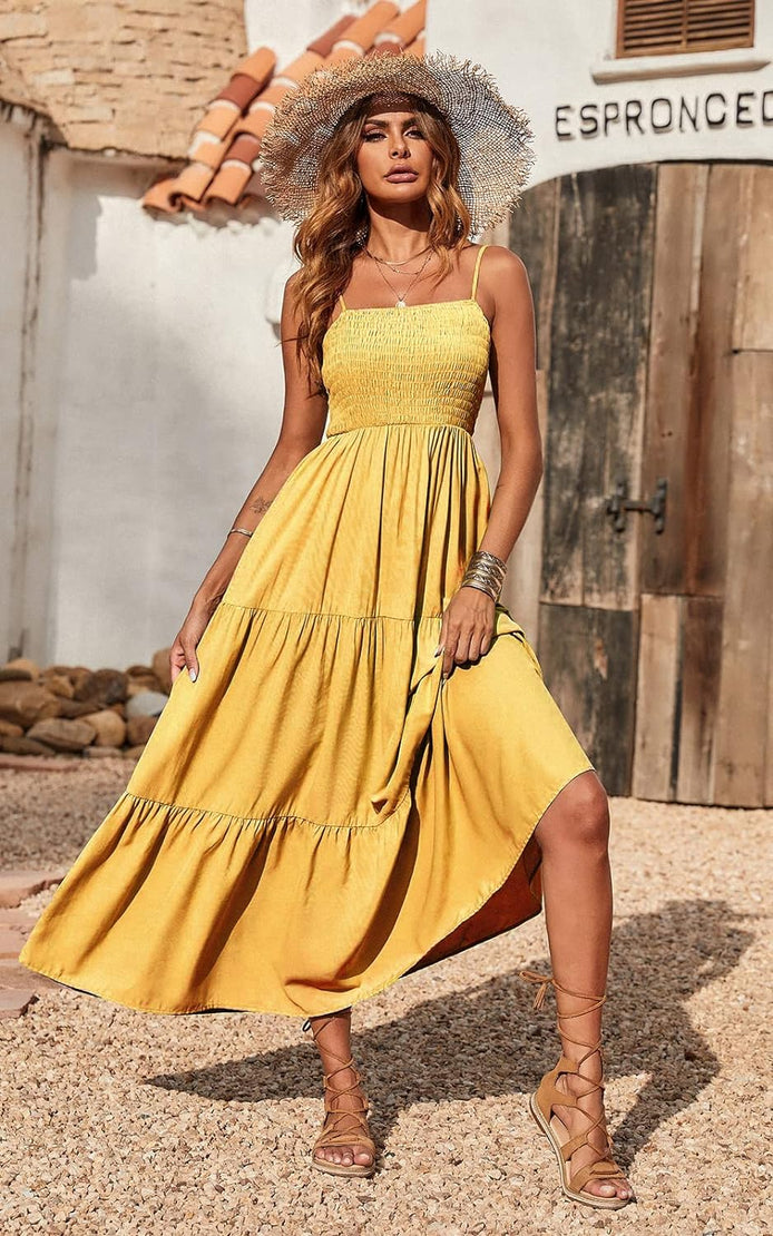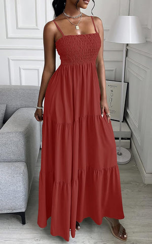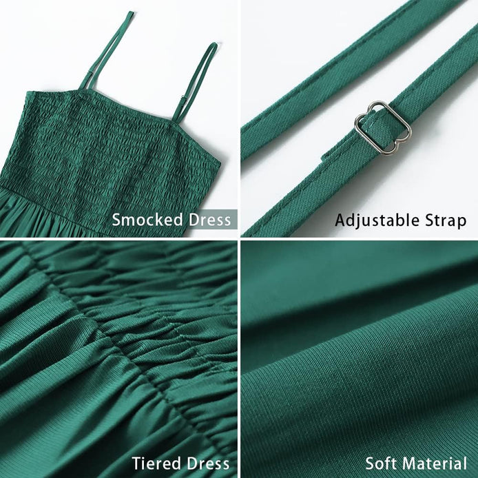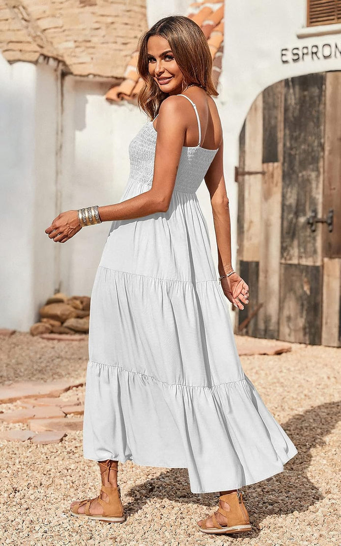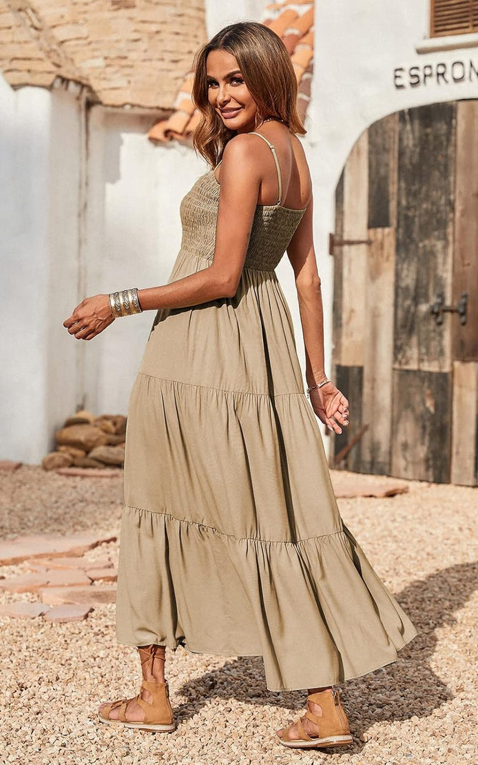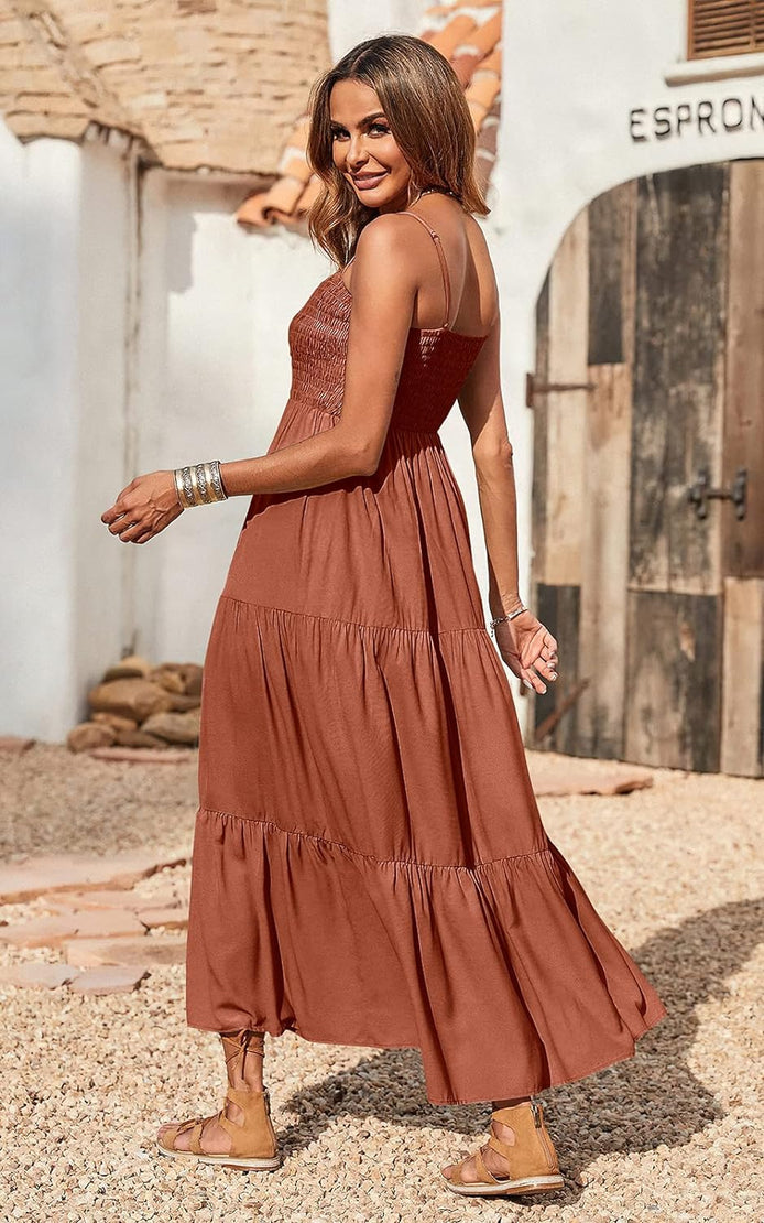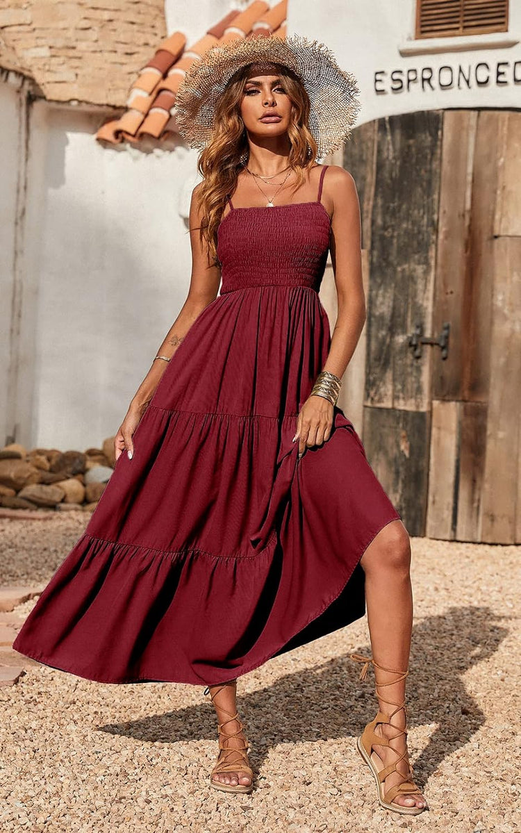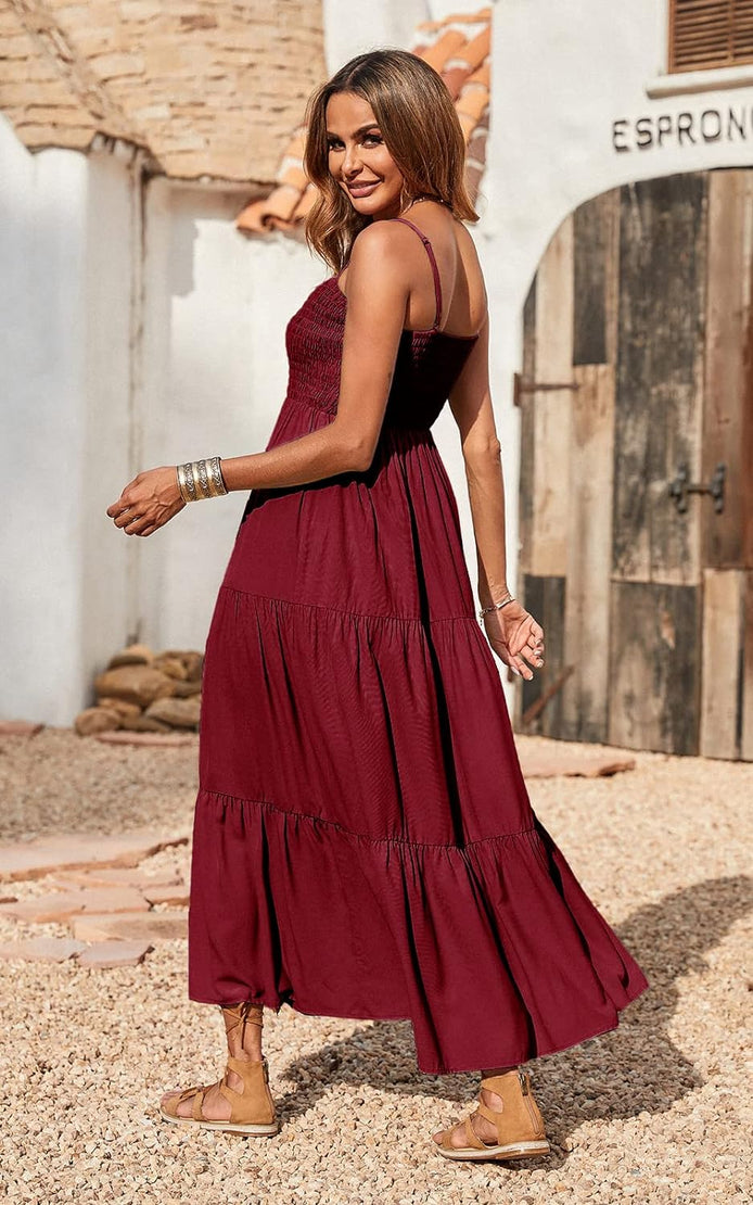 PRETTYGARDEN Women's Summer Maxi Dress Casual Boho Sleeveless Spaghetti Strap Smocked Tiered Long Beach Sun Dresses