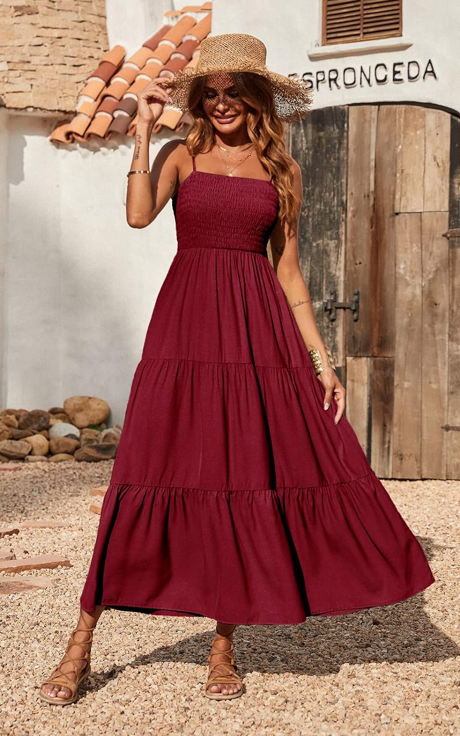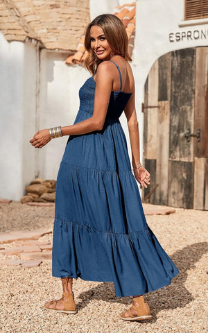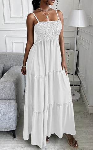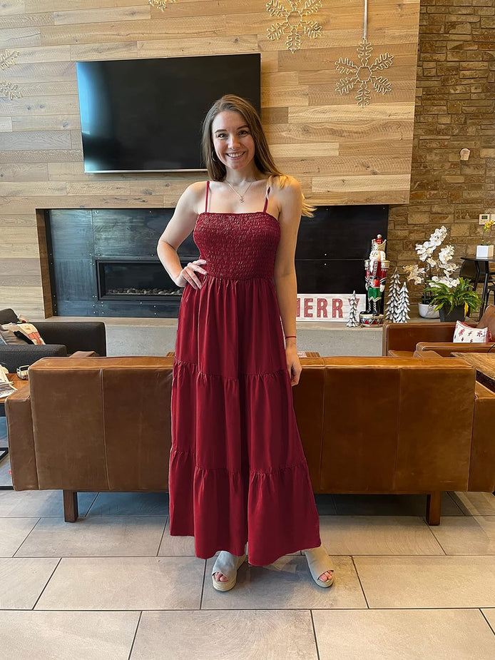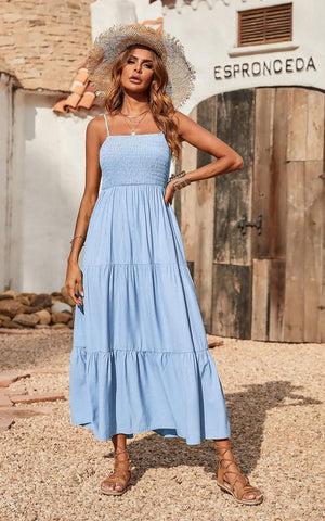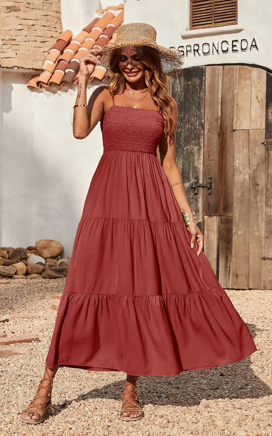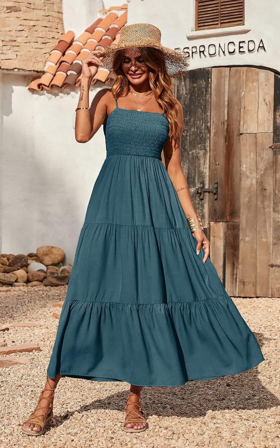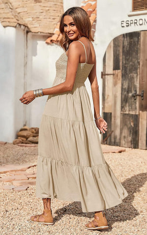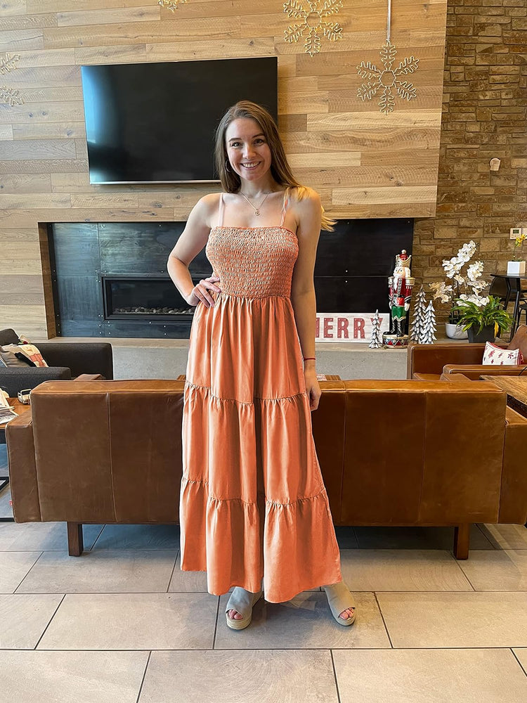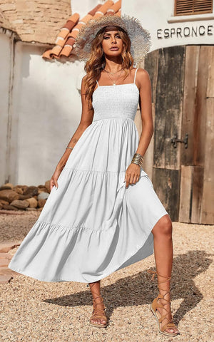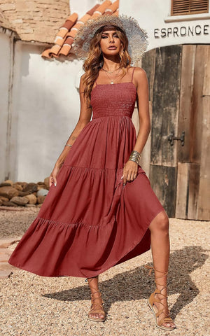 PRETTYGARDEN Women's Summer Maxi Dress Casual Boho Sleeveless Spaghetti Strap Smocked Tiered Long Beach Sun Dresses