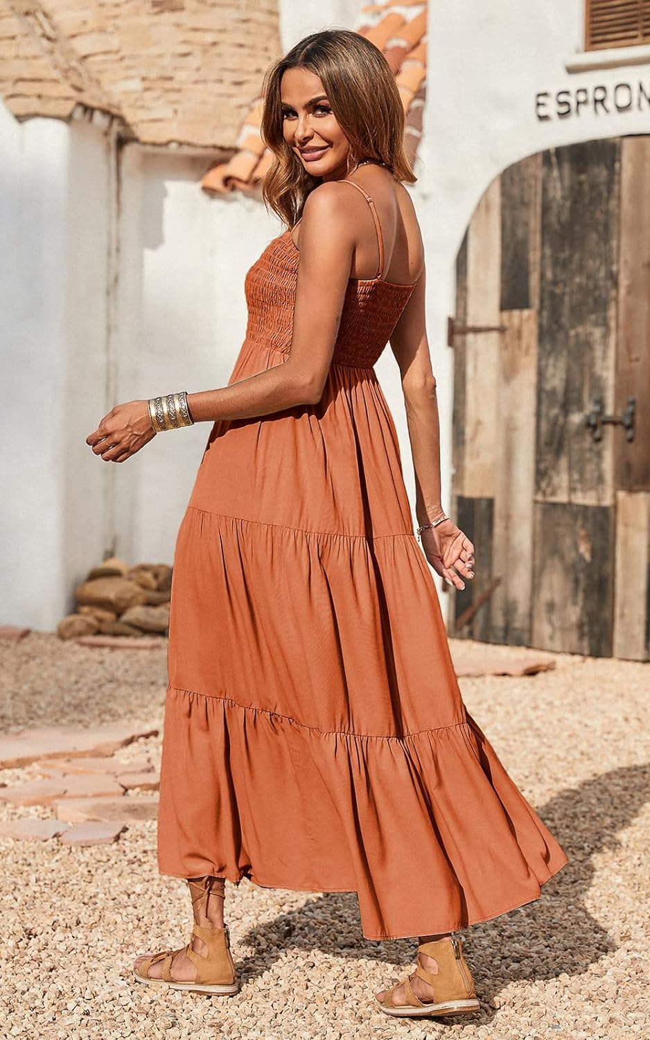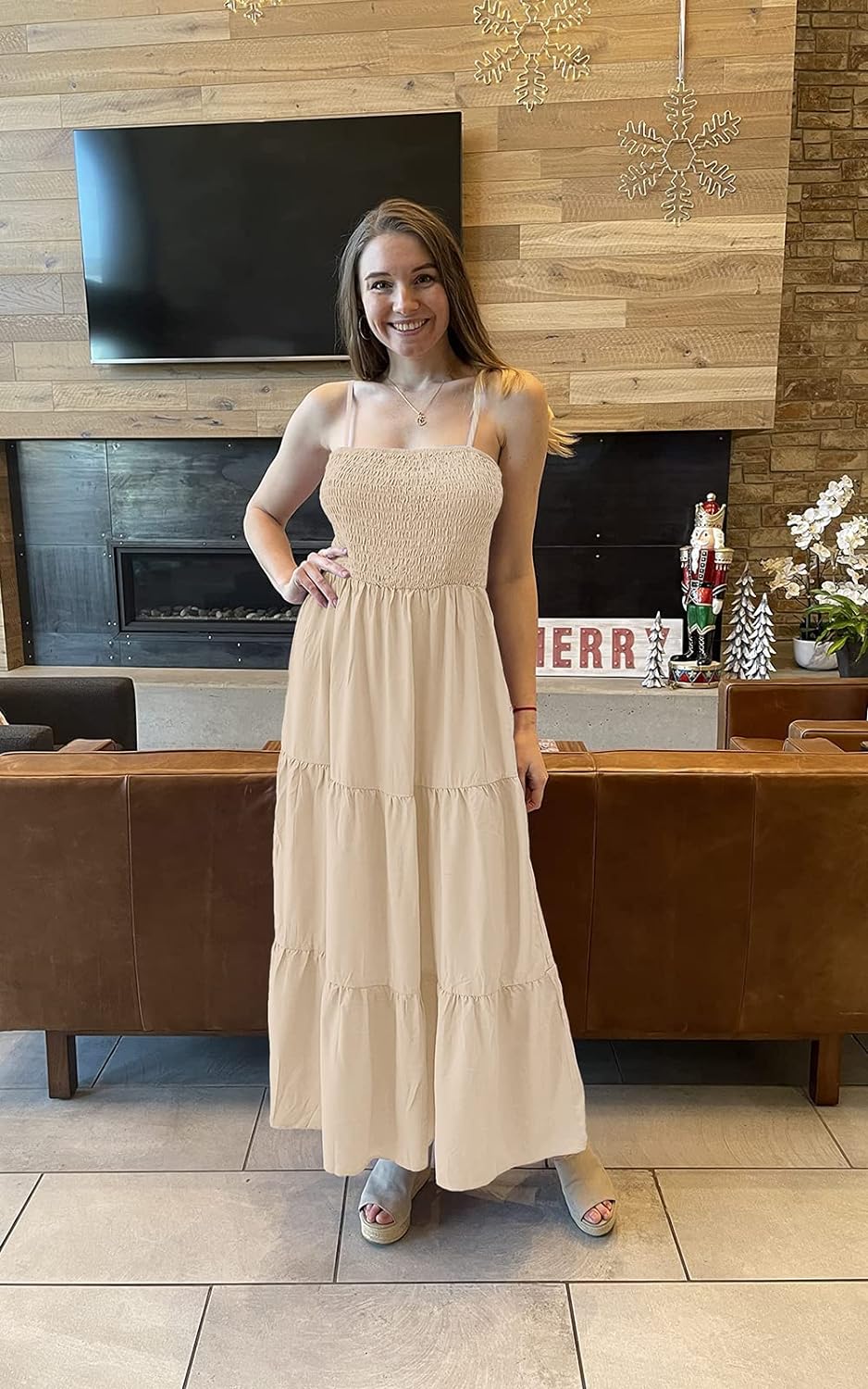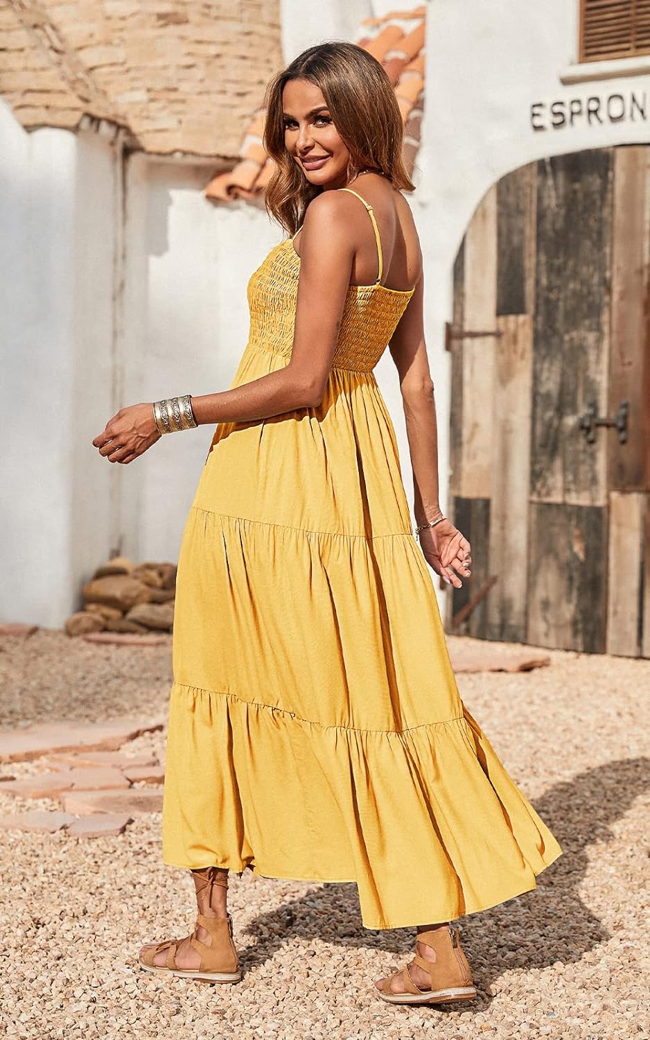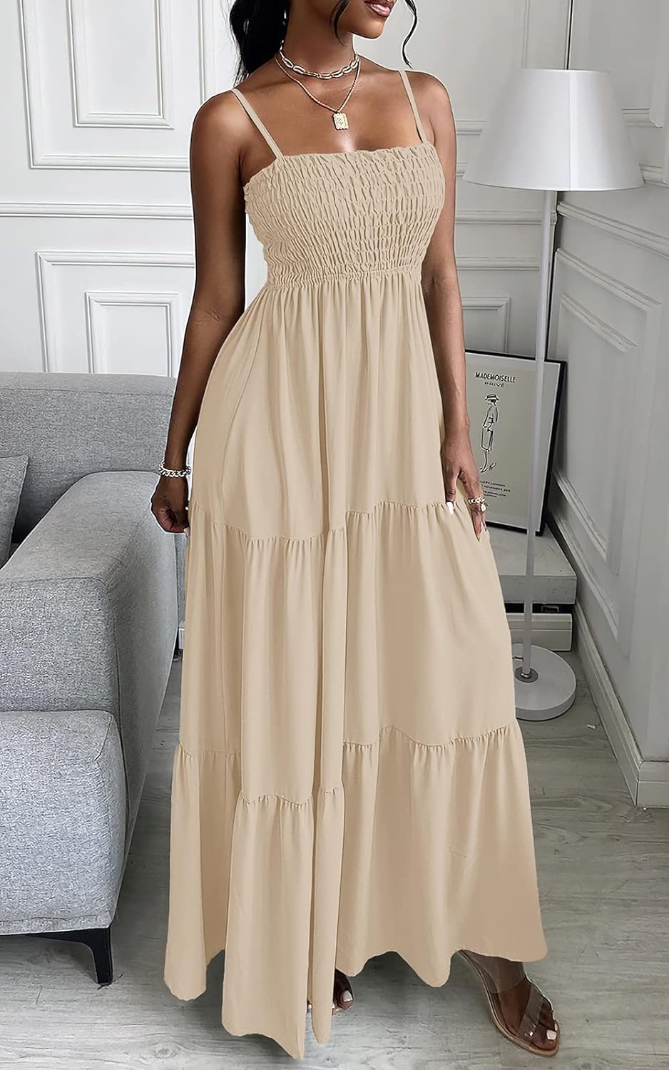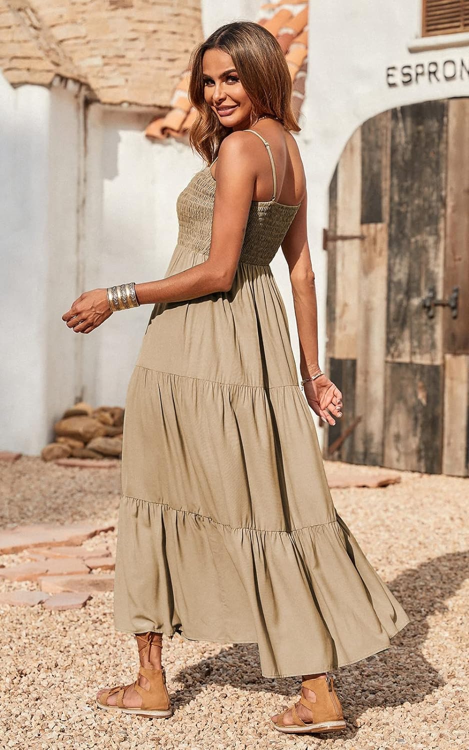 PRETTYGARDEN Women's Summer Maxi Dress Casual Boho Sleeveless Spaghetti Strap Smocked Tiered Long Beach Sun Dresses