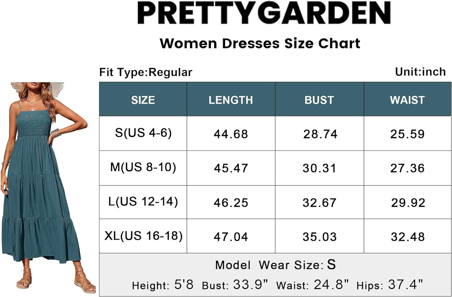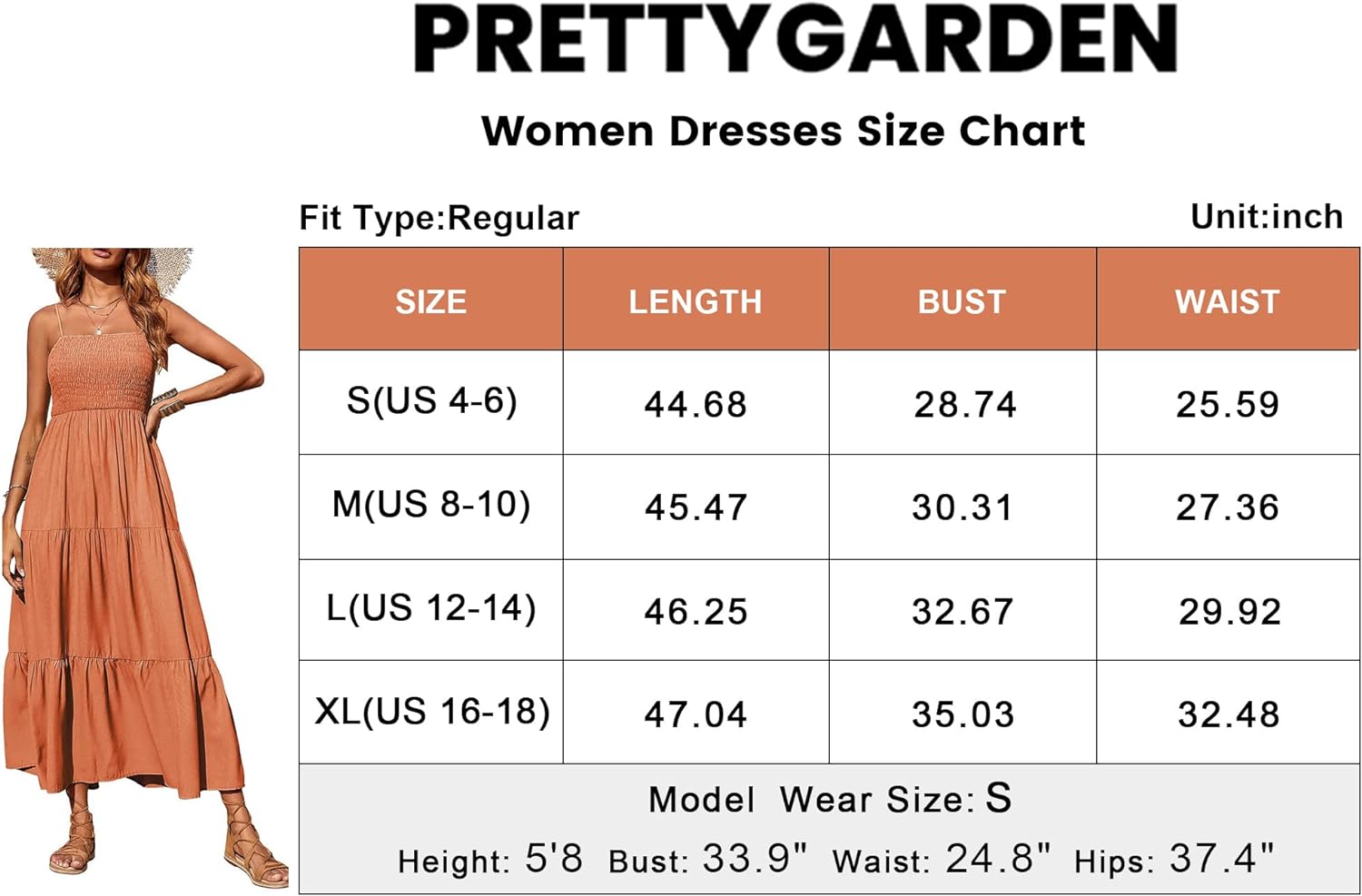 SIZE S-----BUST:30.70”---WAIST:25.98”---LENGTH:46.25”