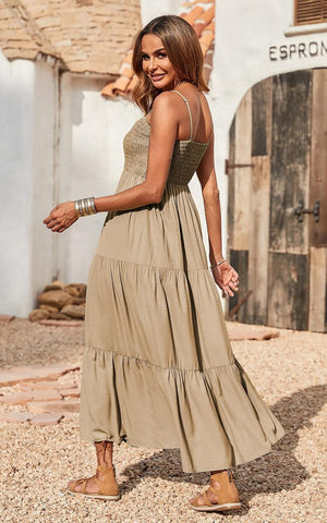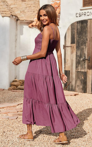 --- Solid color boho maxi dress