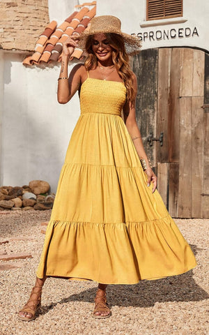 --- Flare tiered flowy long dress shape you a slim figure visually