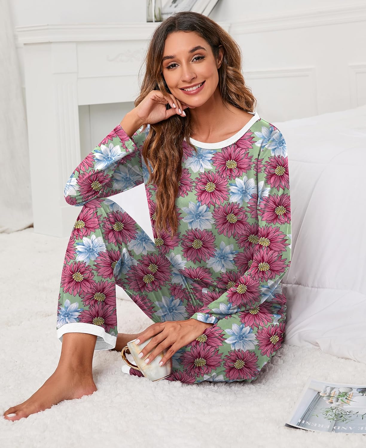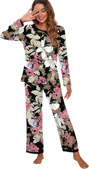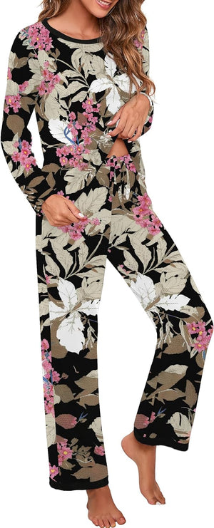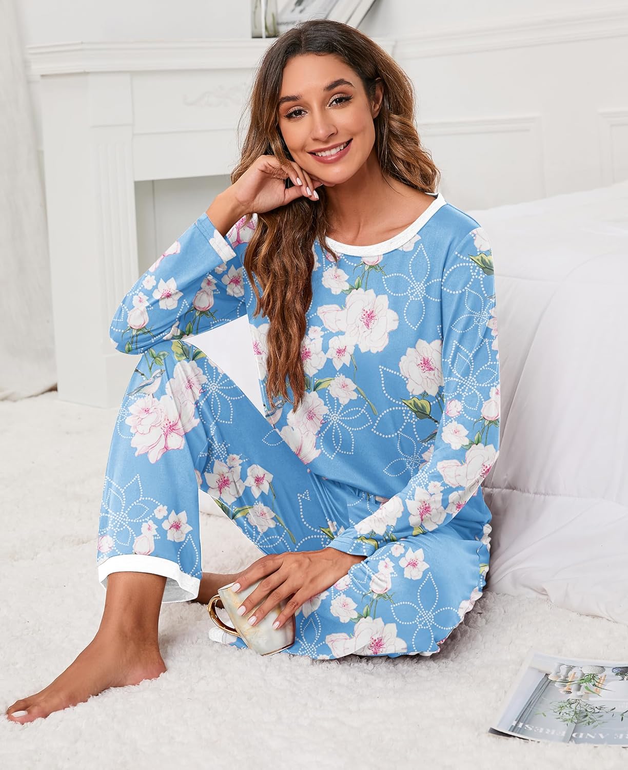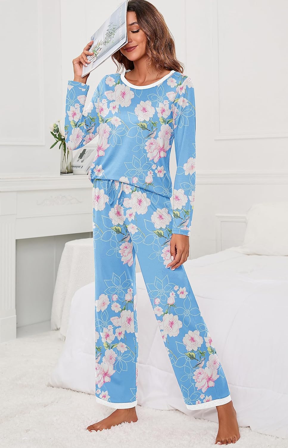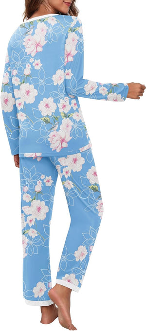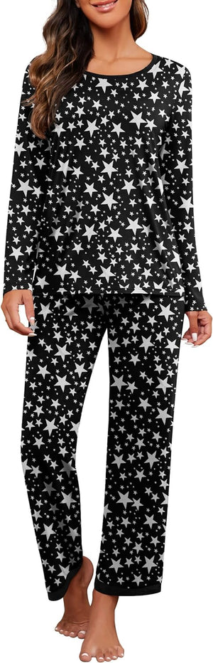 PrinStory 2022 Women's Pajama Set Long Sleeve Sleepwear Ladies Soft Pjs Lounge Set
