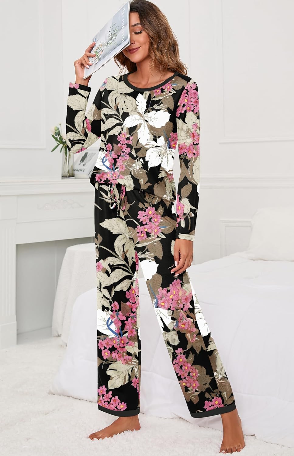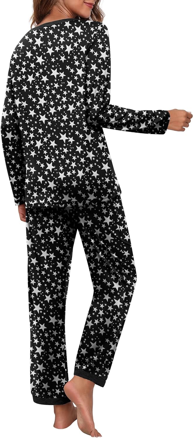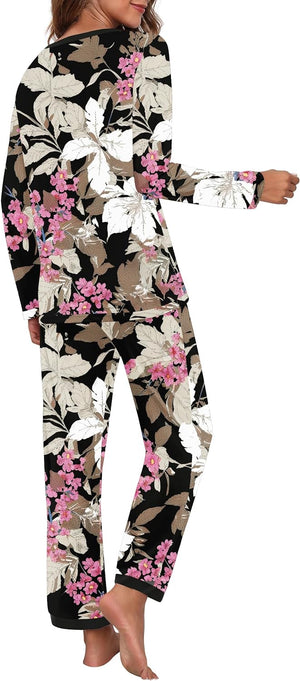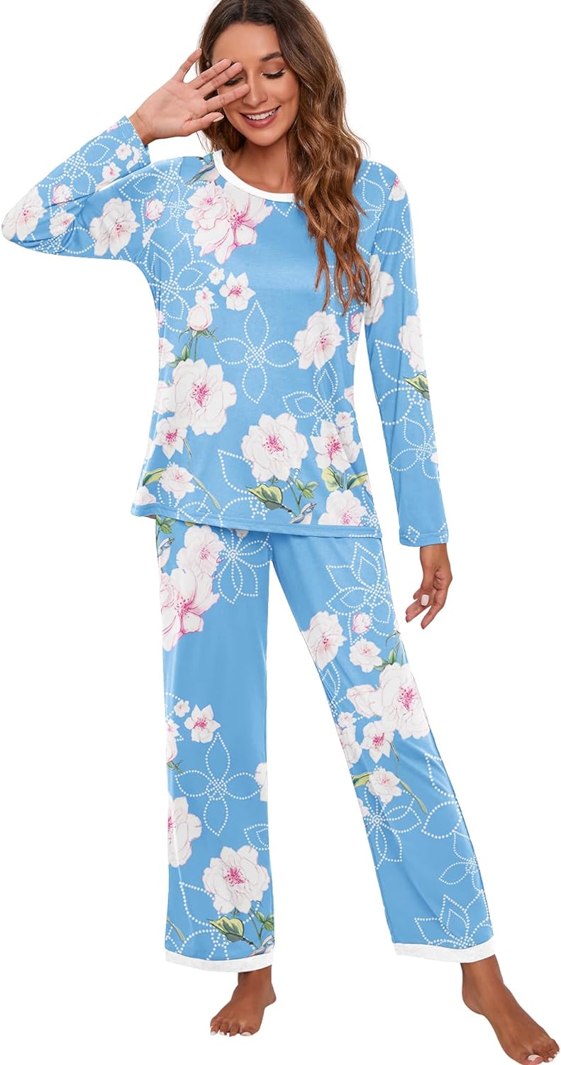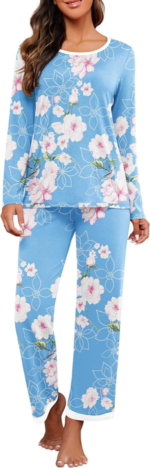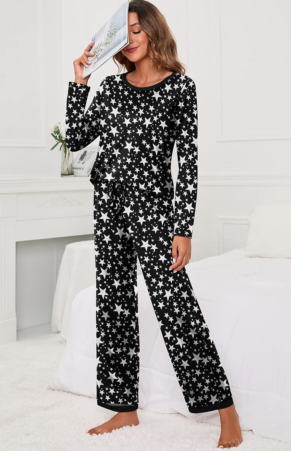 PrinStory 2022 Women's Pajama Set Long Sleeve Sleepwear Ladies Soft Pjs Lounge Set
