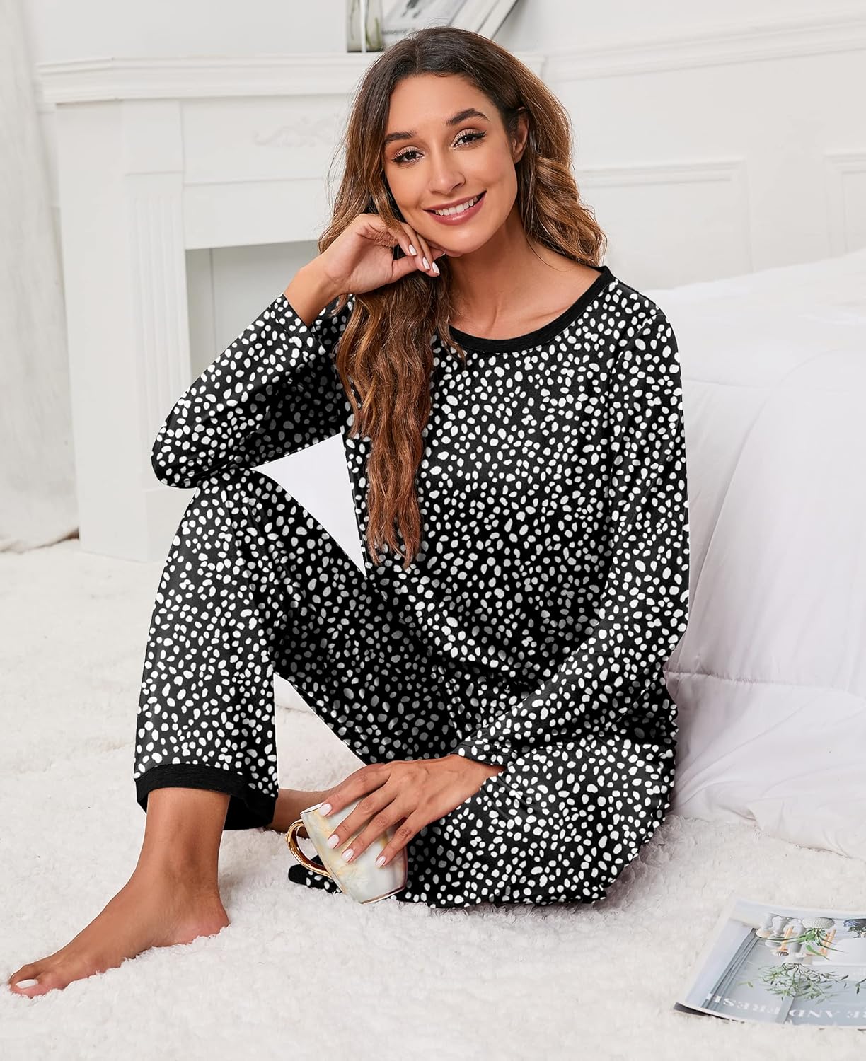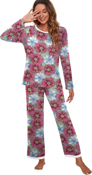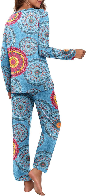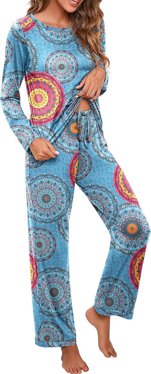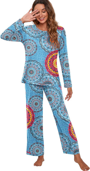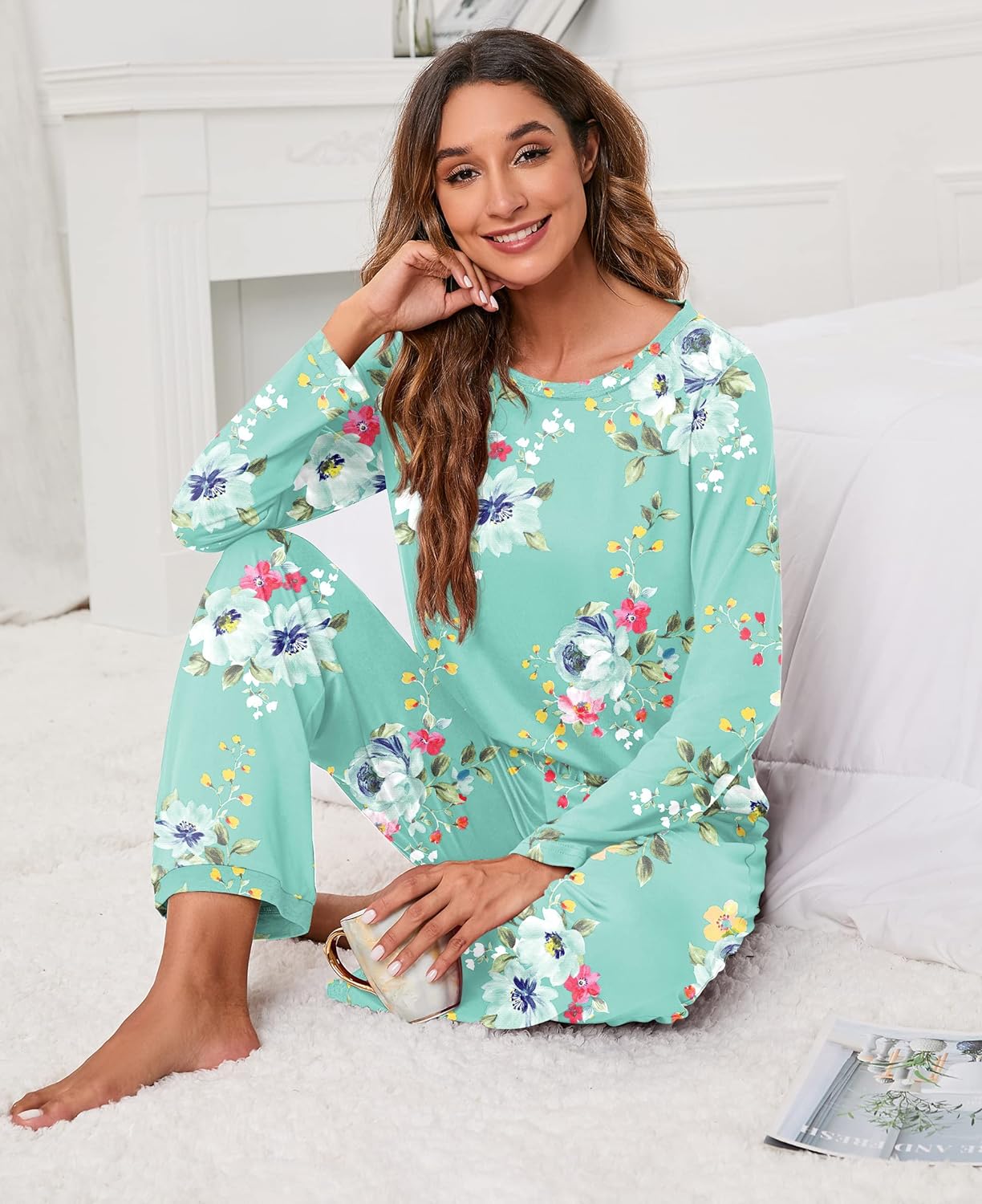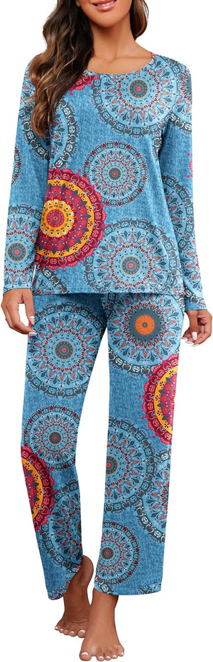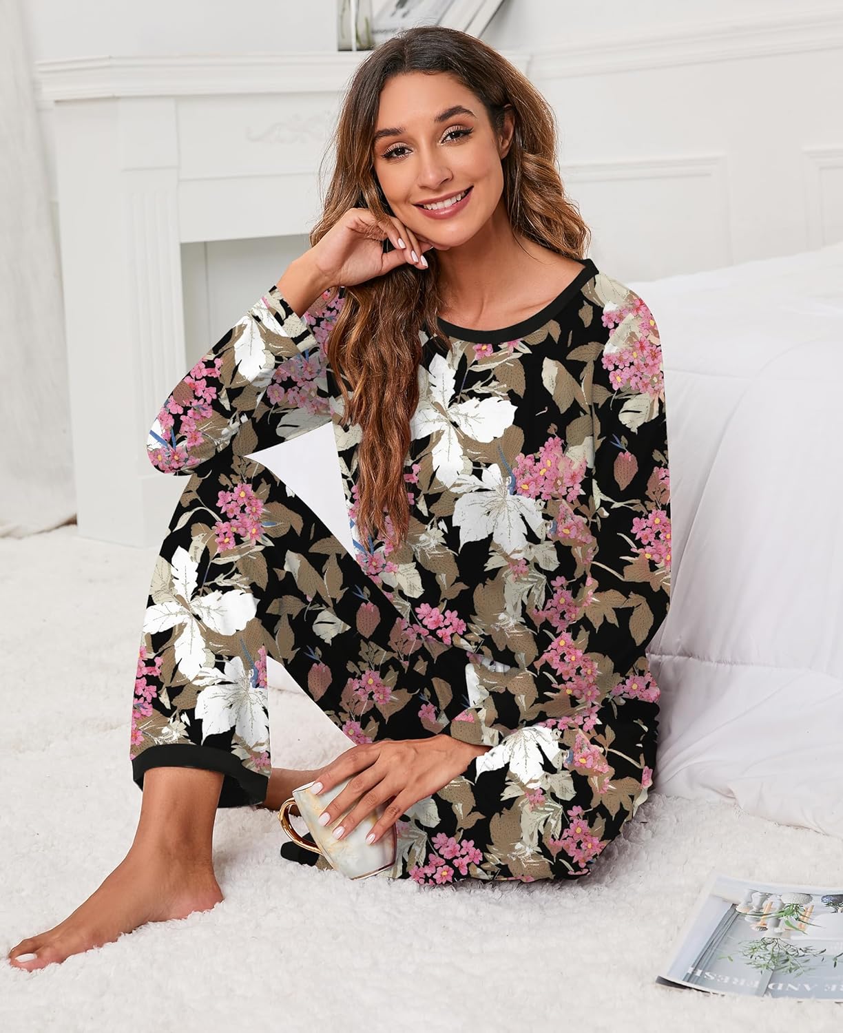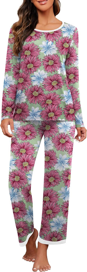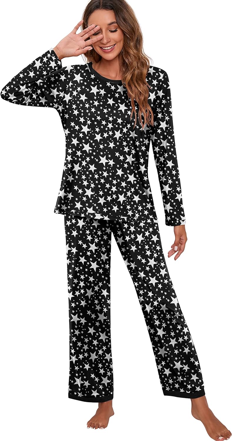 PrinStory 2022 Women's Pajama Set Long Sleeve Sleepwear Ladies Soft Pjs Lounge Set