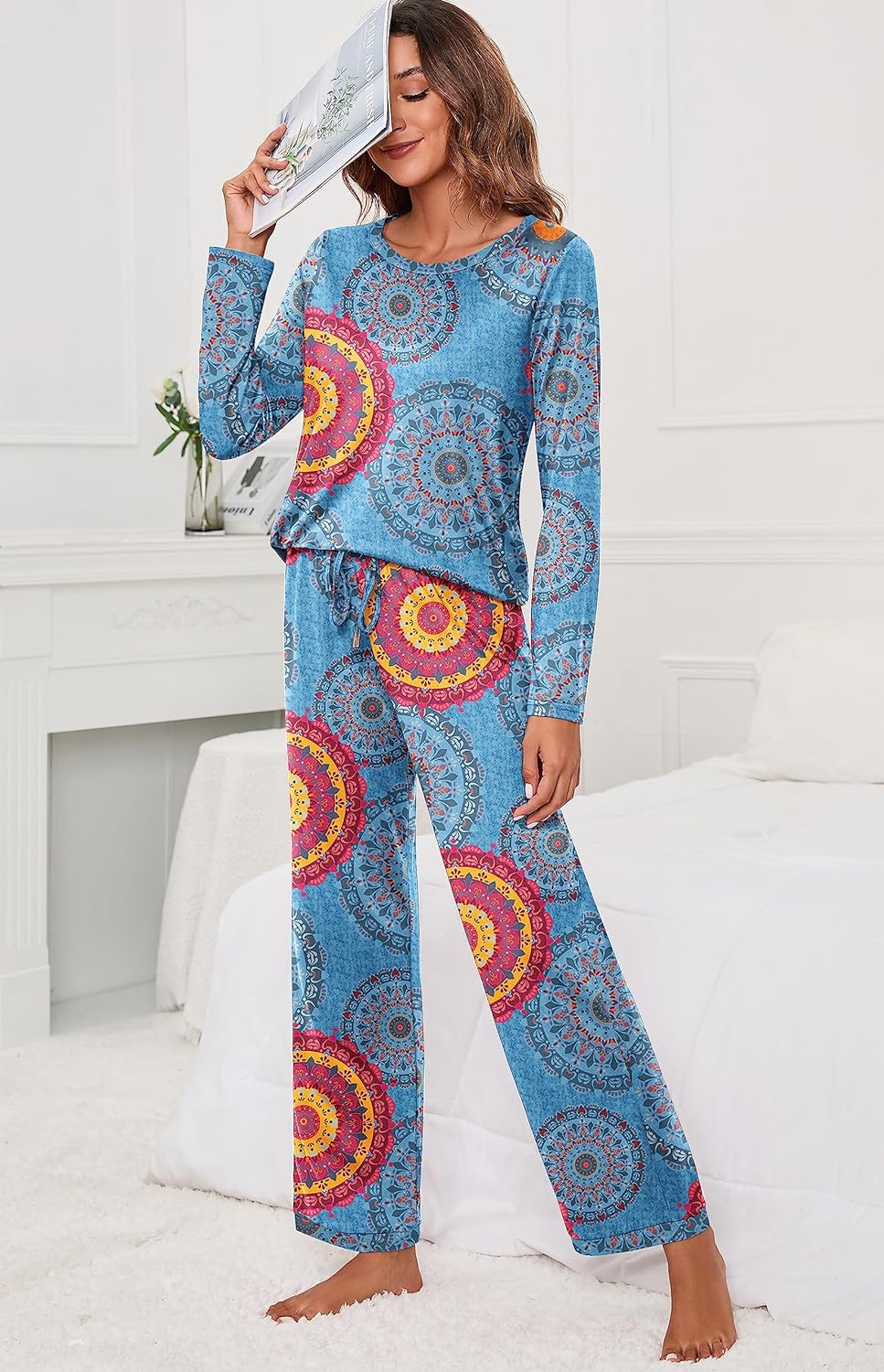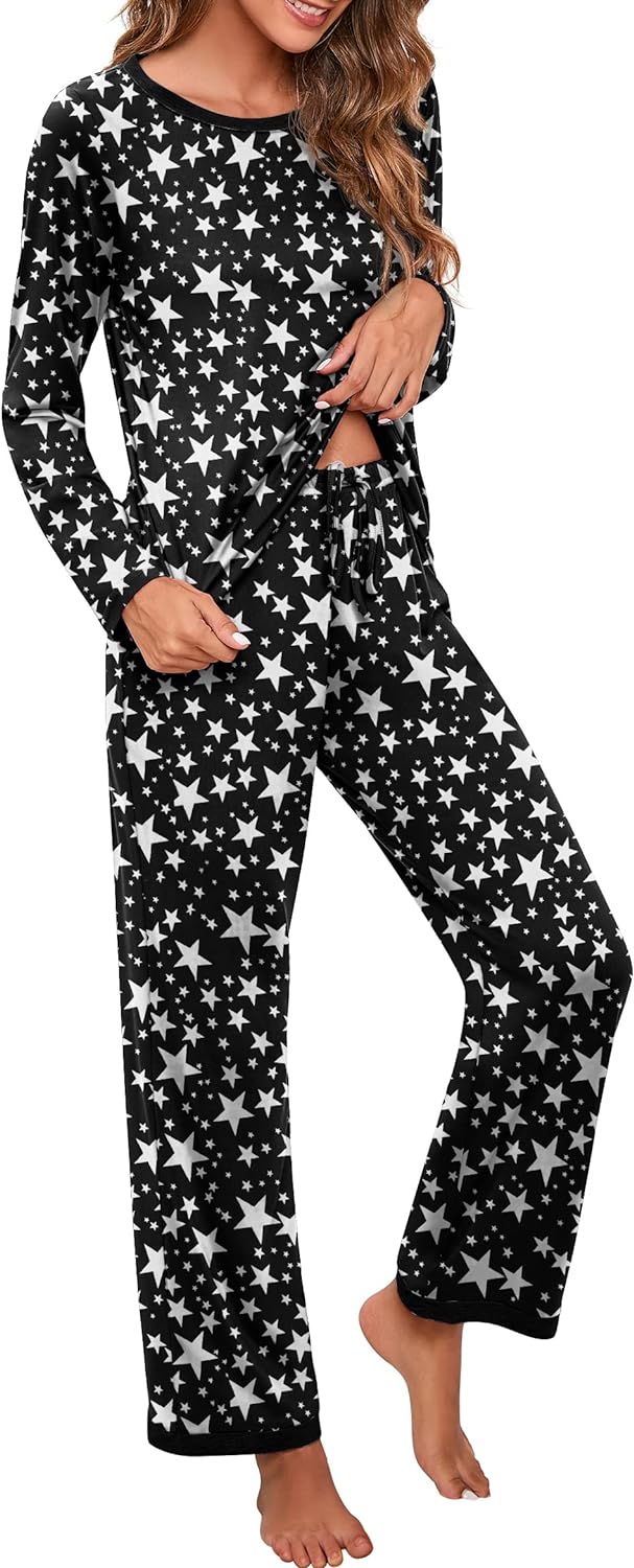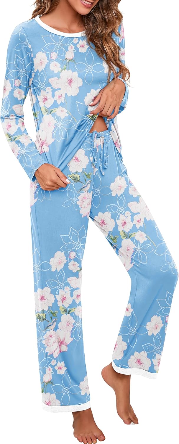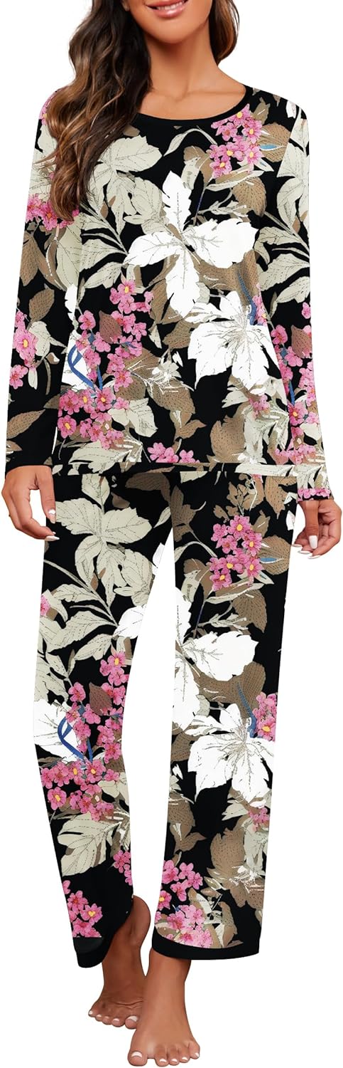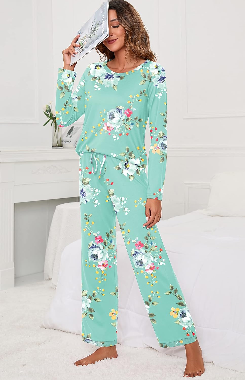 PrinStory 2022 Women's Pajama Set Long Sleeve Sleepwear Ladies Soft Pjs Lounge Set