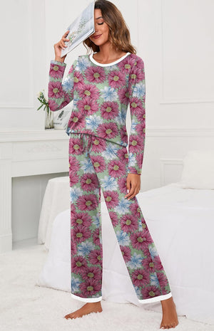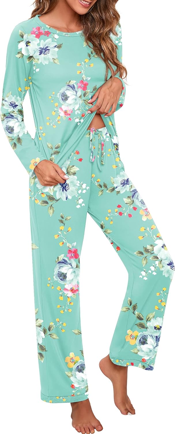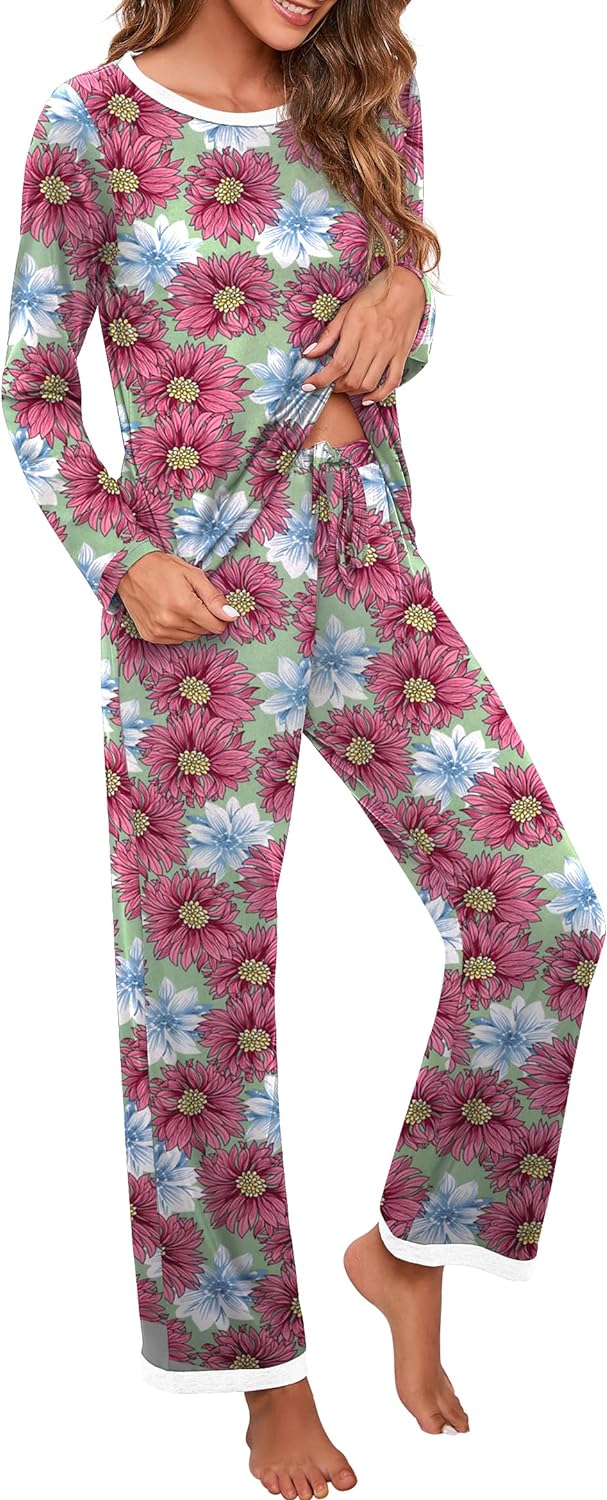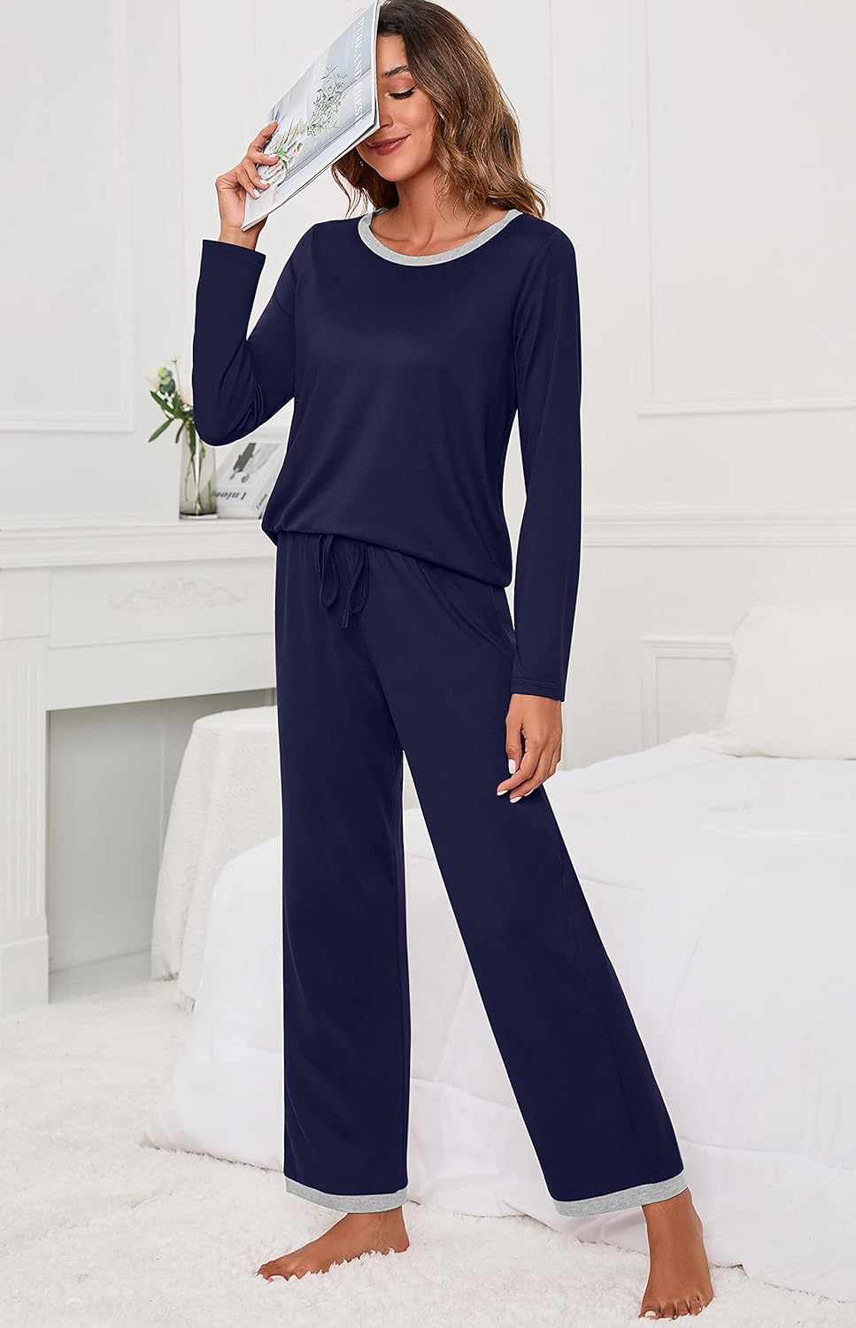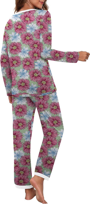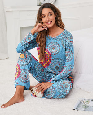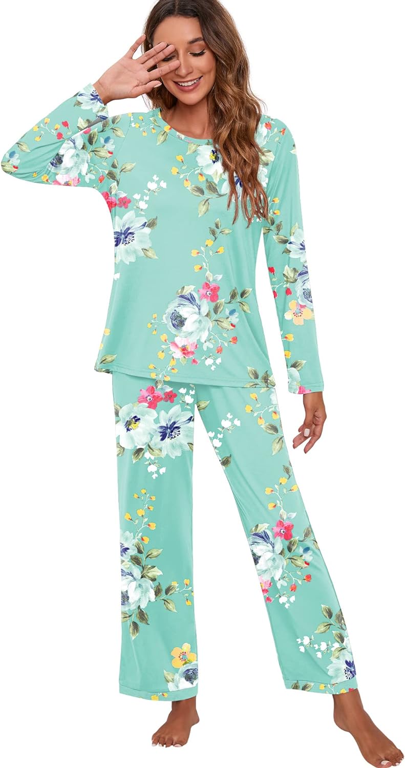 PrinStory 2022 Women's Pajama Set Long Sleeve Sleepwear Ladies Soft Pjs Lounge Set