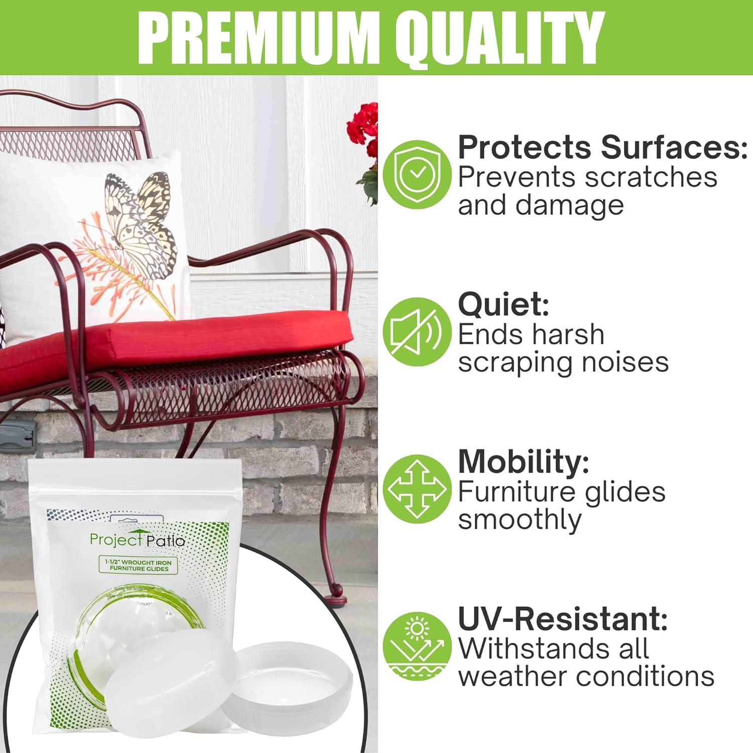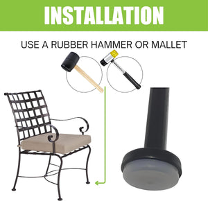 Project Patio 1.5 Inch Wrought Iron Patio Furniture Feet Caps and Outdoor Table and Chair Leg Floor Protector Replacement Insert Glide Parts - 4 Pack