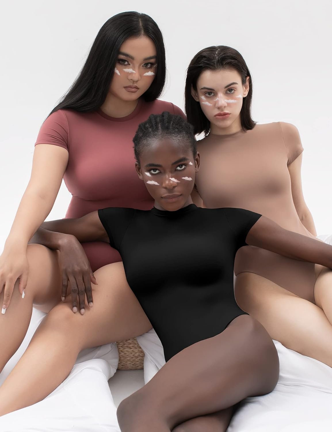 PUMIEY Women's Crew Neck Short Sleeve Bodysuit Smoke Cloud Collection T-shirt Tops