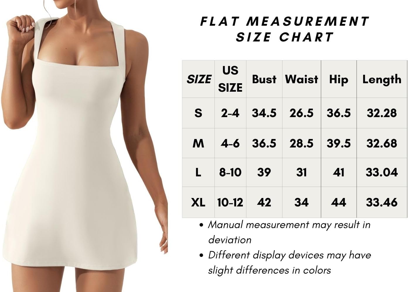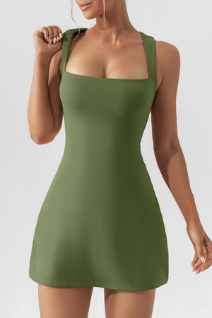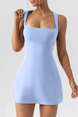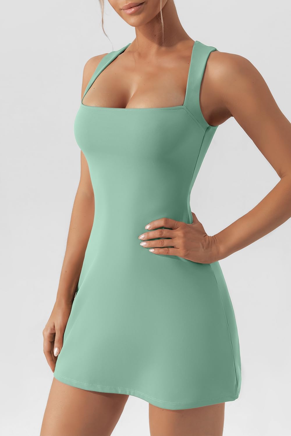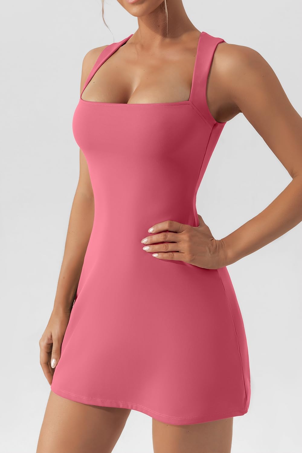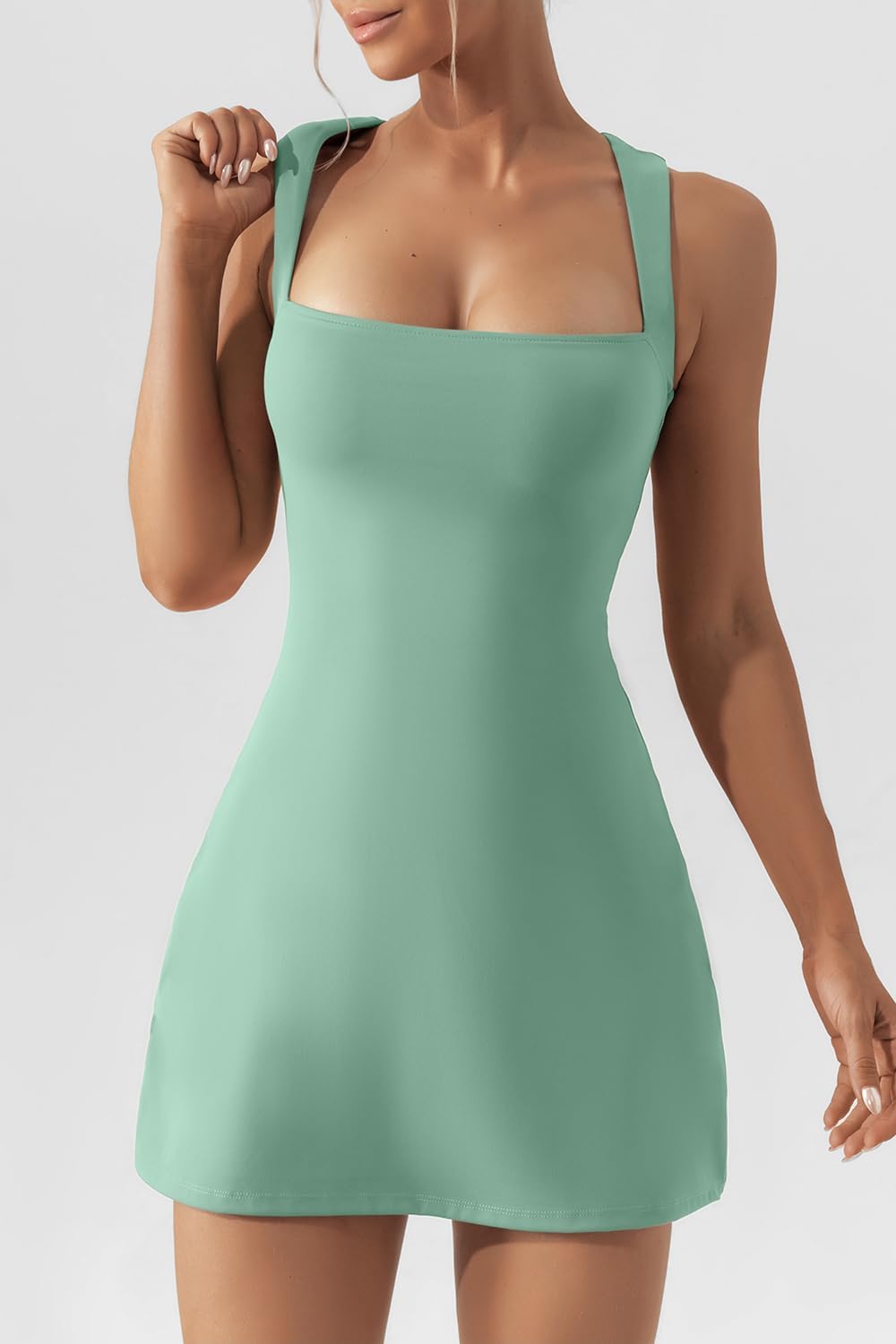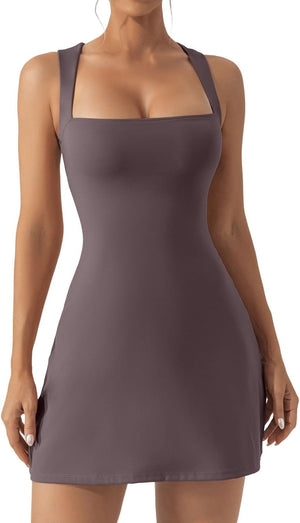 QINSEN - Women's Sleeveless Square Neck Short Dress Stretchy A-Line Dress