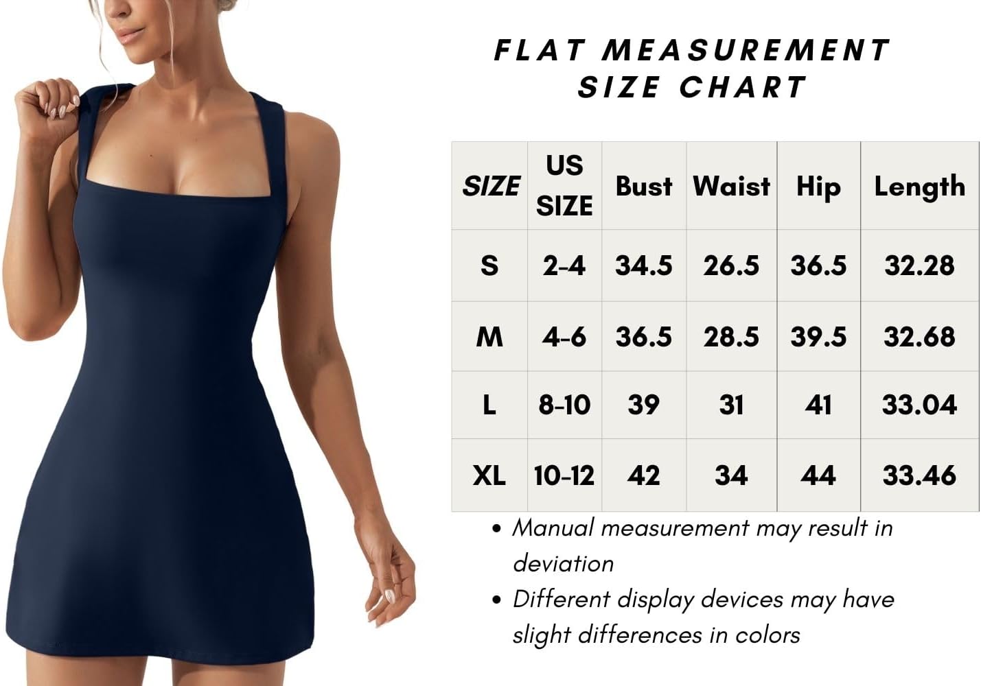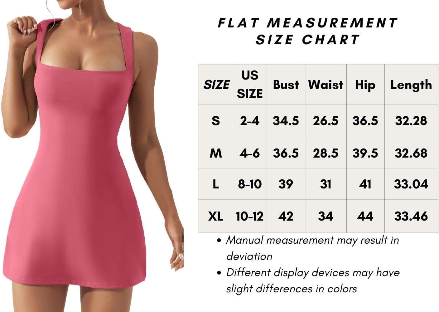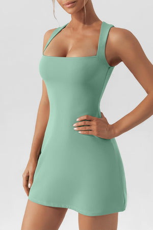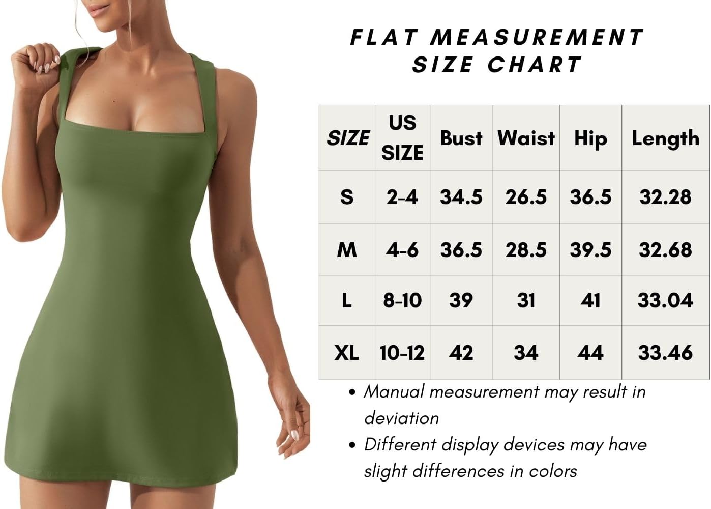 QINSEN - Women's Sleeveless Square Neck Short Dress Stretchy A-Line Dress