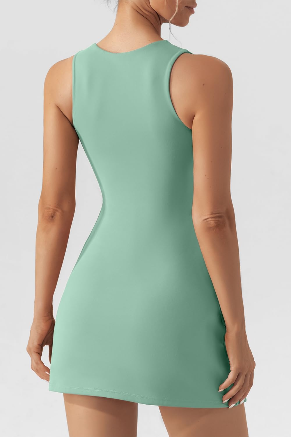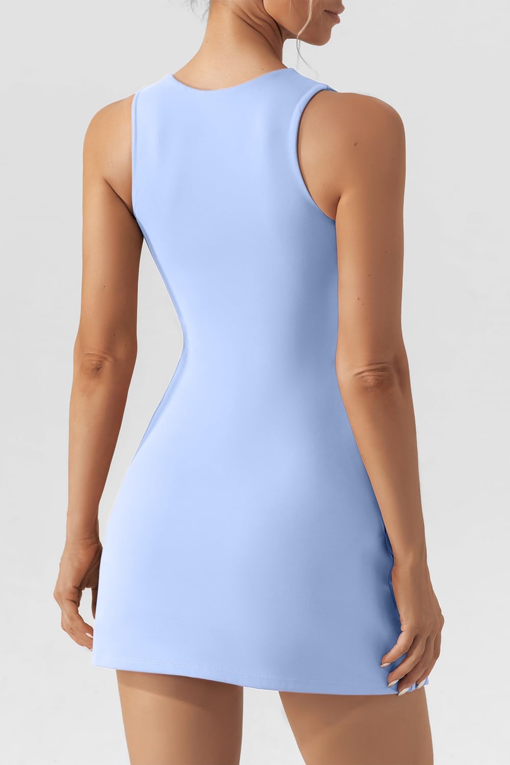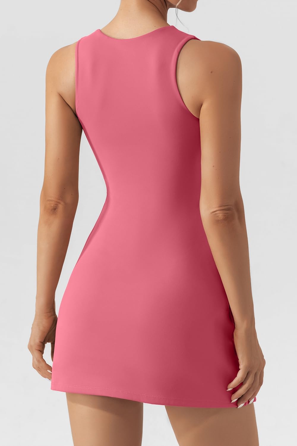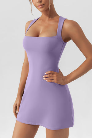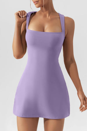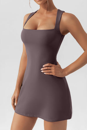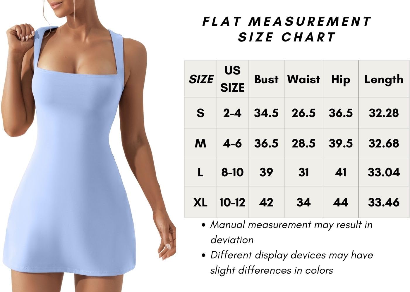 QINSEN - Women's Sleeveless Square Neck Short Dress Stretchy A-Line Dress