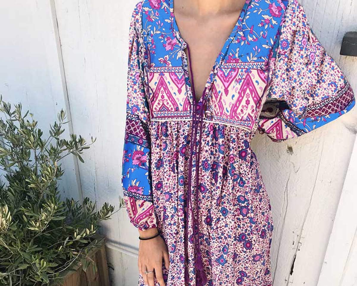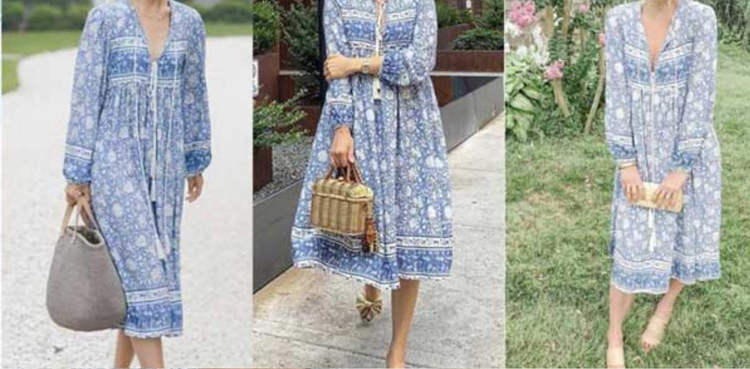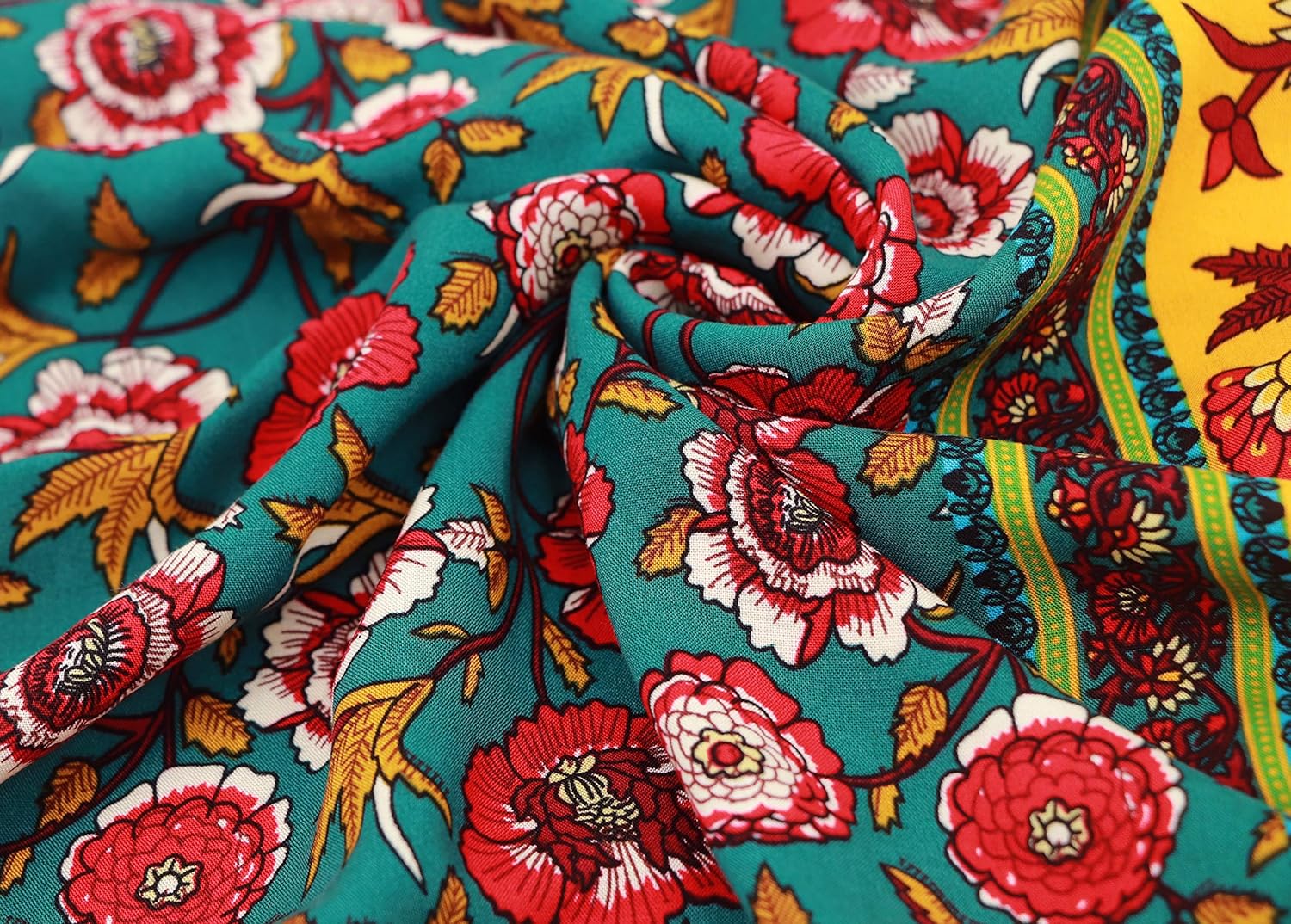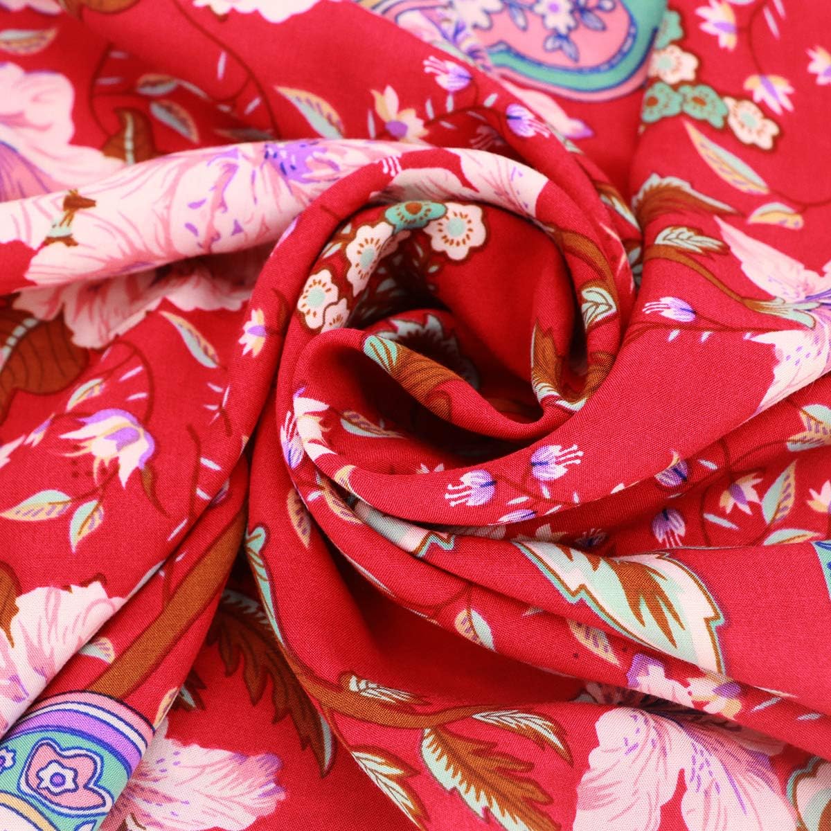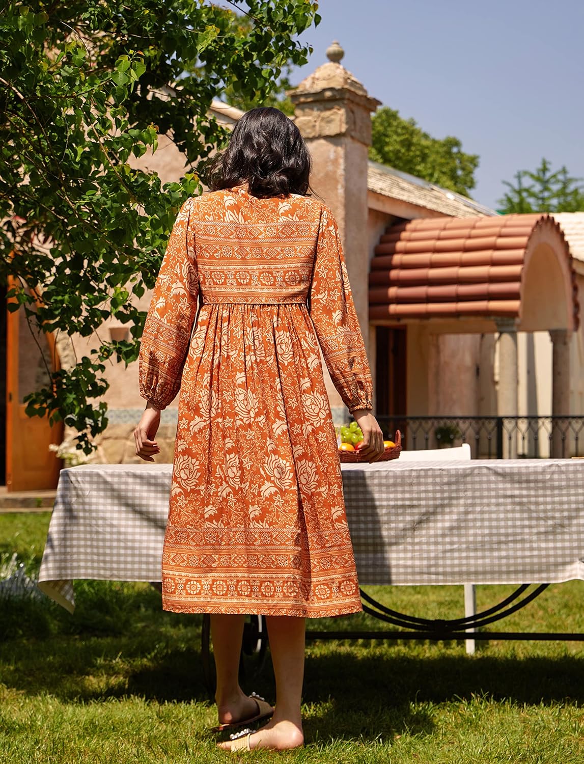 R.Vivimos Women's Long Sleeve Floral Print Retro V Neck Tassel Bohemian Midi Dresses