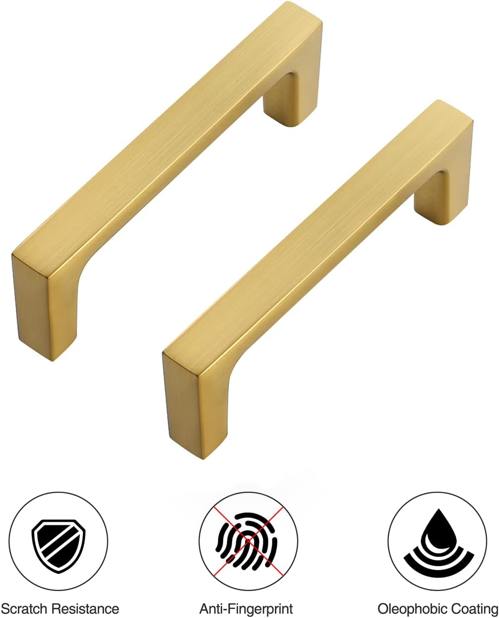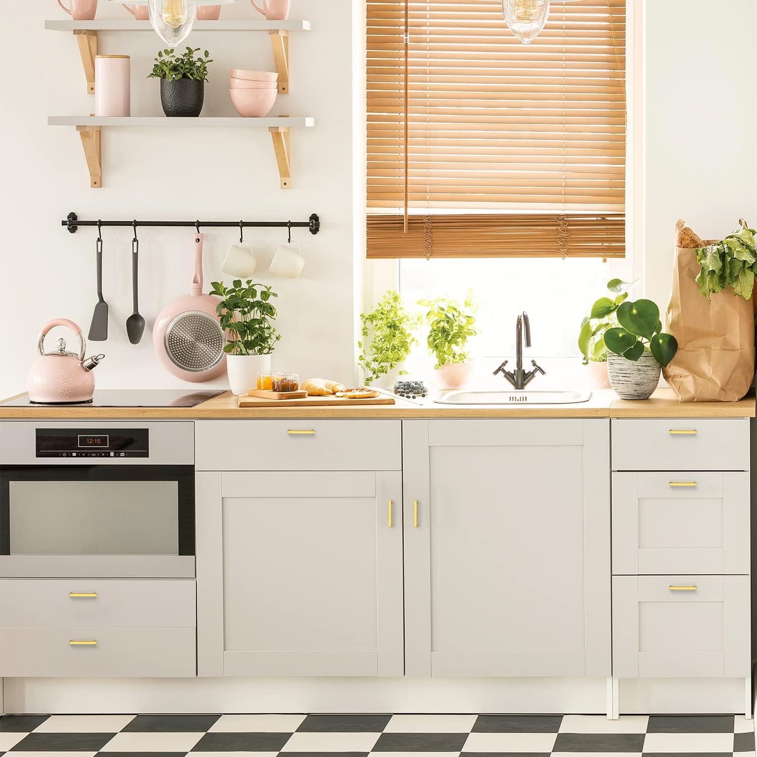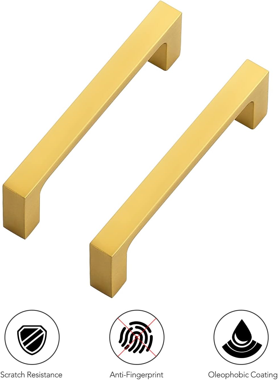 - Simple look: The Brass cabinet handles have a wide appeal across a range of kitchen cabinet doors and drawers. The Brushed Brass handles have a clean and timeless look that works with farmhouse, vintage, traditional and transitional styles.