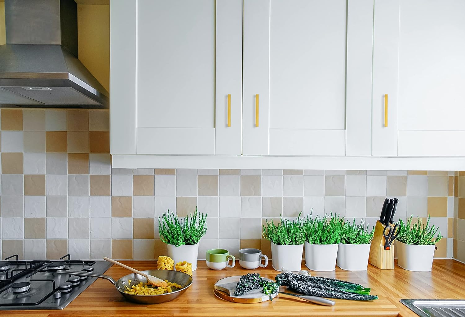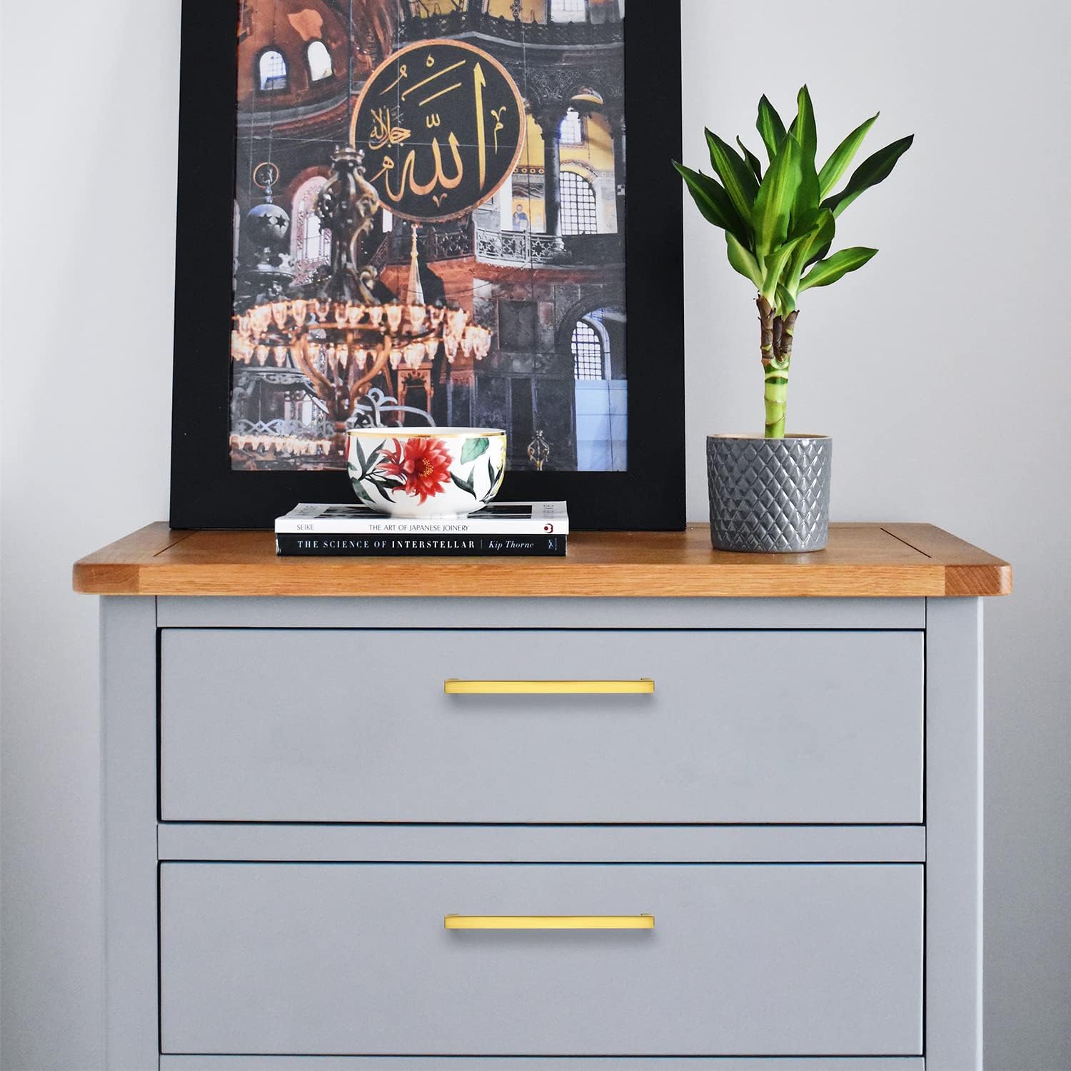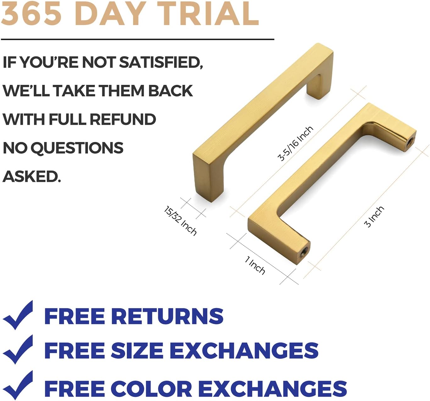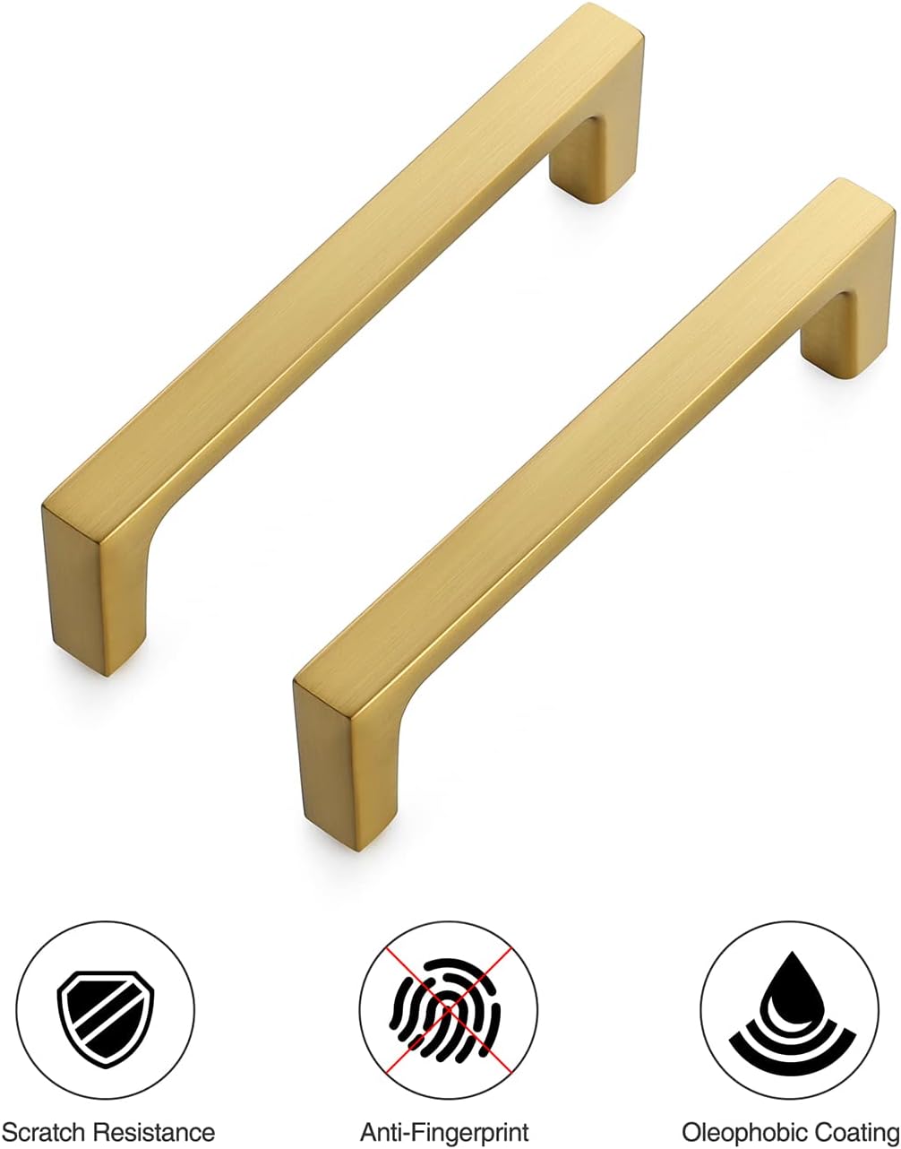 - Simple look: The Brass cabinet handles have a wide appeal across a range of kitchen cabinet doors and drawers. The Brushed Brass handles have a clean and timeless look that works with farmhouse, vintage, traditional and transitional styles.