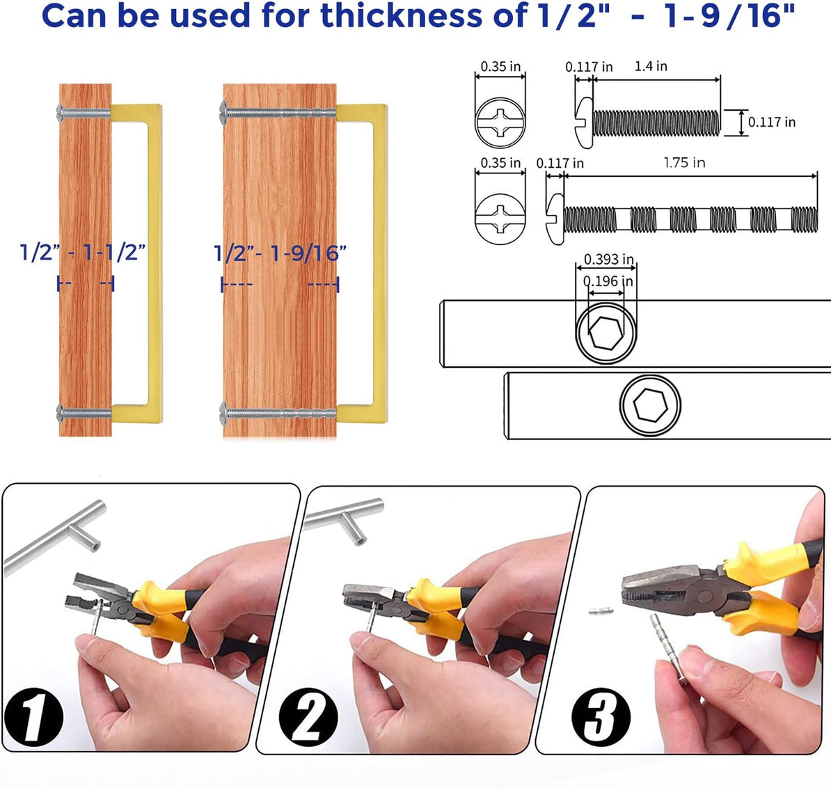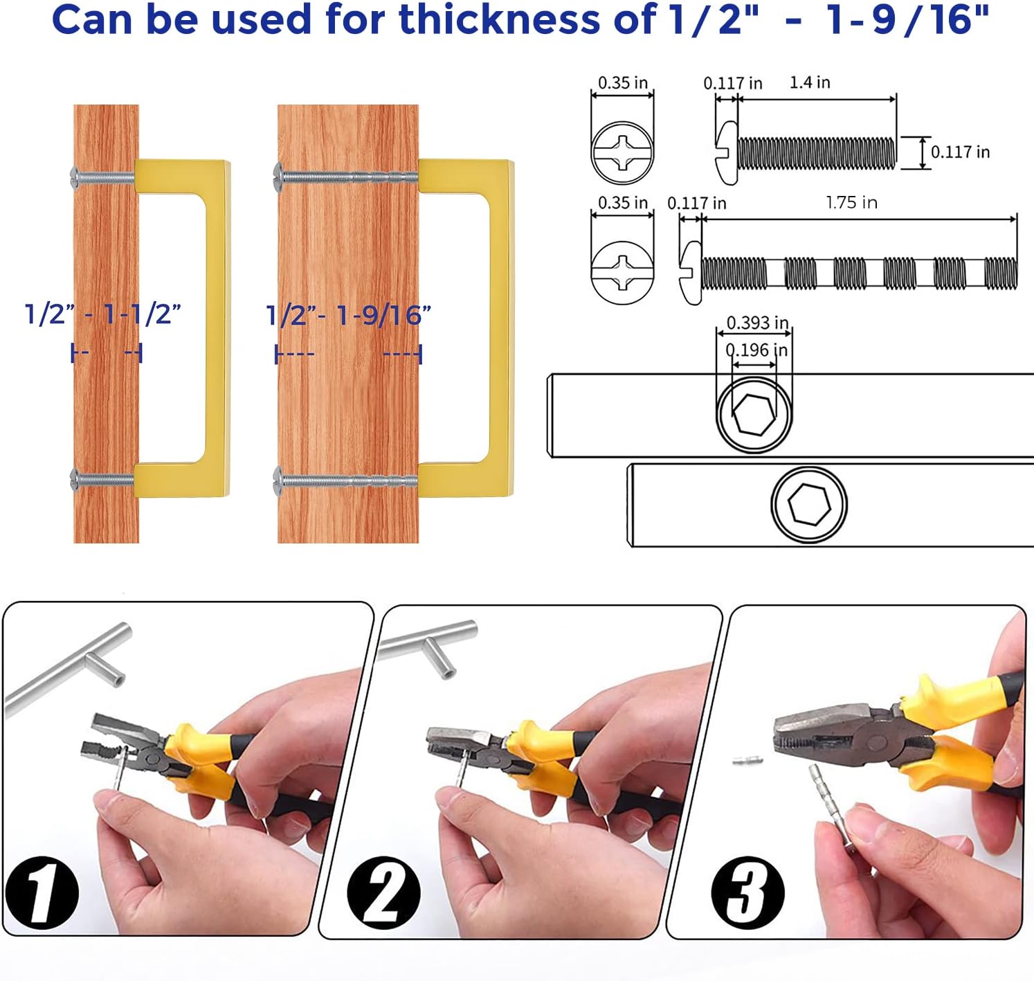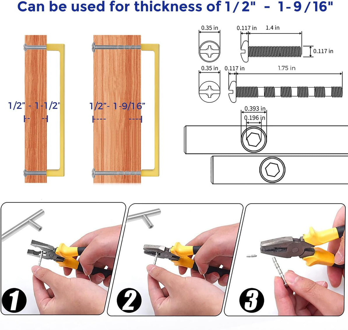 - If you're replacing your handle, measure and ensure the center to center hole spacing of the current handle is 3 inches(76mm). Installing new cabinet handles, drill two holes with center to center spacing of 3 inches(76mm).