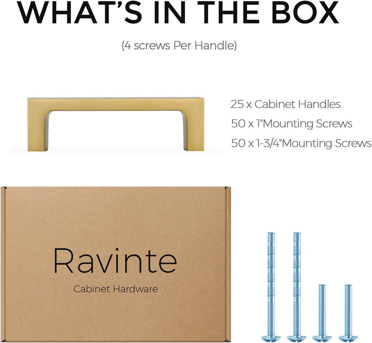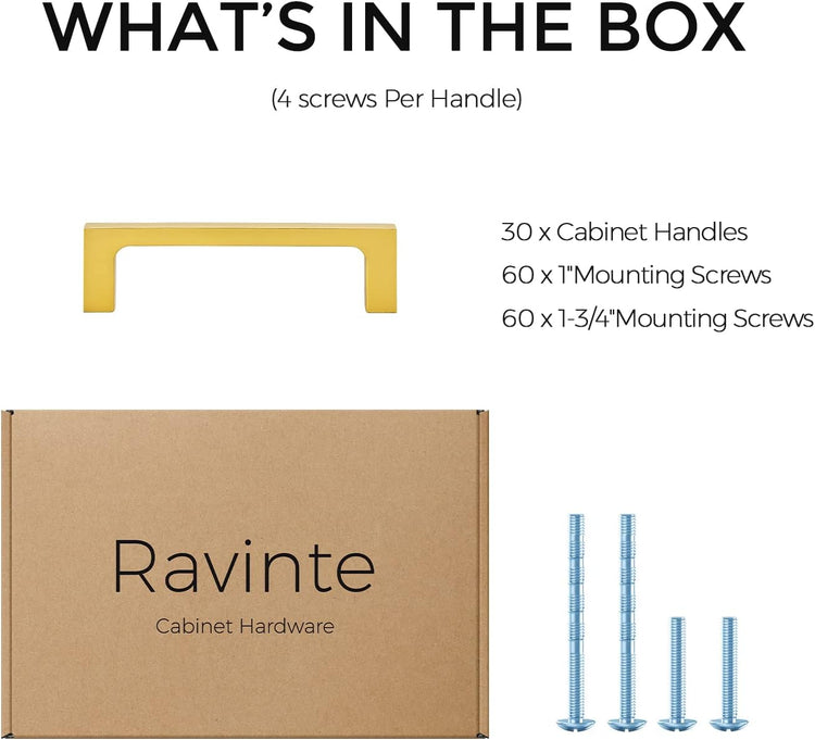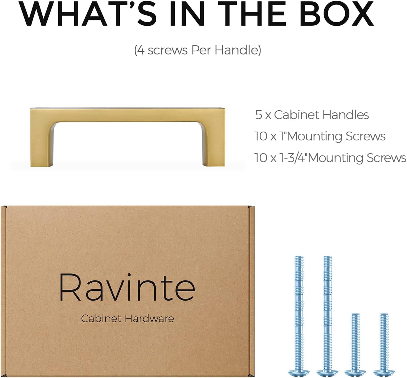Ravinte 30 Pack Solid 3 Inch Kitchen Square Cabinet Handles Brushed Brass Cabinet Pulls Drawer Pulls Kitchen Cabinet Hardware Kitchen Handles