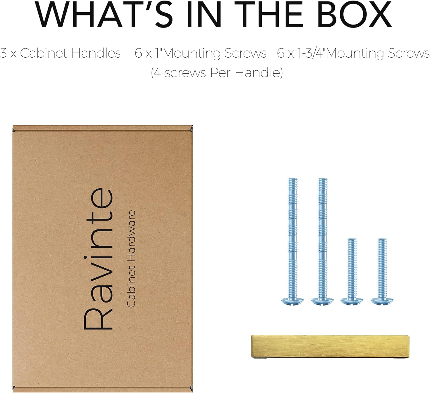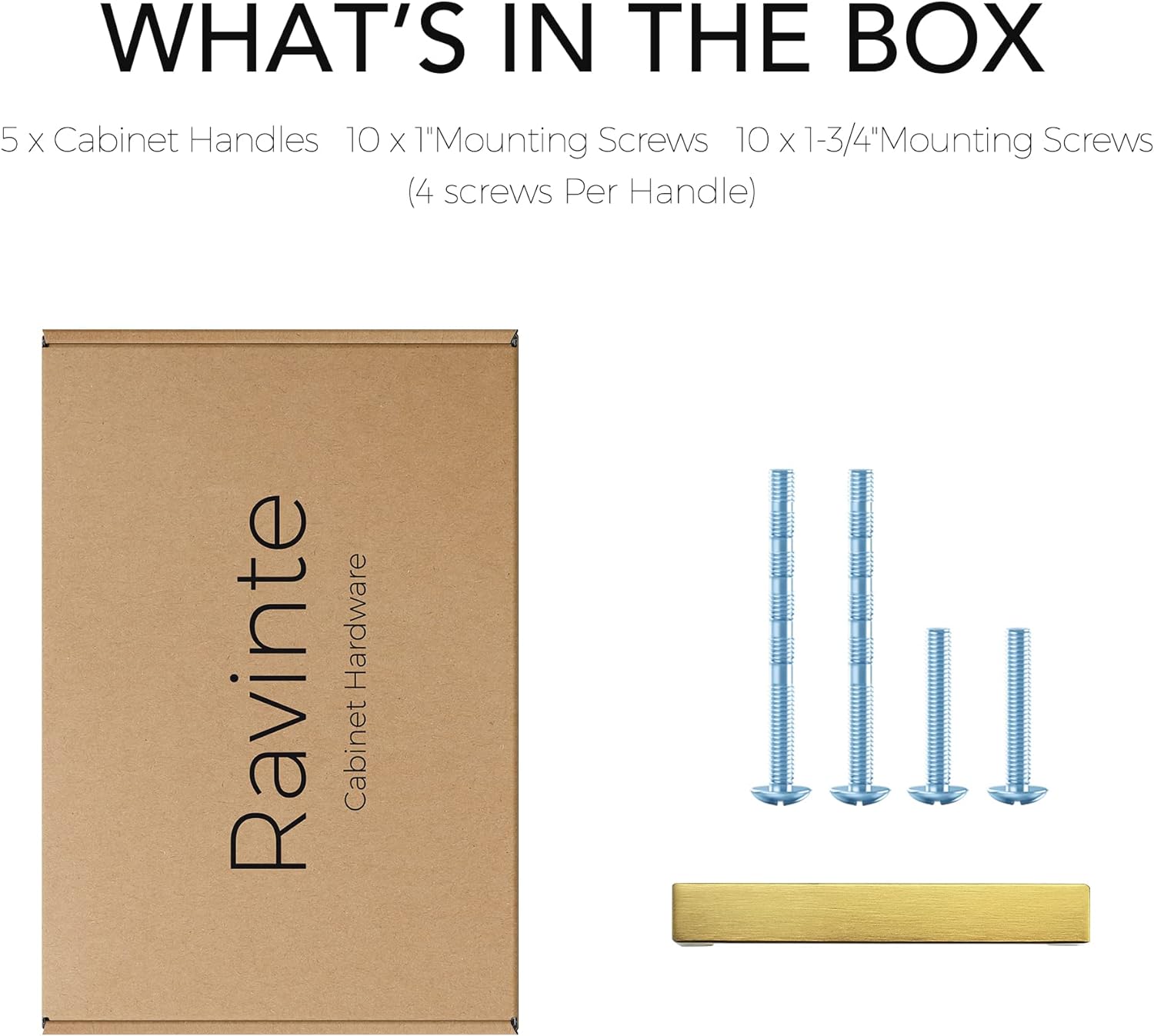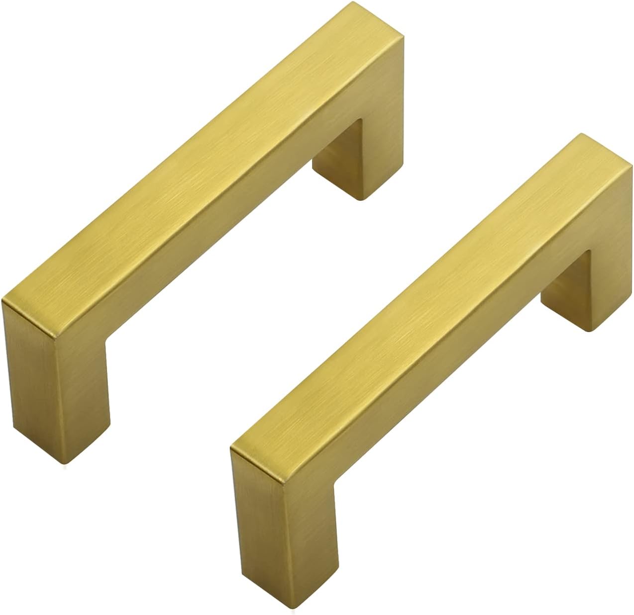 Ravinte 5 Pack 3 Inch Kitchen Square Cabinet Handles Cabinet Pulls Brushed Brass Drawer Pulls Kitchen Cabinet Hardware Kitchen Handles for Cabinets Cupboard Handles Drawer Handles