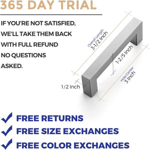 - Size of cabinet hardware: Overall Length: 3-1/2 inch; Width: 1/2 inch;Thickness:1/2 inch;Projection: 1-2/5 inch; Screw-hole center: 3 inch.