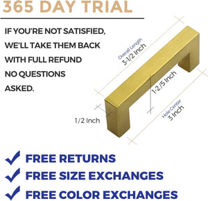 - Simple look: The Brass cabinet handles have a wide appeal across a range of kitchen cabinet doors and drawers. The Brushed Brass handles have a clean and timeless look that works with farmhouse, vintage, traditional and transitional styles.