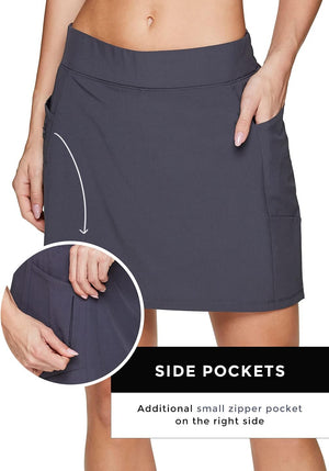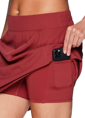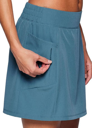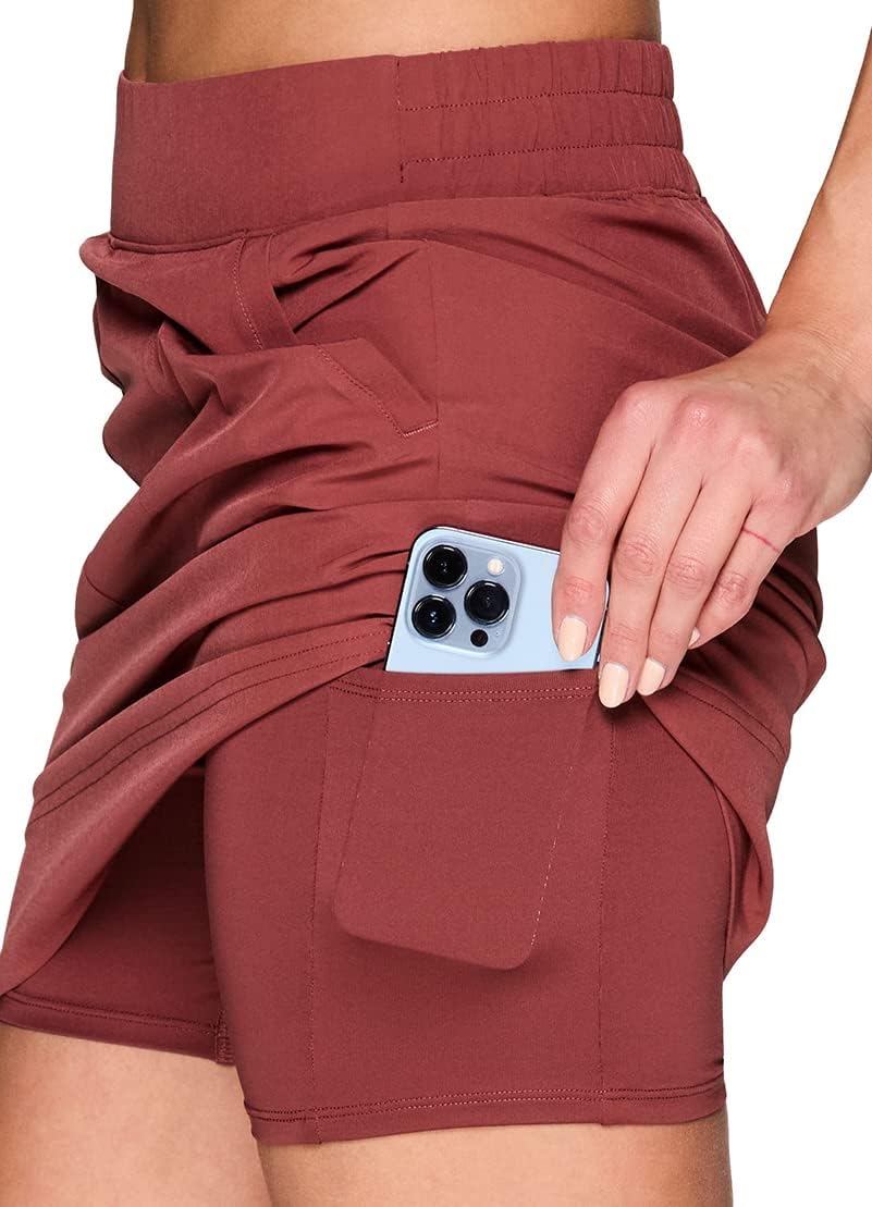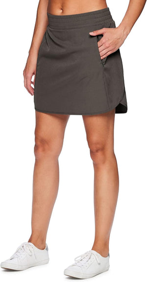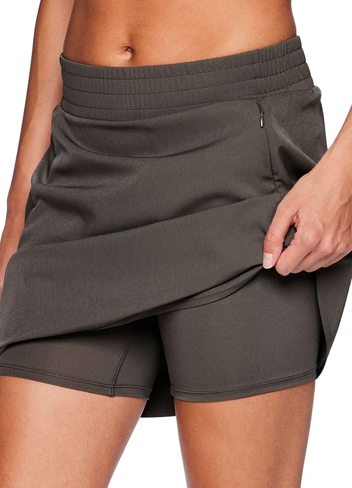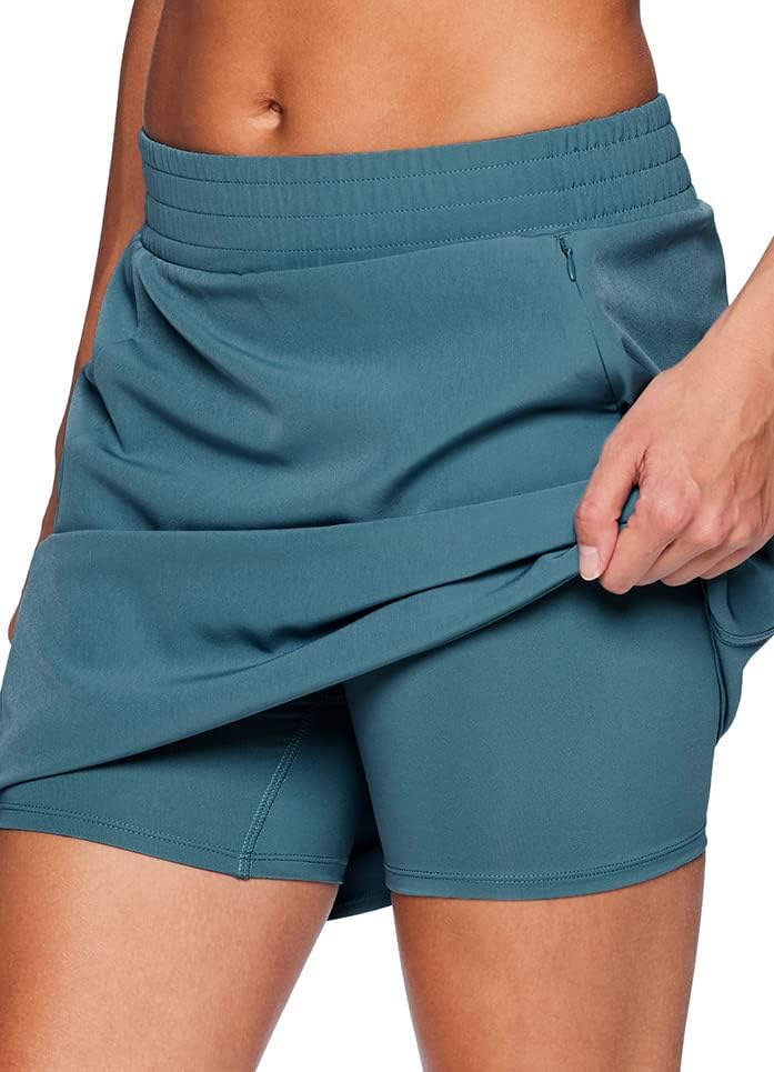 Hop on a bike or hit the tennis courts in the RBX Women's Golf/Tennis Everyday Casual Athletic Skort with Biker Shorts.Ultra soft outer skirt adds a feminine touch to conceal compression, no-show, moisture-wicking, bike shorts underneath. Made with stretch fabric to keep you comfortable during all workouts. This effortless style is complete with pockets on each hip along with an elastic waistband for an adjustable fit that can't be beat!