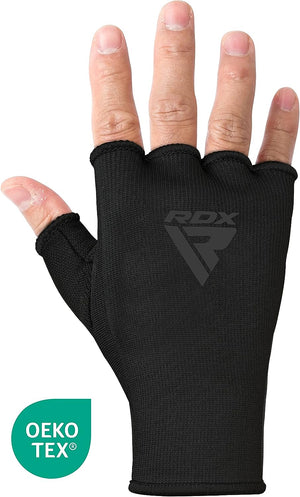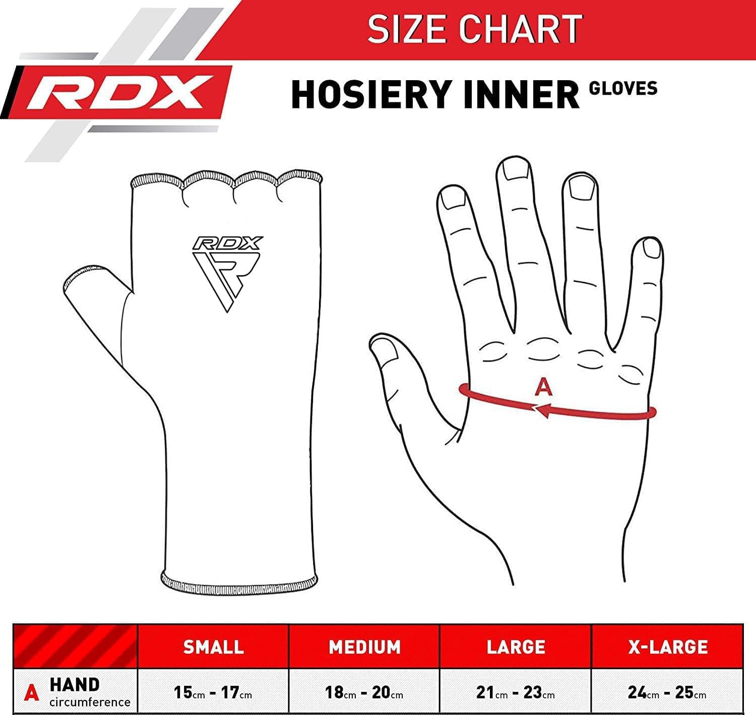 - ✅ ELASTICATED-COMPRESSION SUPPORT – With AYZ-F elasticated fabric, these inner gloves by RDX provide enhanced compression to the hands and wrists during workouts. The compression support also improves the athletes’ control over the equipment and helps them perform better by wicking the sweat and keeping the hands as dry as possible.