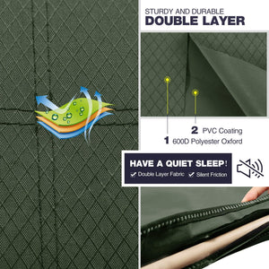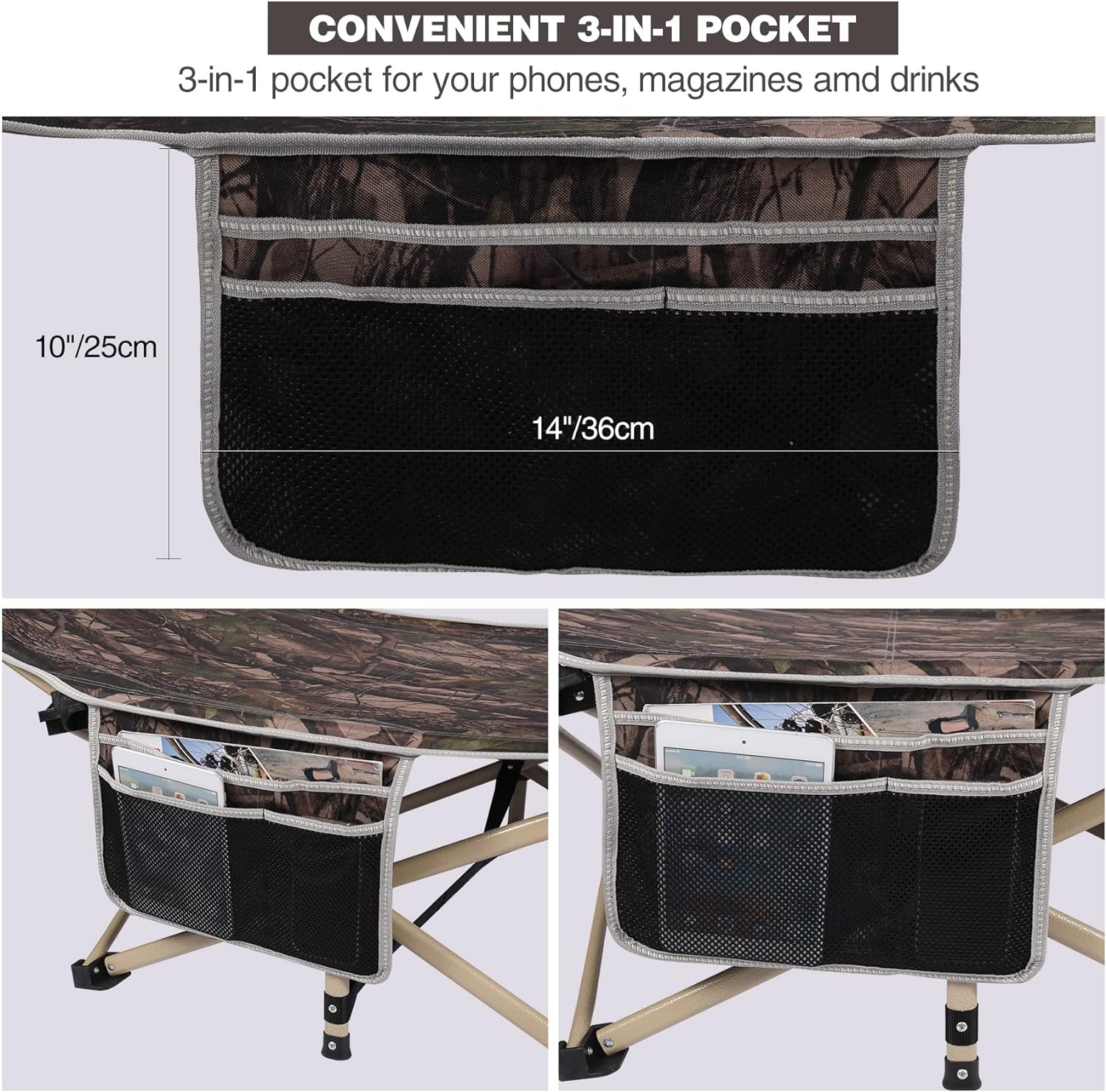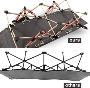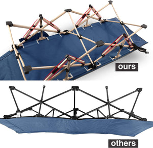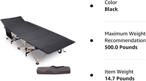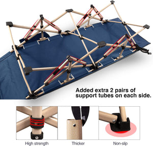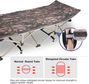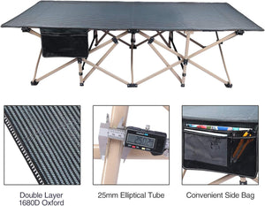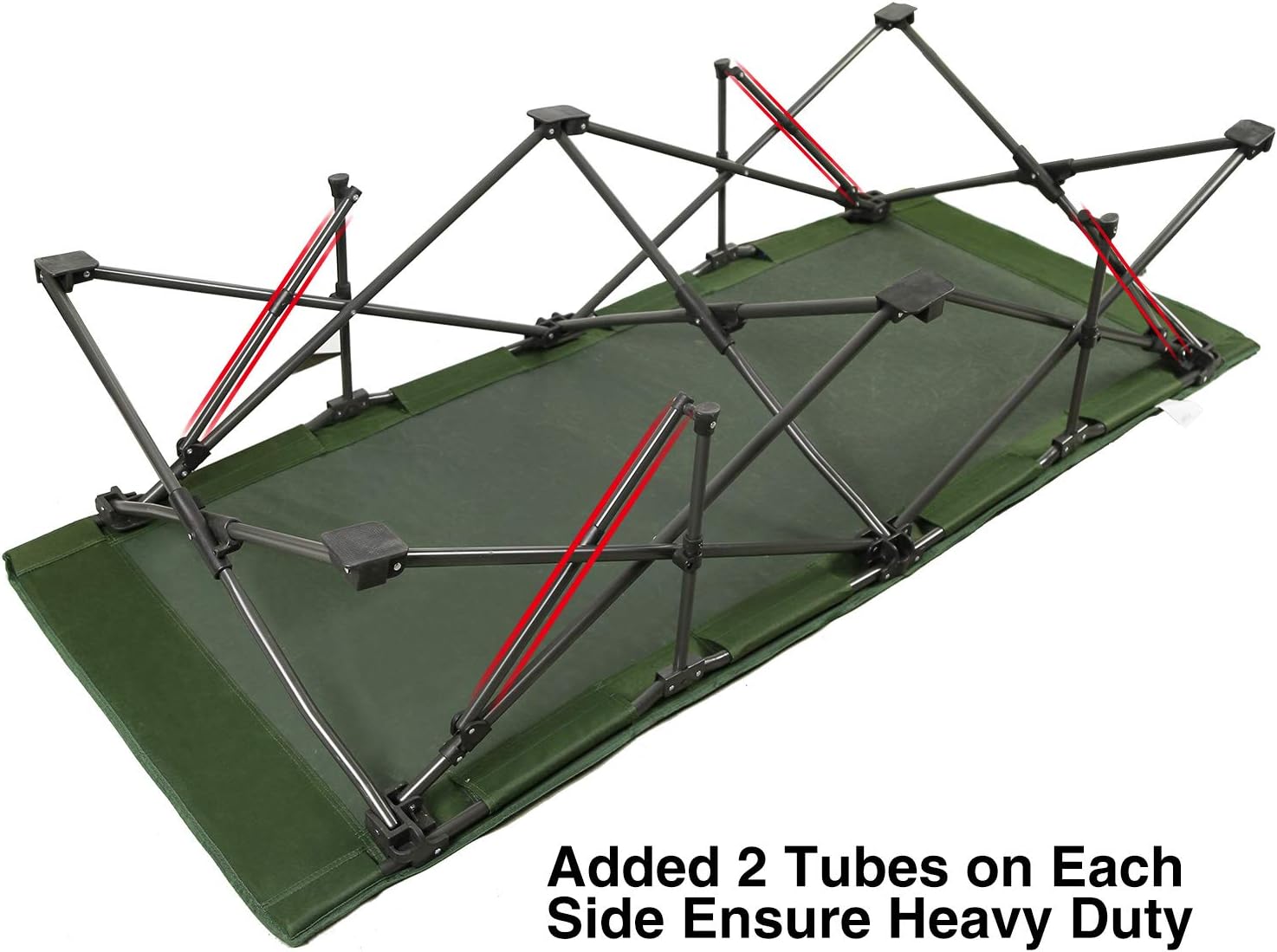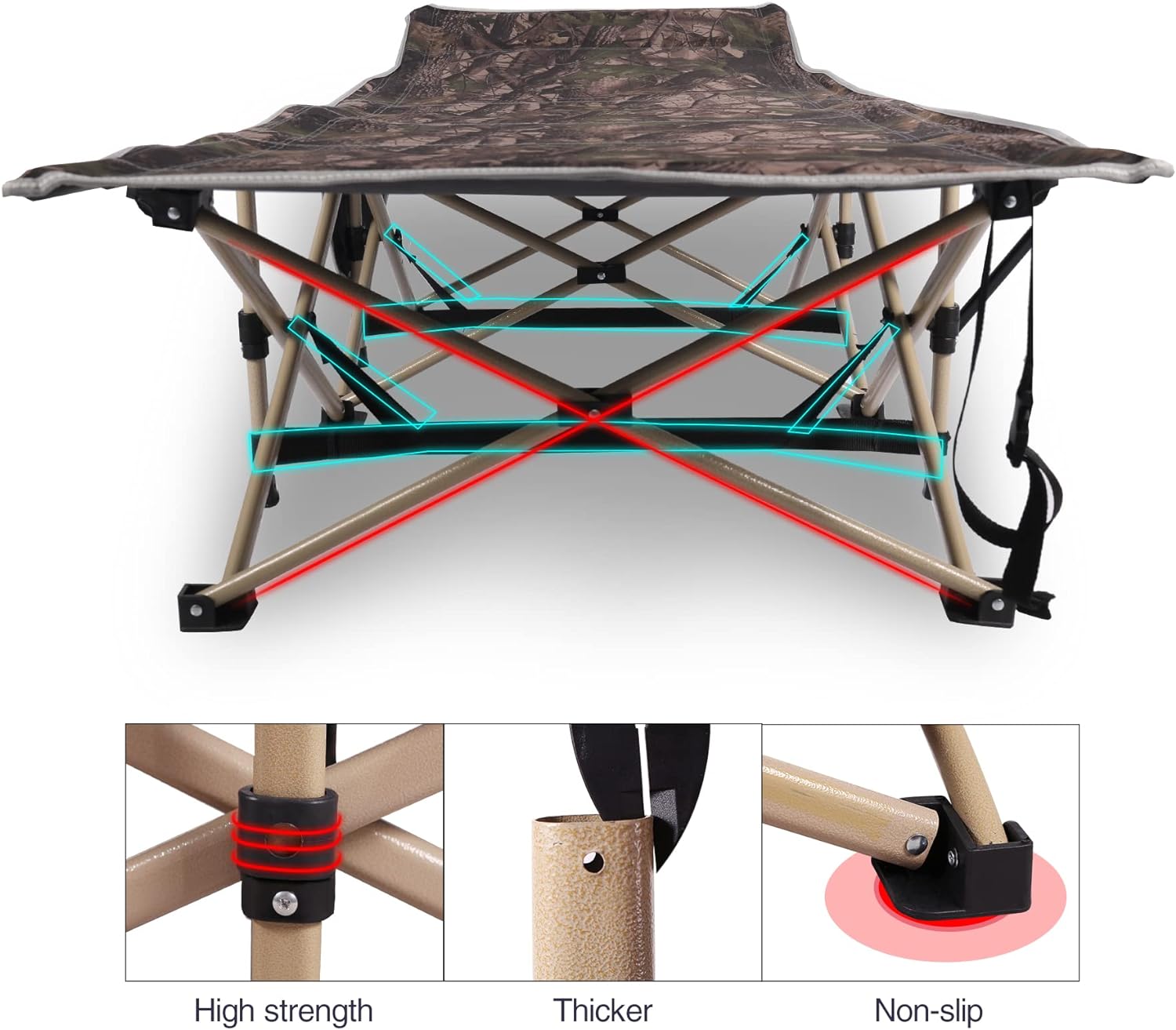 - 【STURDY & HEAVY DUTY】Finished with updated and thicker elliptical shape tubes on the cot legs, adding the camp cot to best stability and carrying capacity. It easily supports up to 500 lbs at most.