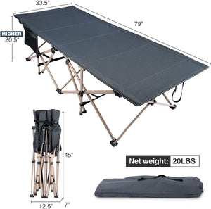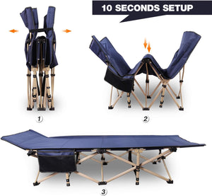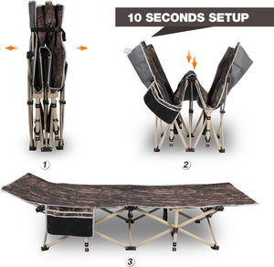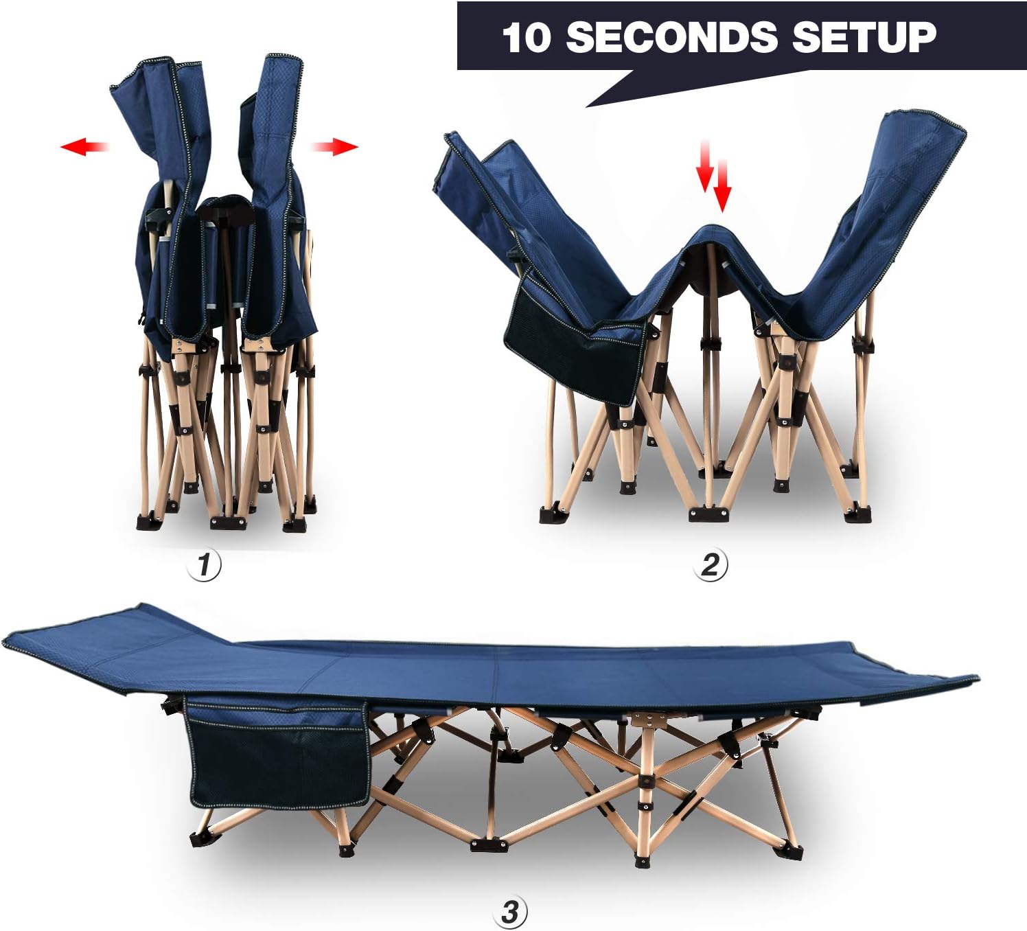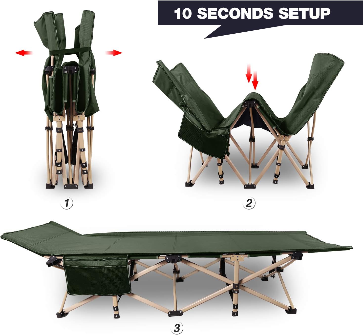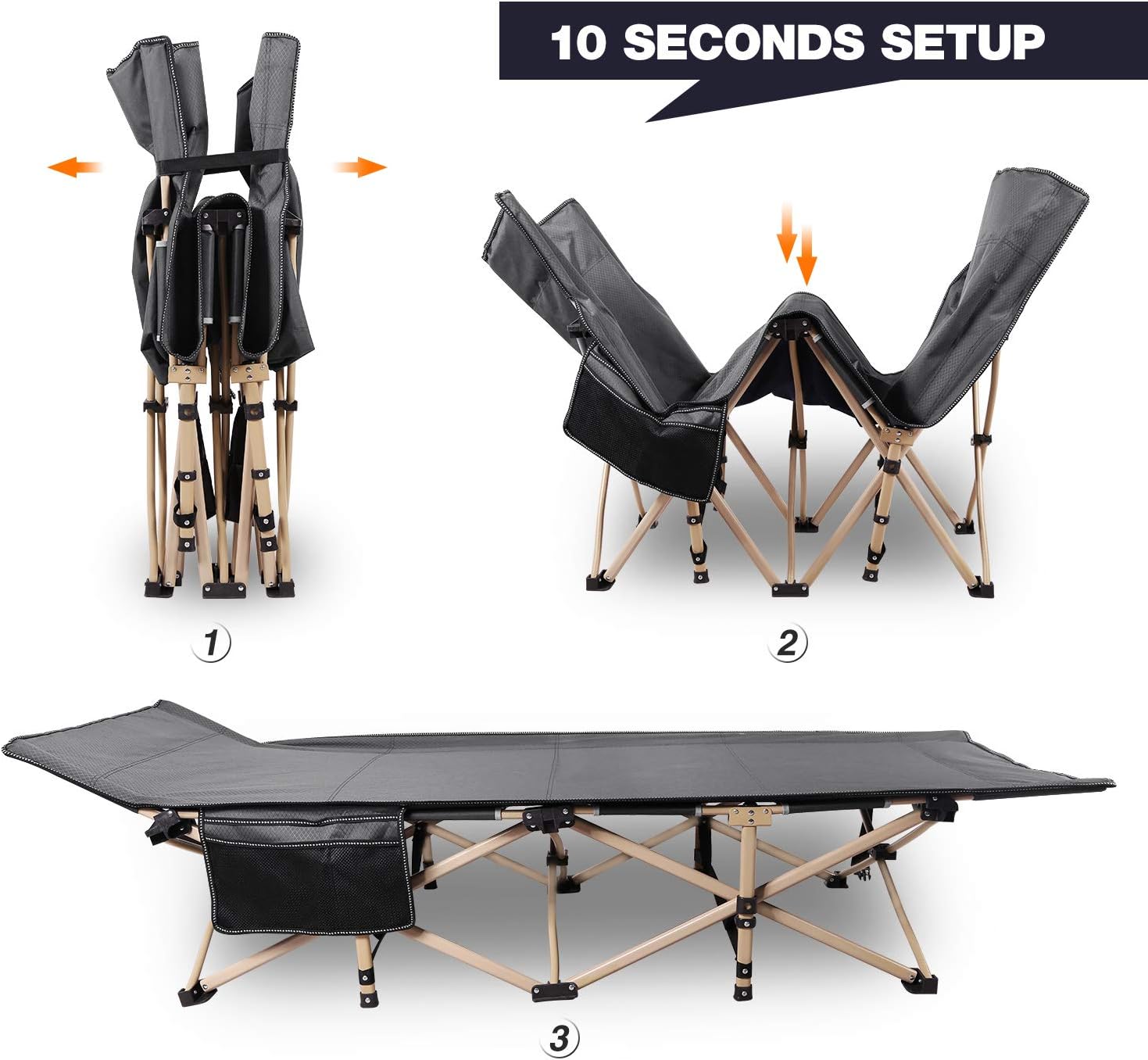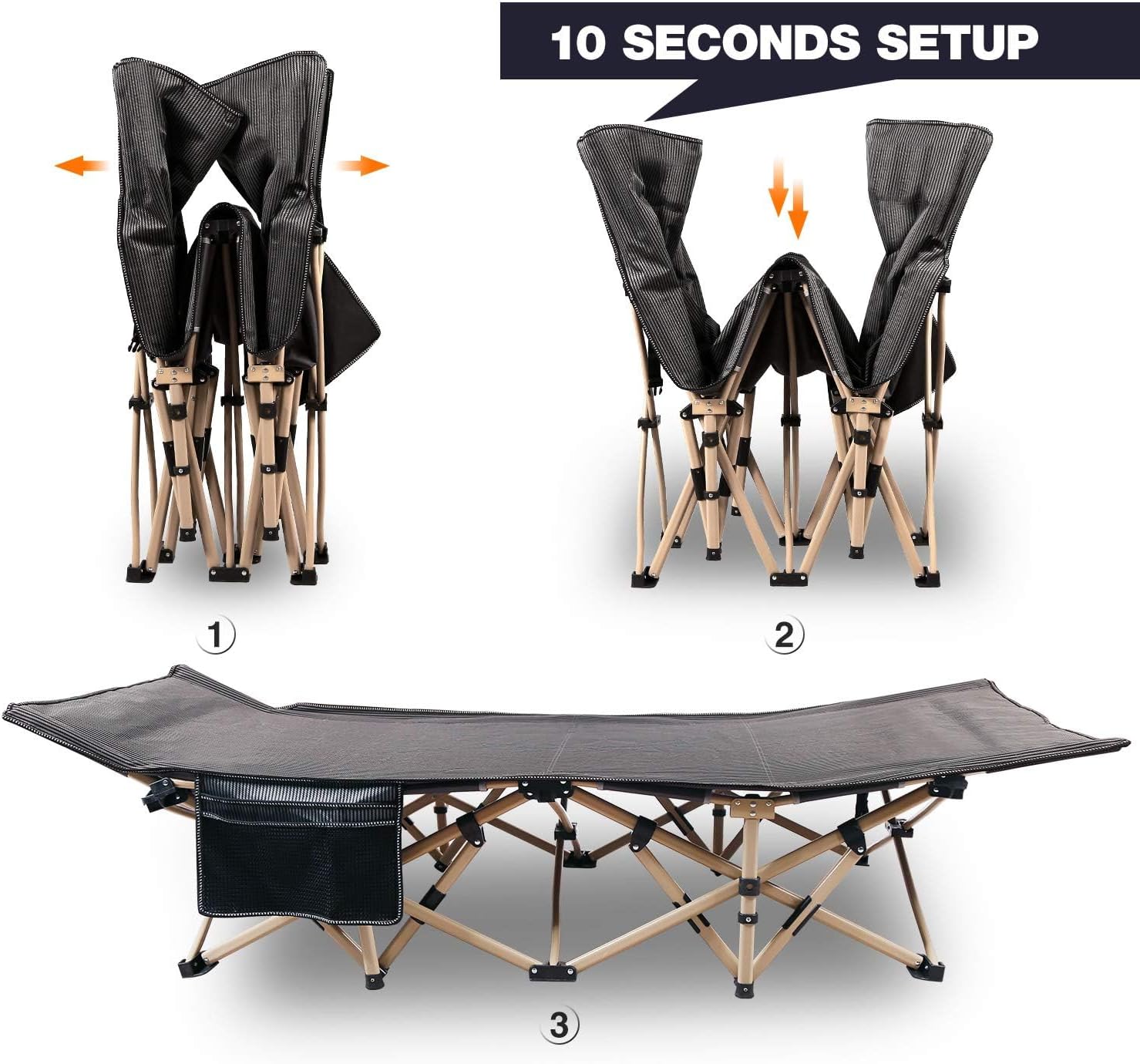 - 【EASY to SET UP and CARRY】No assembly required. The sleeping cot for adults can be easily installed or folded up into an included storage bag within 10 seconds. Convenient for rest or transport.