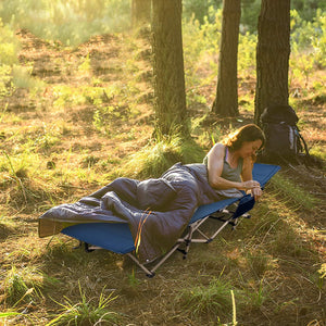 - 【MULTI-USE】 The portable adults cot for camping is available in green with pillow, blue and grey, best for outdoor grass, forest, indoor bedroom, living room and any places you need to sleep.