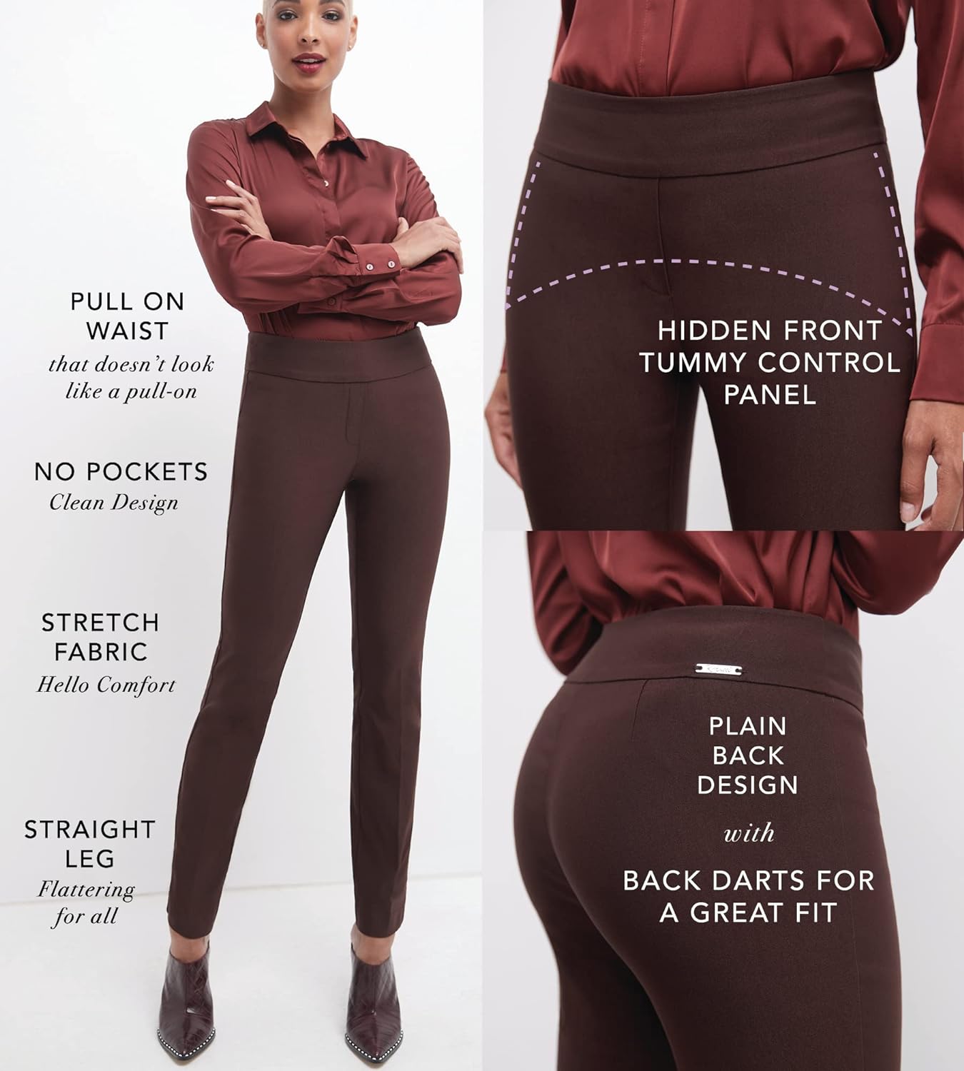 Rekucci Women's Ease Into Comfort Straight Leg Pant with Tummy Control