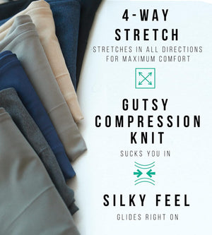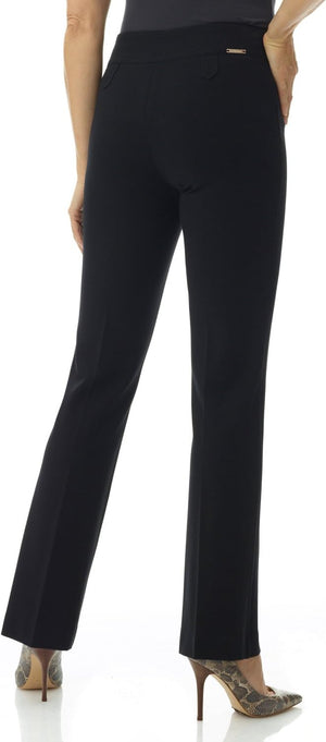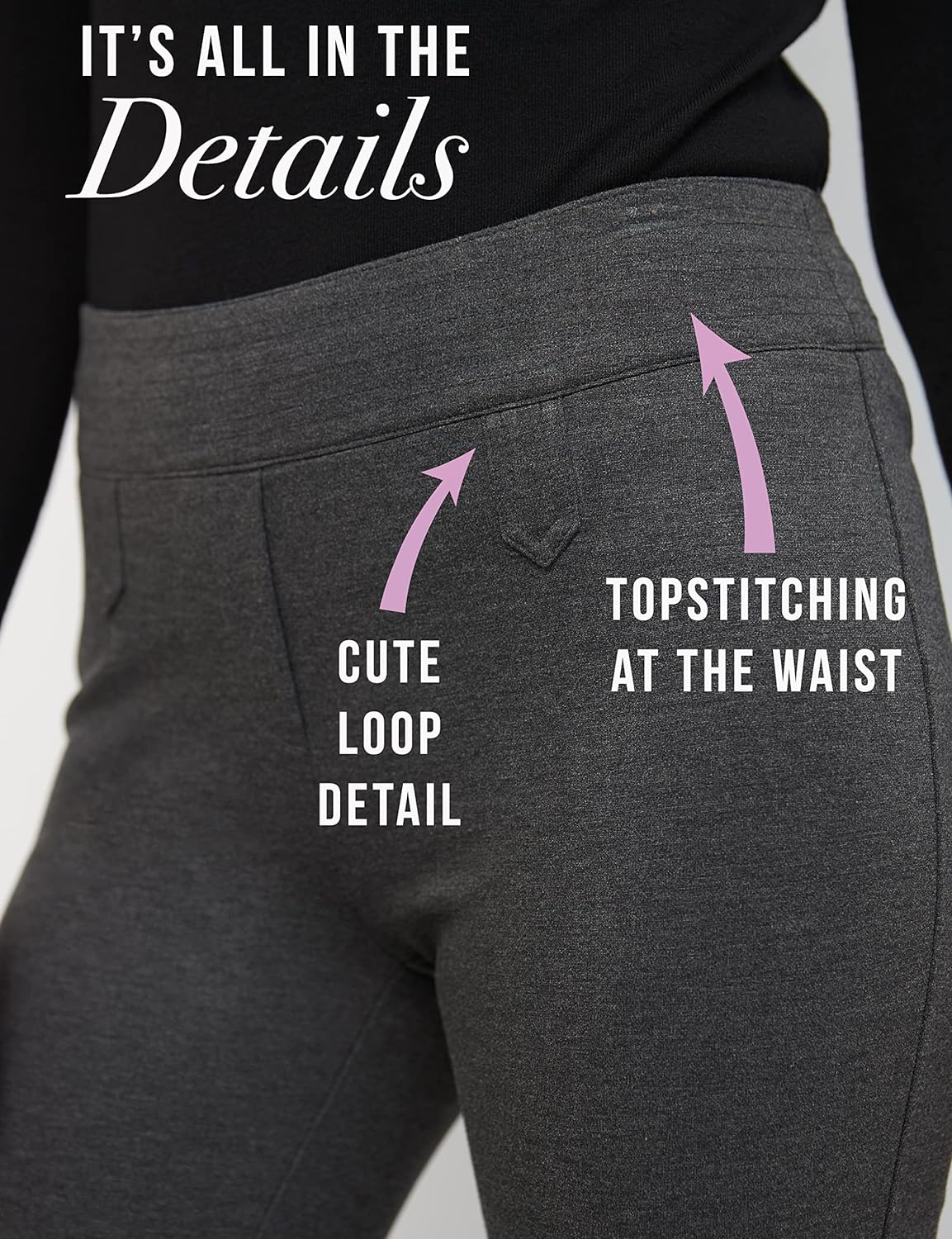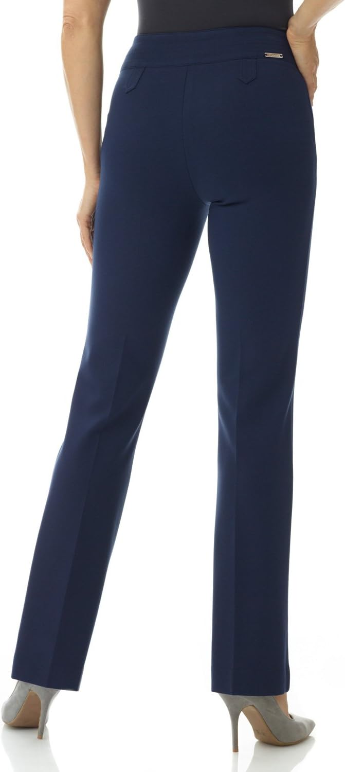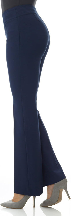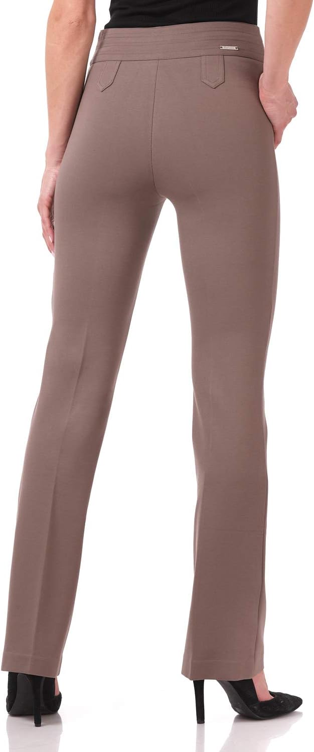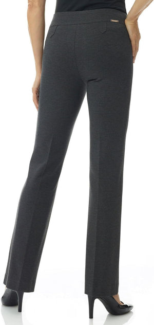 Our Rekucci Signature "Ease into Comfort" Pull-on pant, with contoured waistband, now in new Secret Figure Fit! *Secret Figure* is your secret weapon - secretly slimming your body, and flattening your tummy. Our front tummy control panel holds you in, contoured waistband smooths and flattens, while our incredible knit stretch fabric cradles your curves in all the right places. It feels like a yoga pant - but looks perfect for the office! The flattering bootcut shape visually lengthens the legs. Featuring decorative stitching on the waistband this pant will easily become your new favorite pair. Ideal for desk to dinner, or from yoga to cocktails, this pant is so comfortable and versatile we are sure you'll be wearing these pants everywhere. Crafted in our gutsy, beyond stretchy knit ponte fabric which gives this pant it's incredible compression power (think, you in without feeling uncomfortable). Thanks to the spandex it has tons of stretch and recovery, which ensures all day comfort and no bagging or sagging. Try the original office yoga pant and be amazed. Available in a wide range of colors, prints and textures. Available in sizes 2-18, and 3 lengths - regular, tall and petite we are confident you'll find something that looks and feels great.