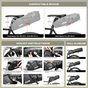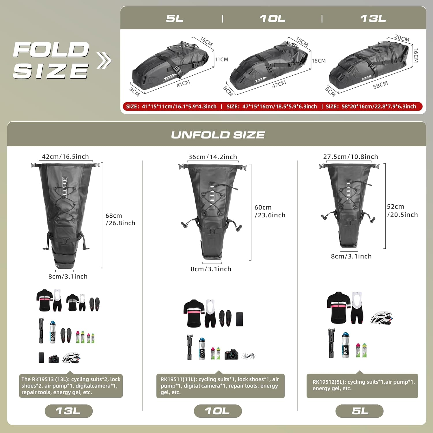 Rhinowalk Bike Saddle Bag 1.5/5/10/13L Waterproof Bicycle Bag Cycling Seat Bag Mountain Road Portable Storage Bag